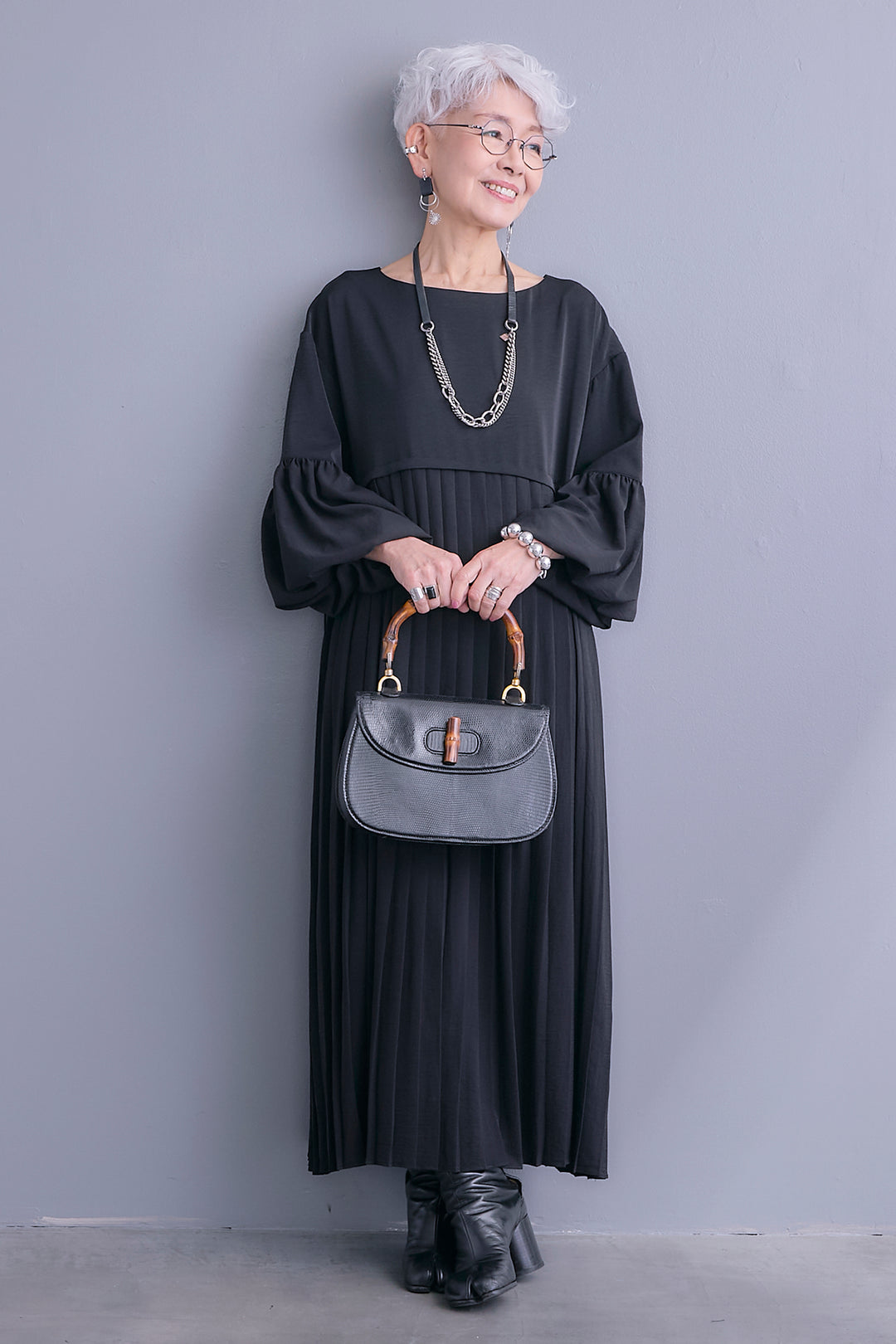 【SET】アシンメトリーオーバーニット+テディボアミディコート+アシンメトリープリーツスカート(3set)