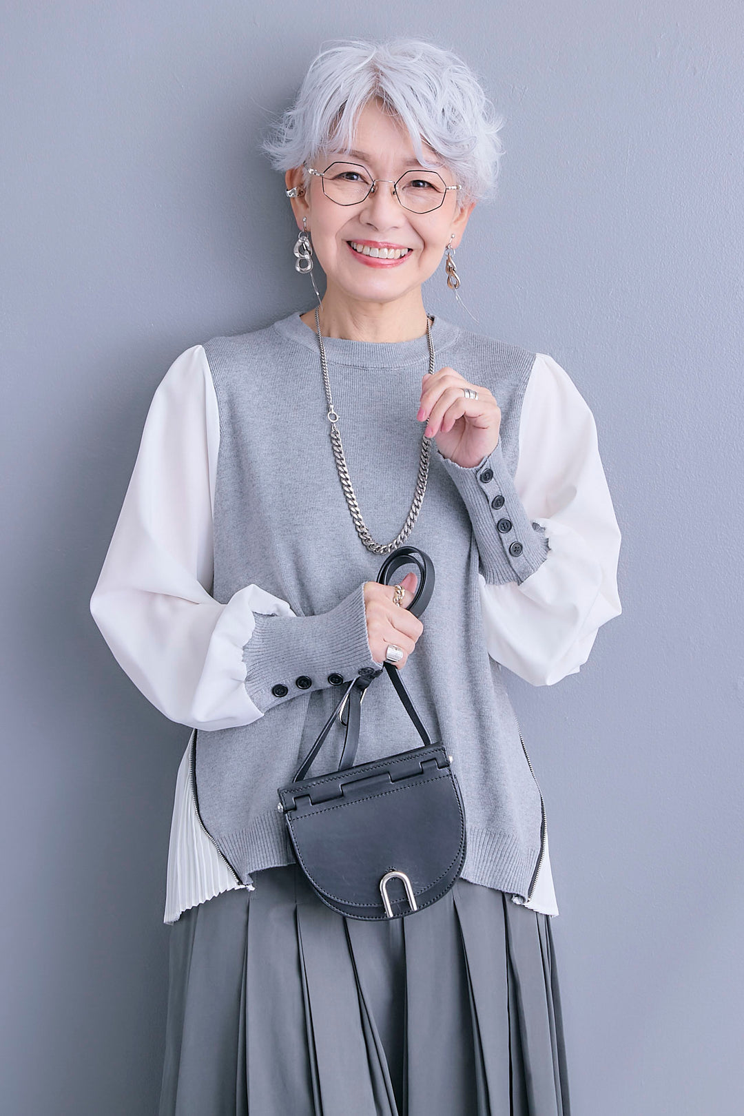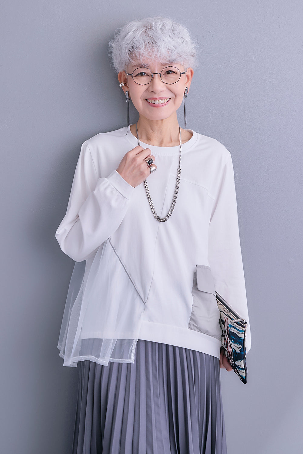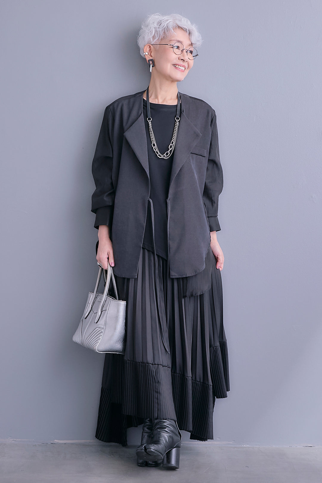 【SET】シアーシャツドッキングジャケット+アシンメトリーロンT+アシンメトリープリーツスカート(3set)
