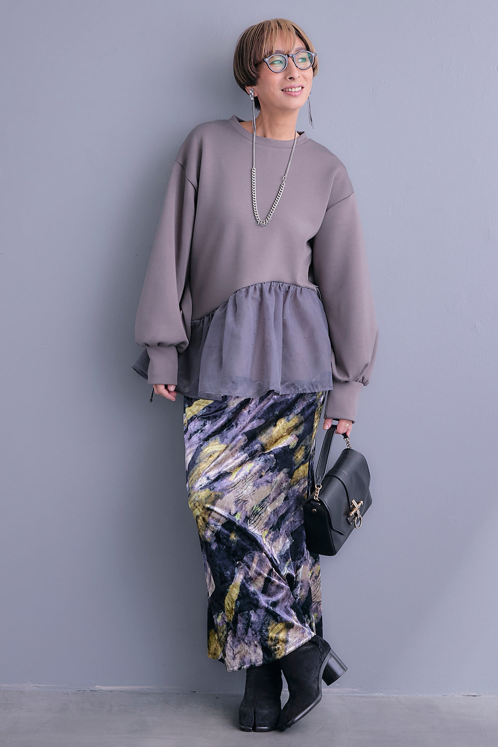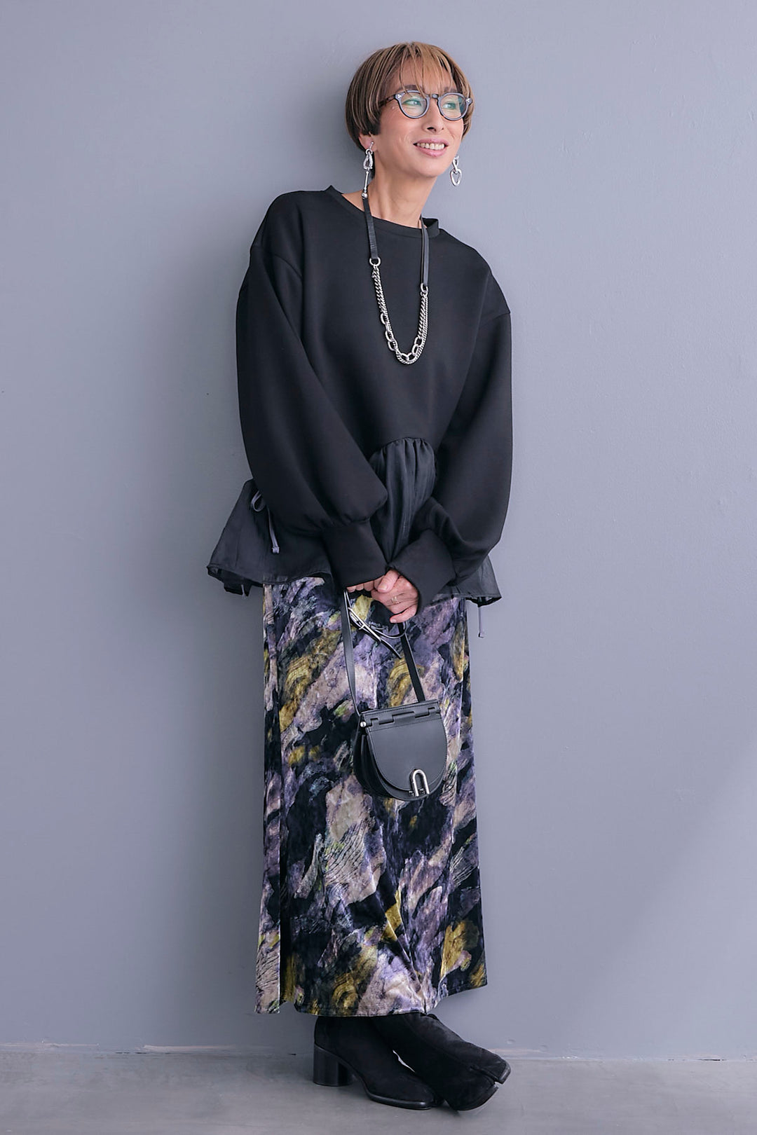 【SET】アシメペプラムオーガンジートップス+ベロアニュアンスアートスカート(2set)