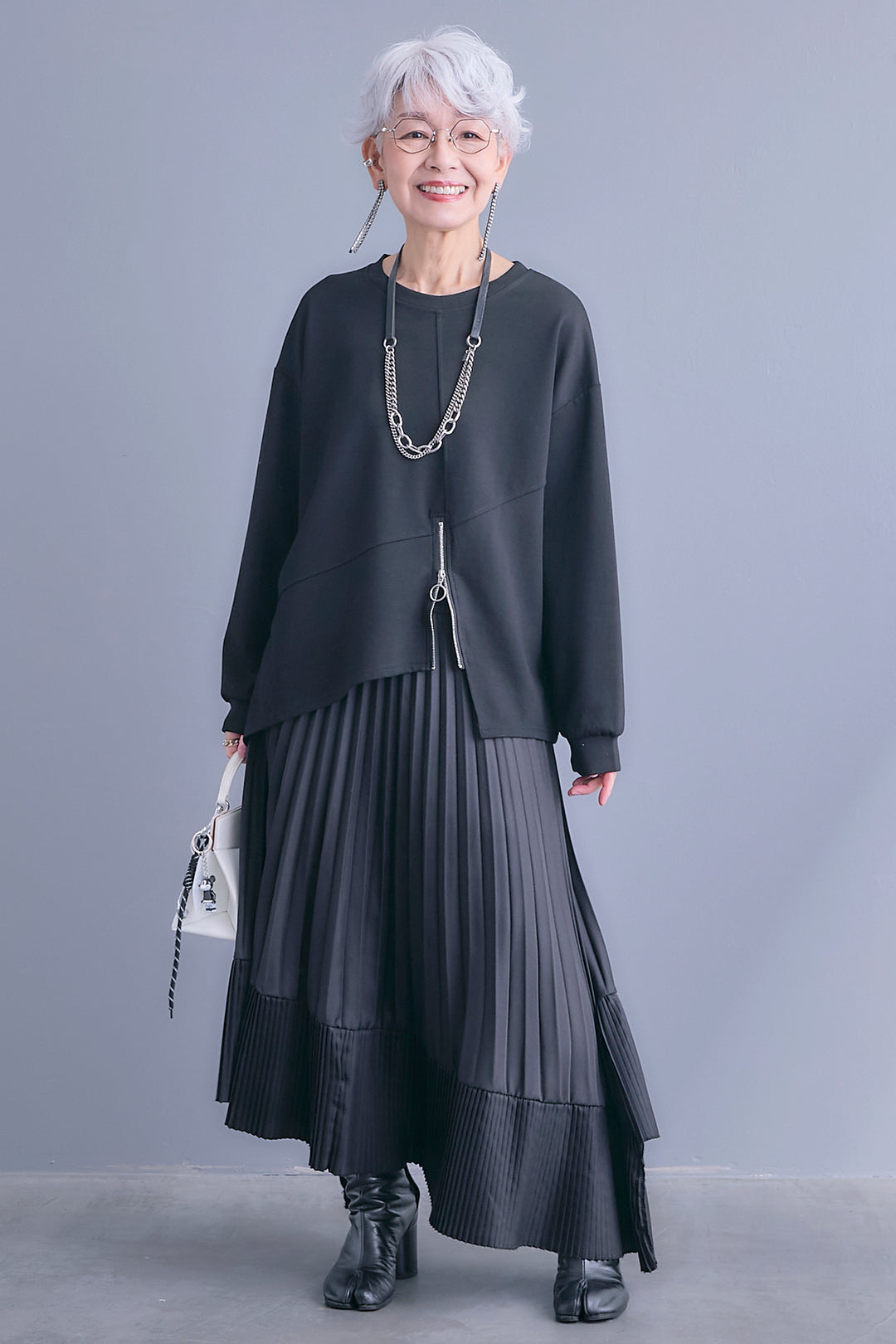 【SET】アシメリングZIPデザインプルオーバー+アシンメトリープリーツスカート(2set)
