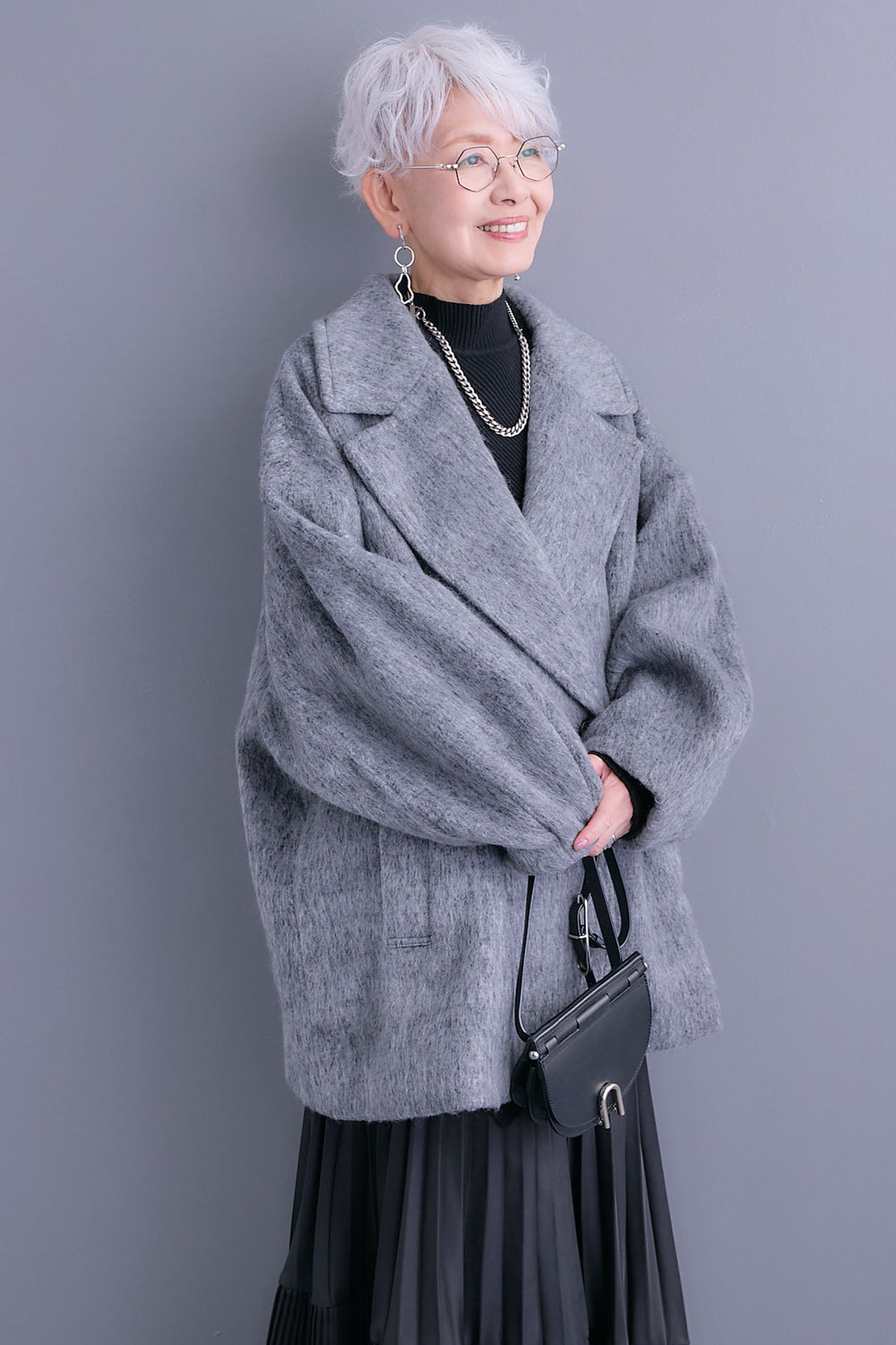 【予約】ワイドラペルコクーンスリーブシャギーコート