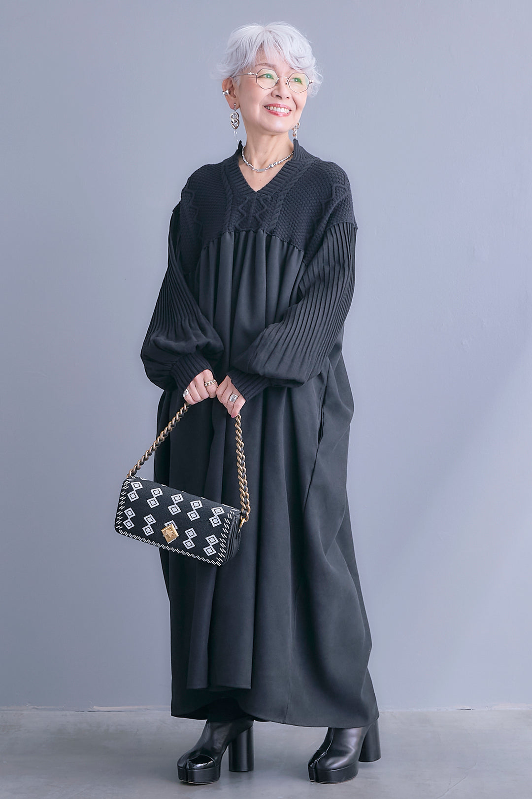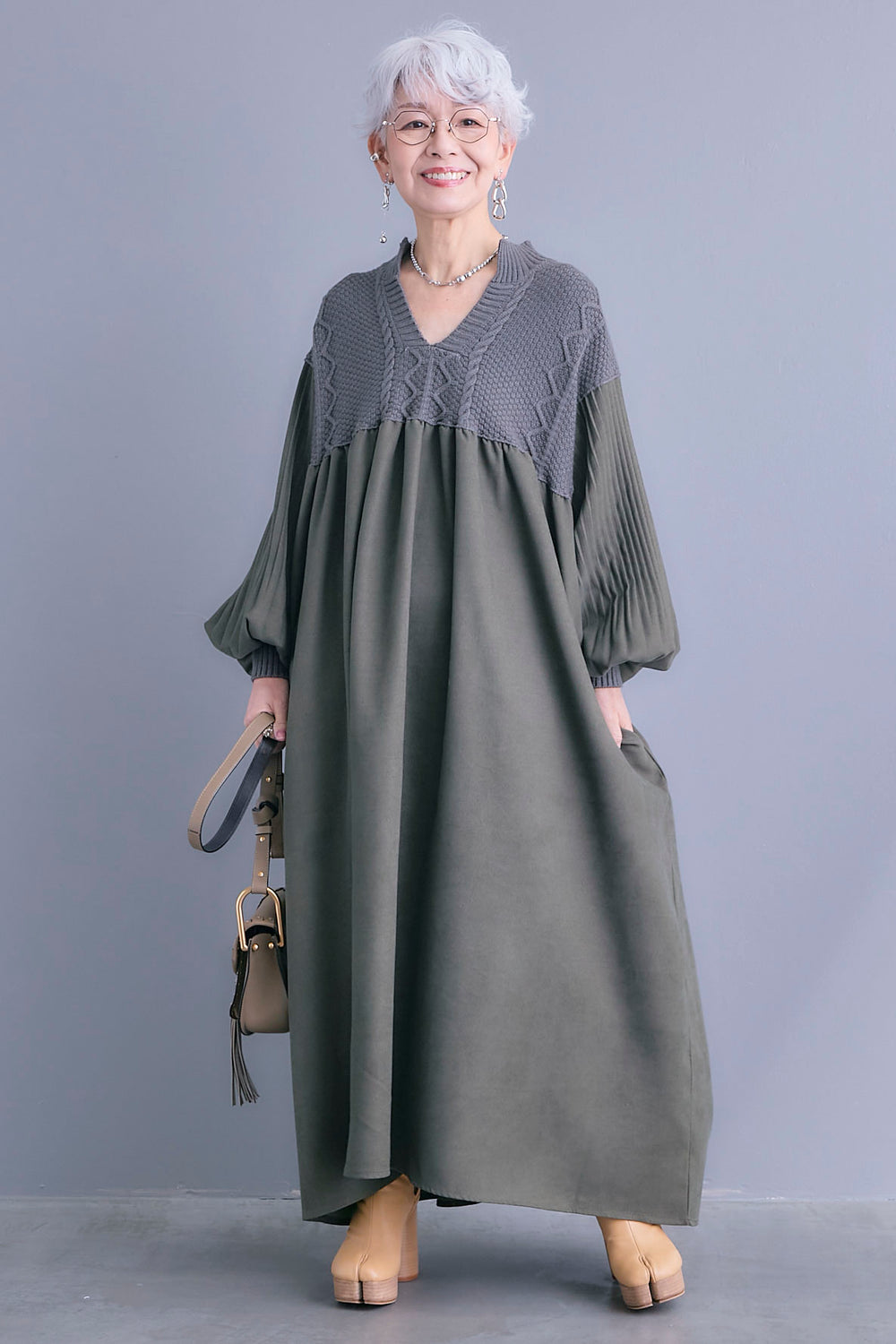 【予約】コーデュロイ×ニットコンビキーネックワンピース