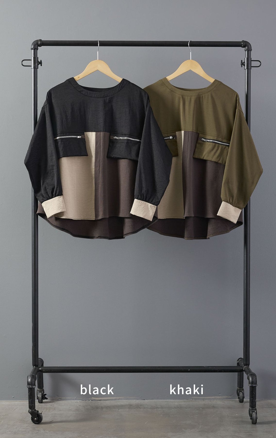 【予約】ZIPポケットデザインブロッキングプルオーバーを含んだコーデセット商品を探す↓