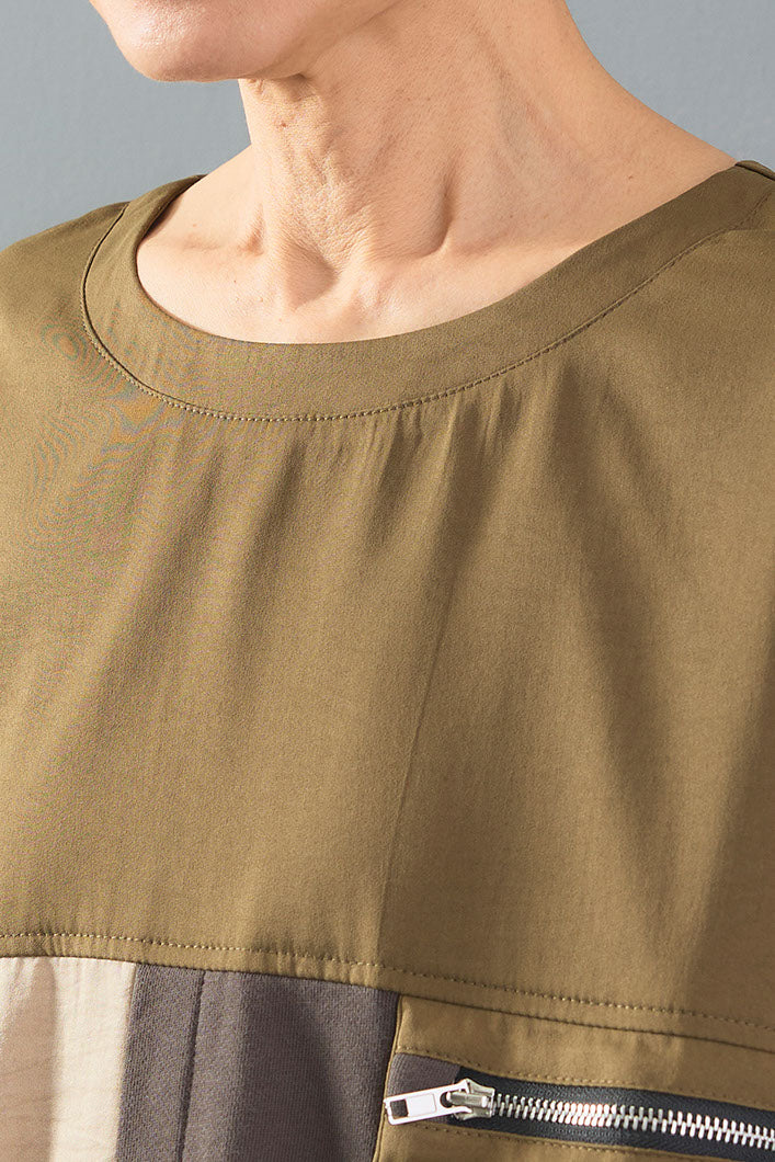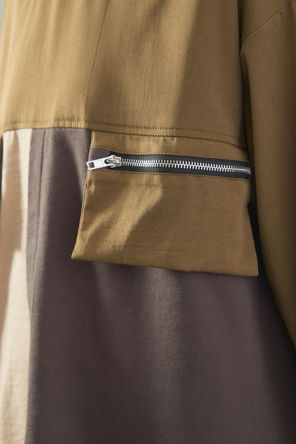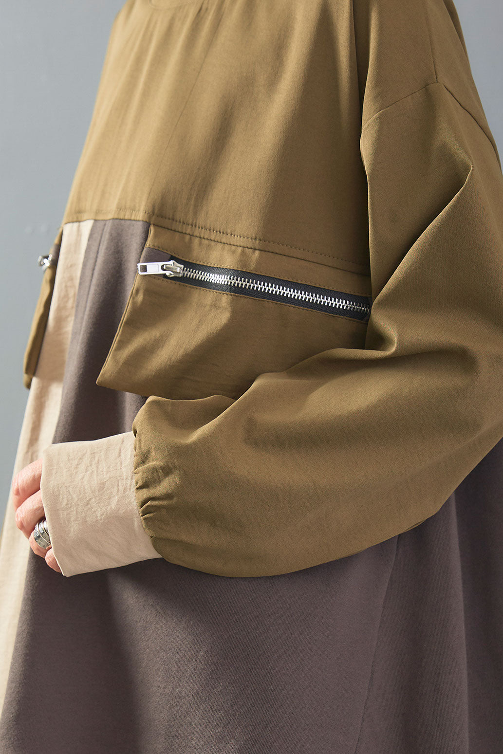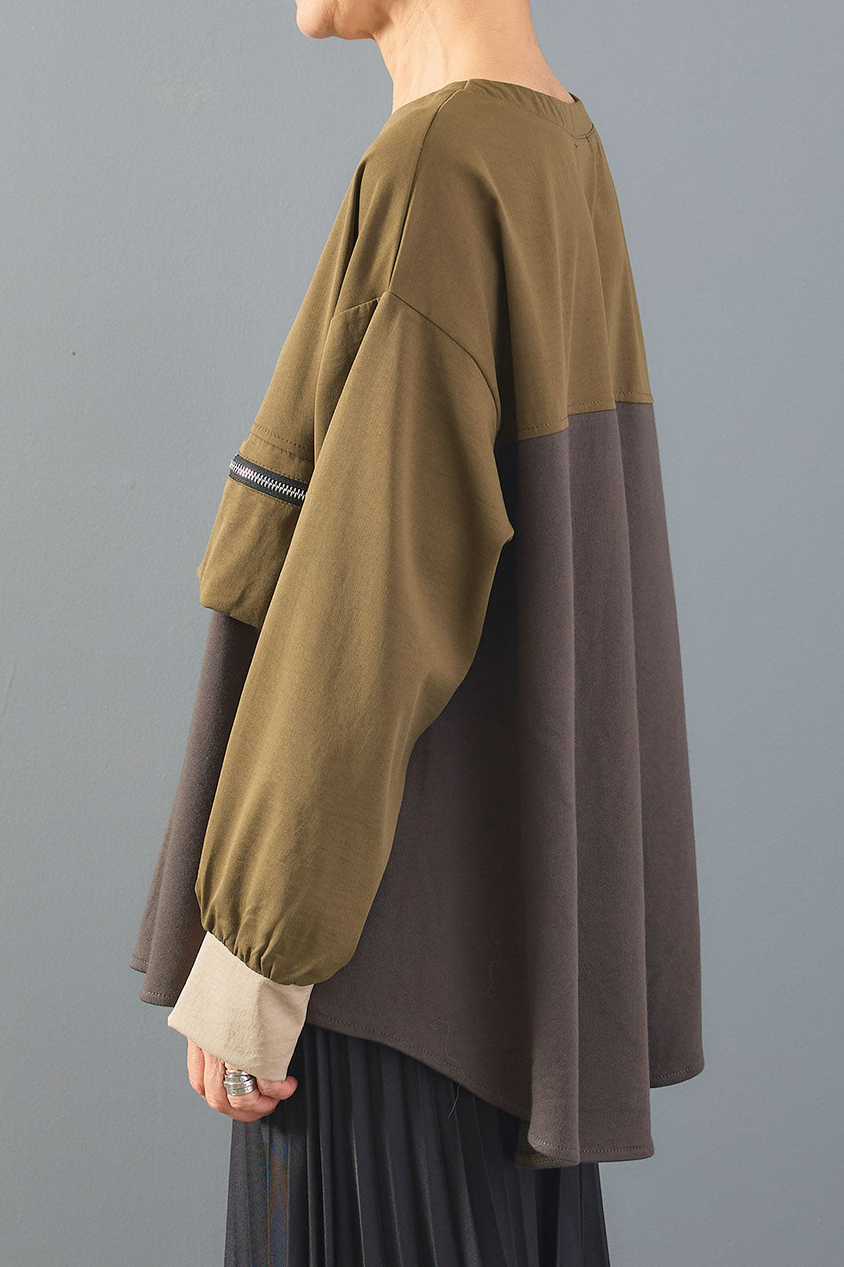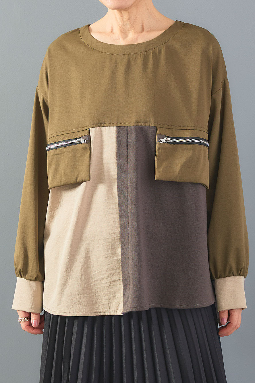 配色ブロッキングとZIPポケットが目を惹くデザインプルオーバー。異素材の組み合わせが立体感を生み、ラフながらもモードな印象に仕上げます。程よくゆとりのあるシルエットで動きやすく、着心地も快適。シンプルなボトムを合わせるだけで、こなれ感のあるスタイリングが完成します。