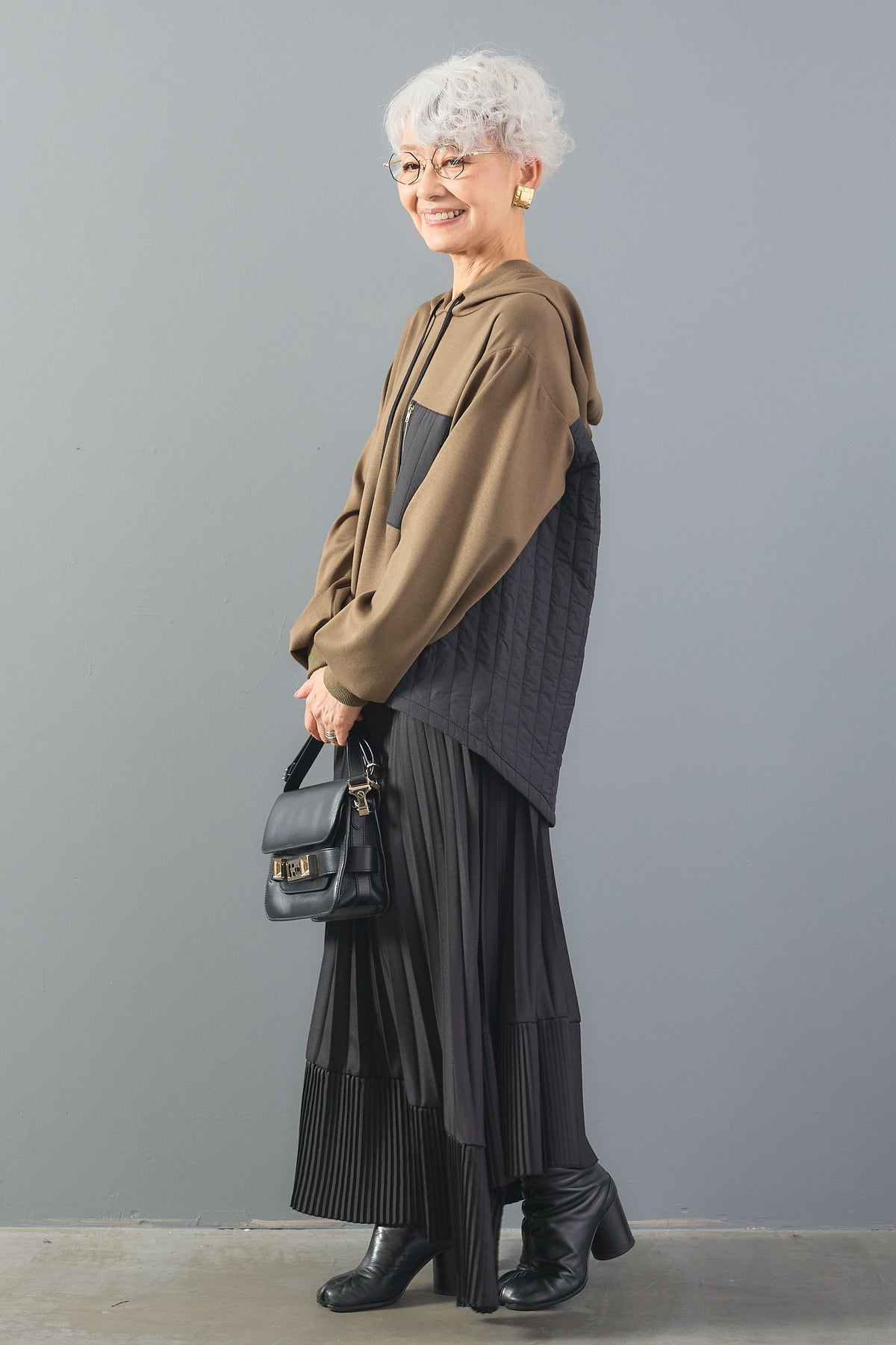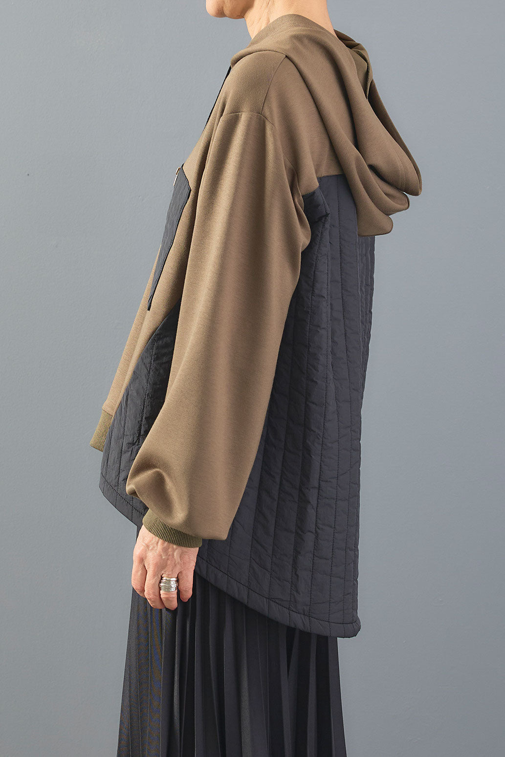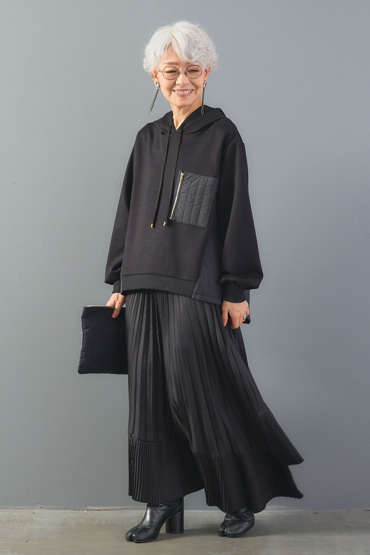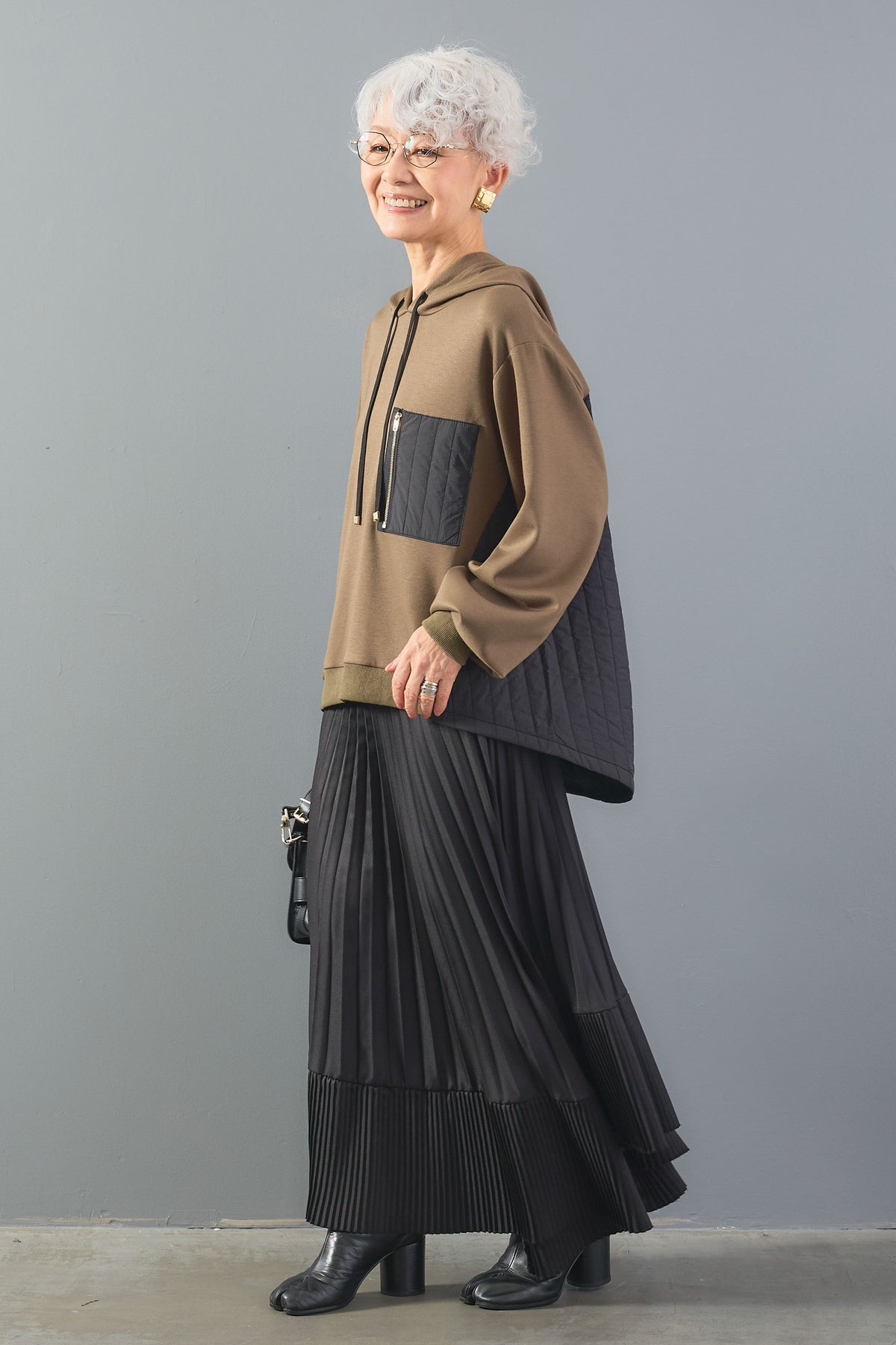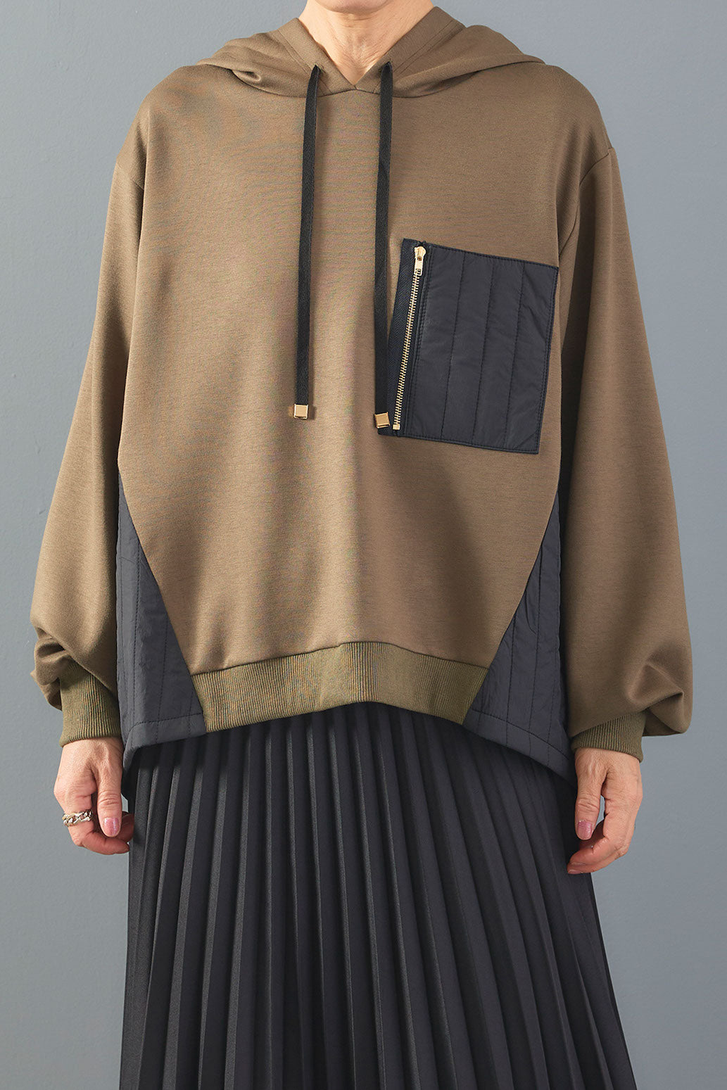 <表地>ポリエステル 70%、レーヨン 23%、ポリウレタン 7% <別布>ナイロン 100% <リブ>綿 100% <裏地>ポリエステル 100%
