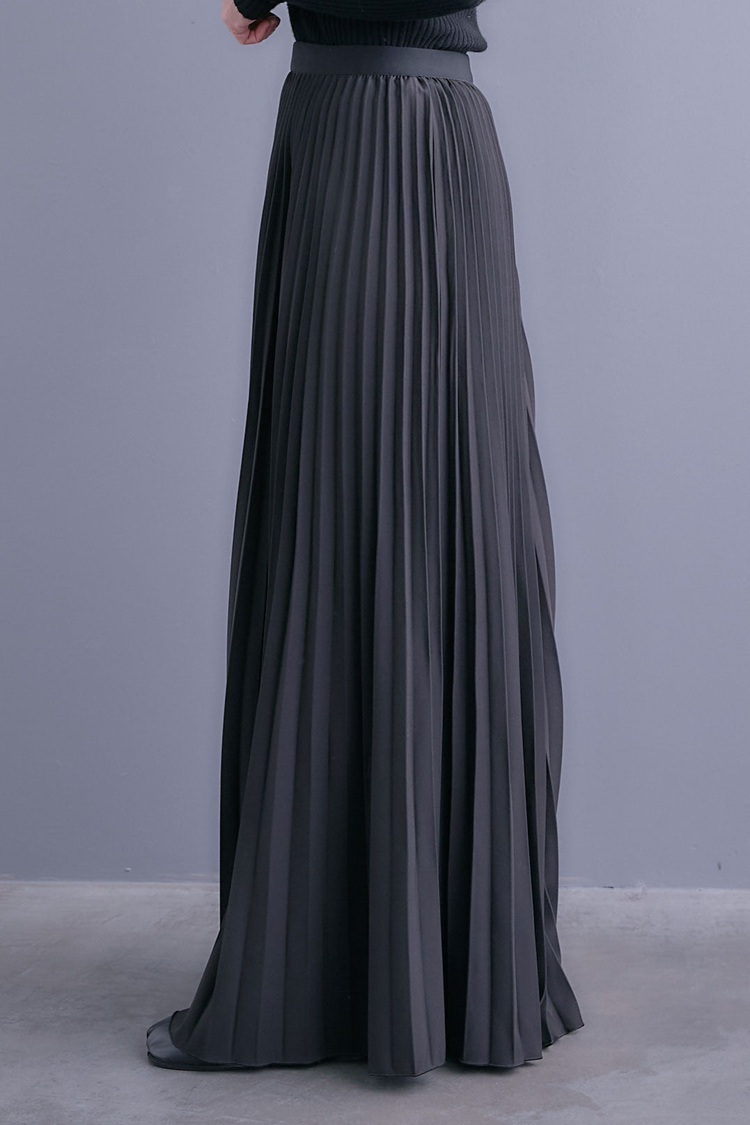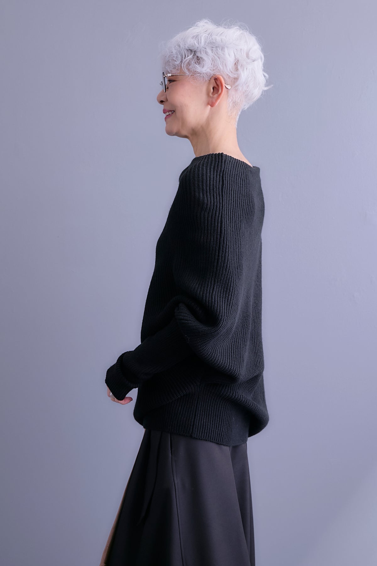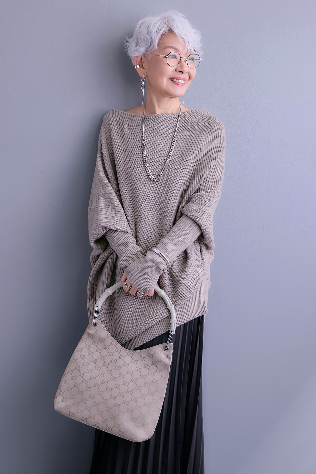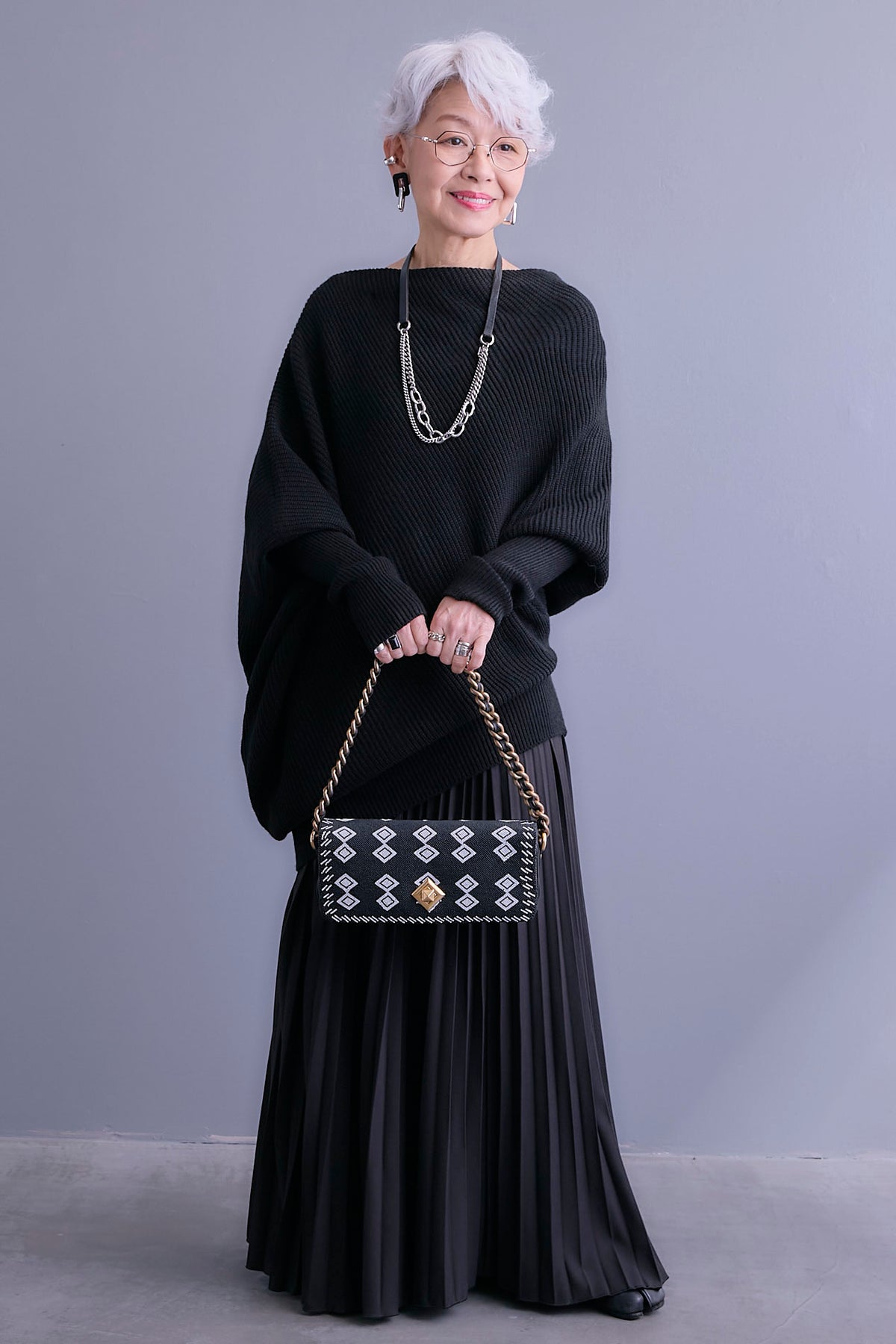 【SET】アシンメトリーボートネックドルマンニット+ルーズロングプリーツスカート(2set)