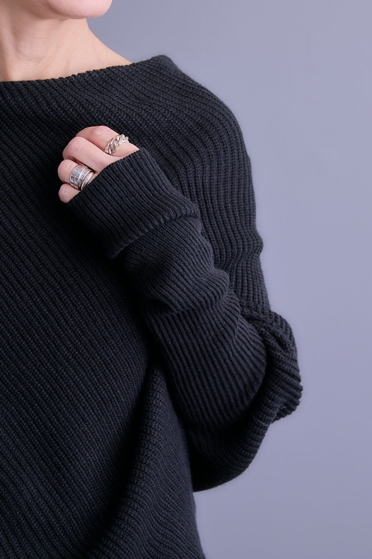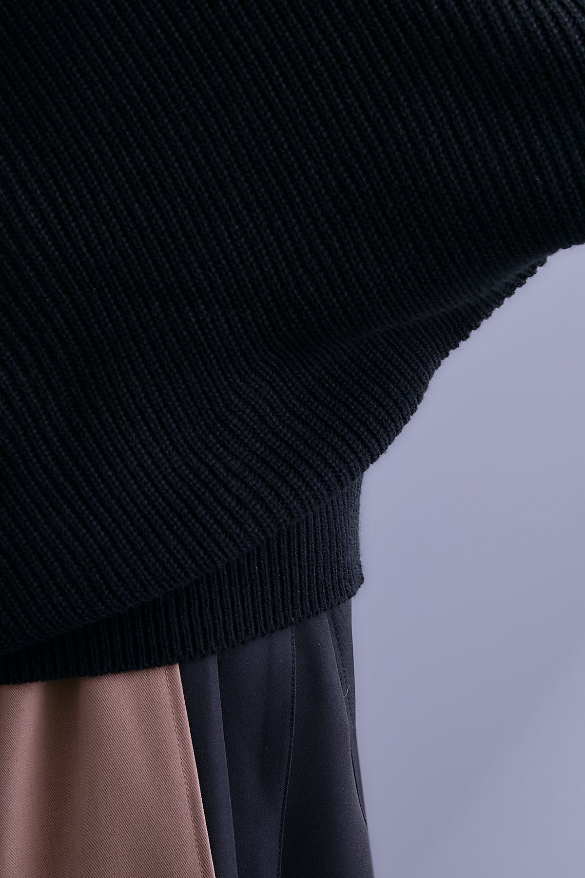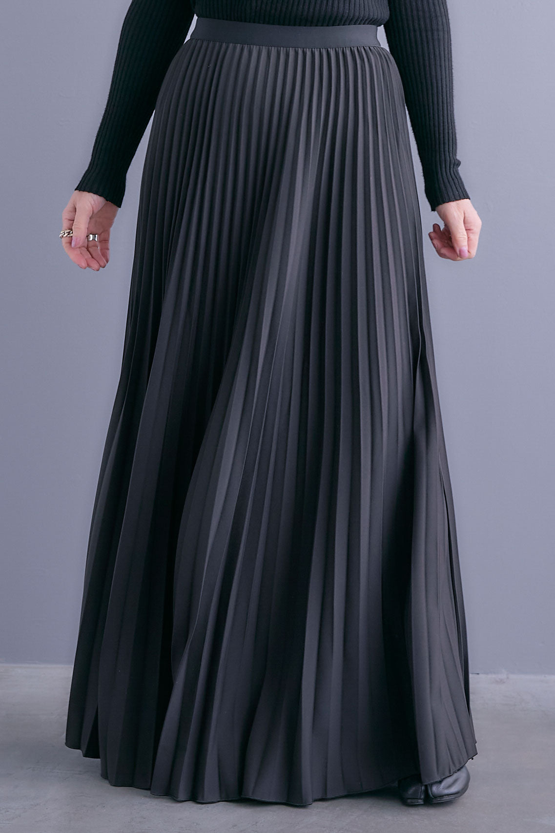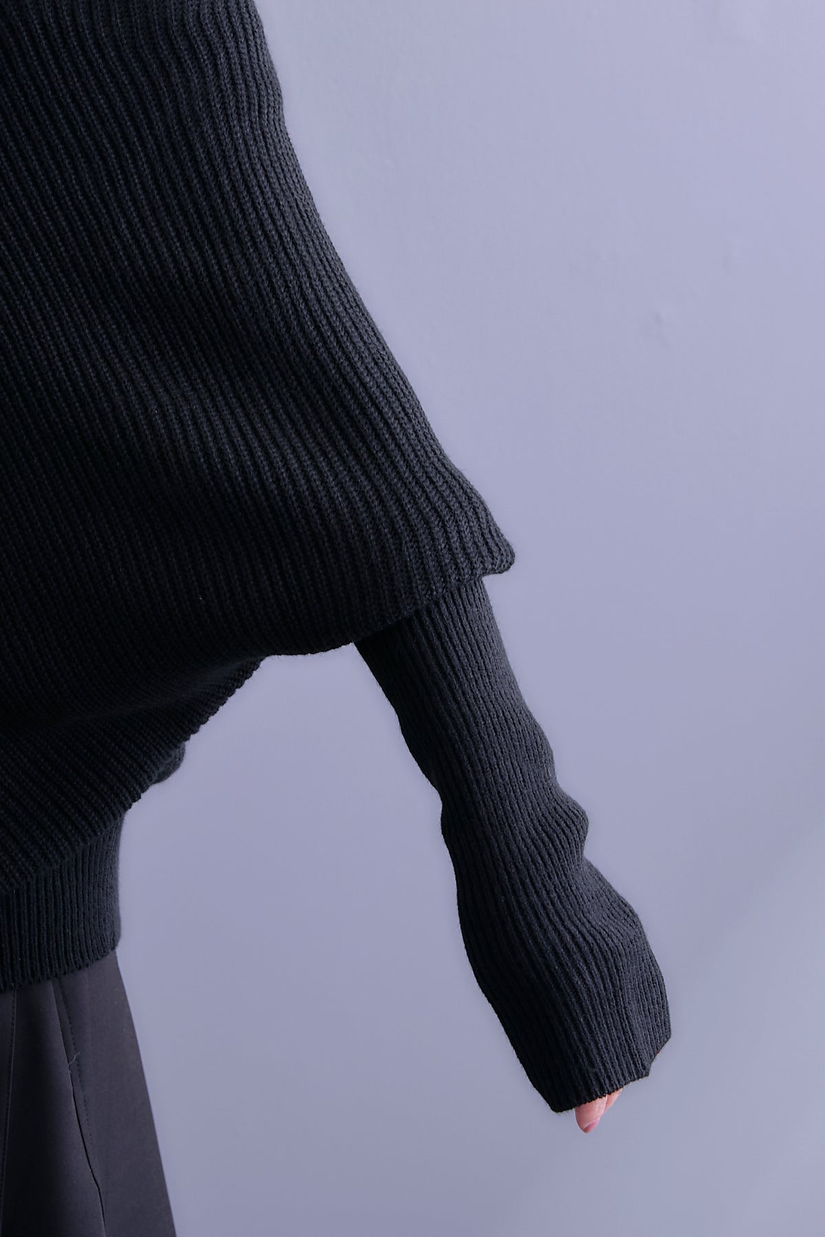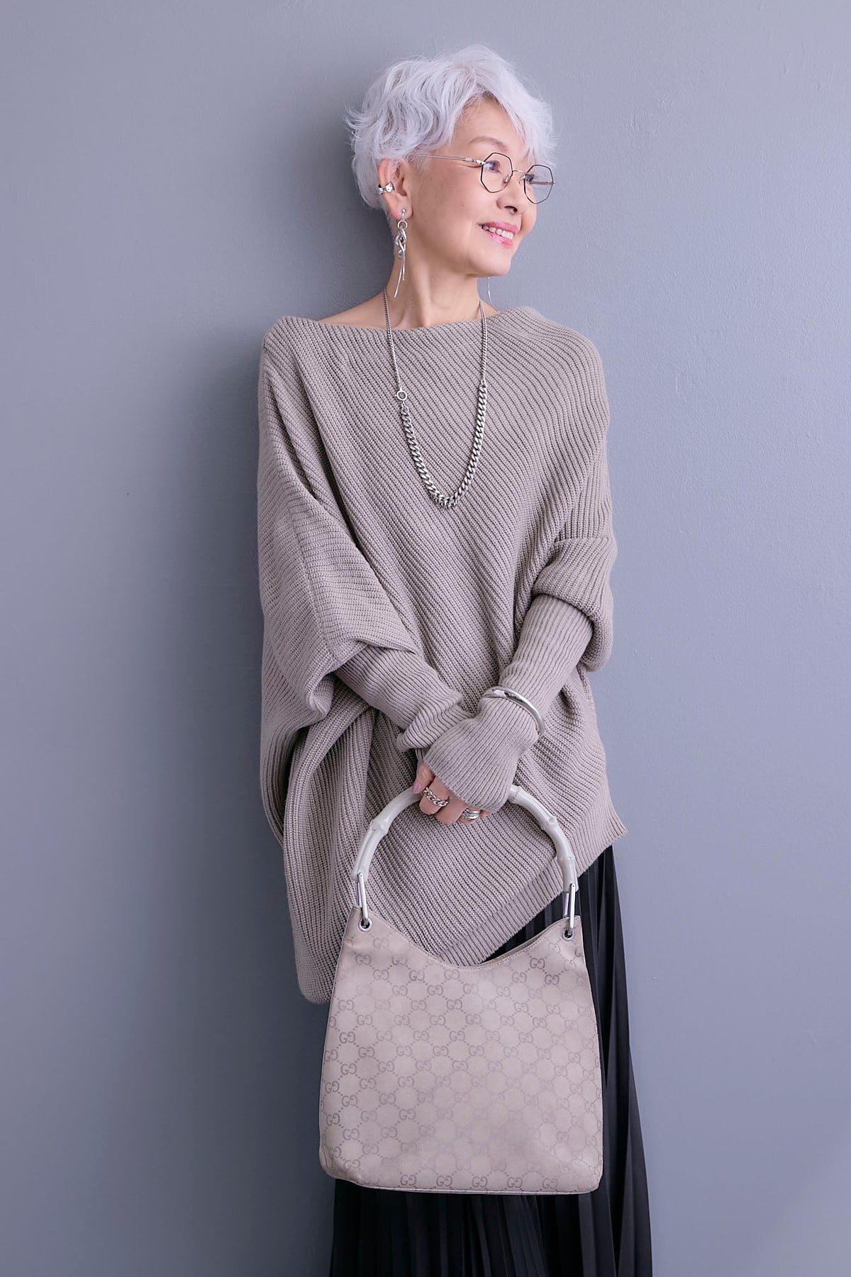 【SET】アシンメトリーボートネックドルマンニット+ルーズロングプリーツスカート(2set)