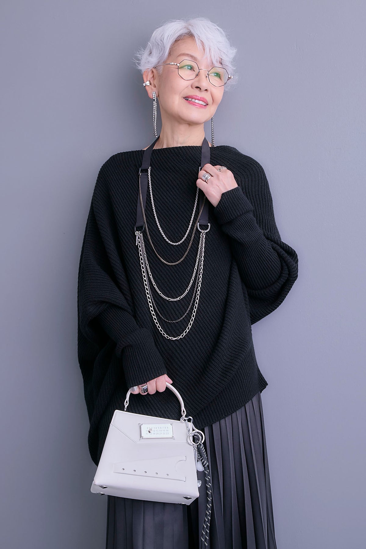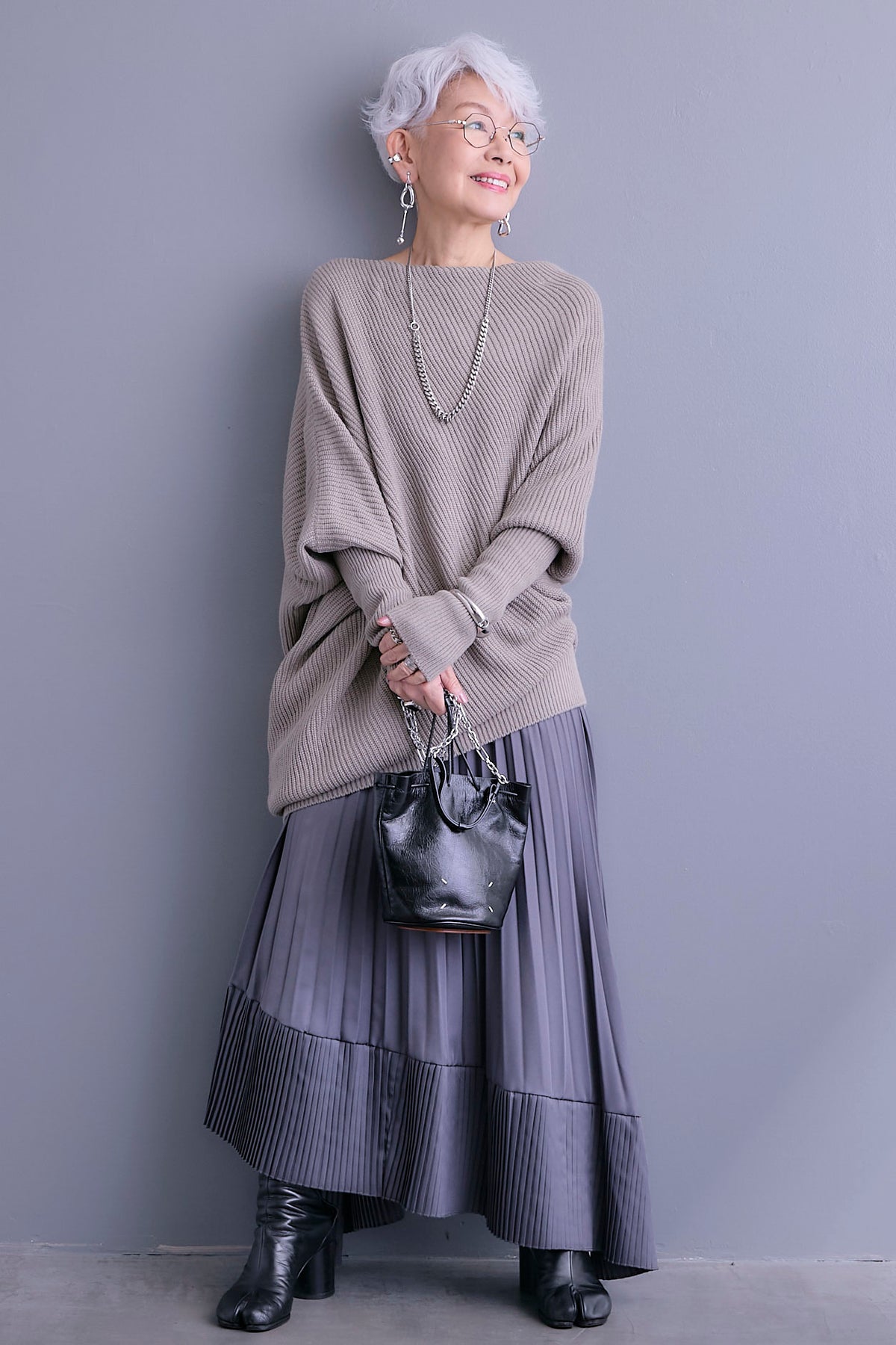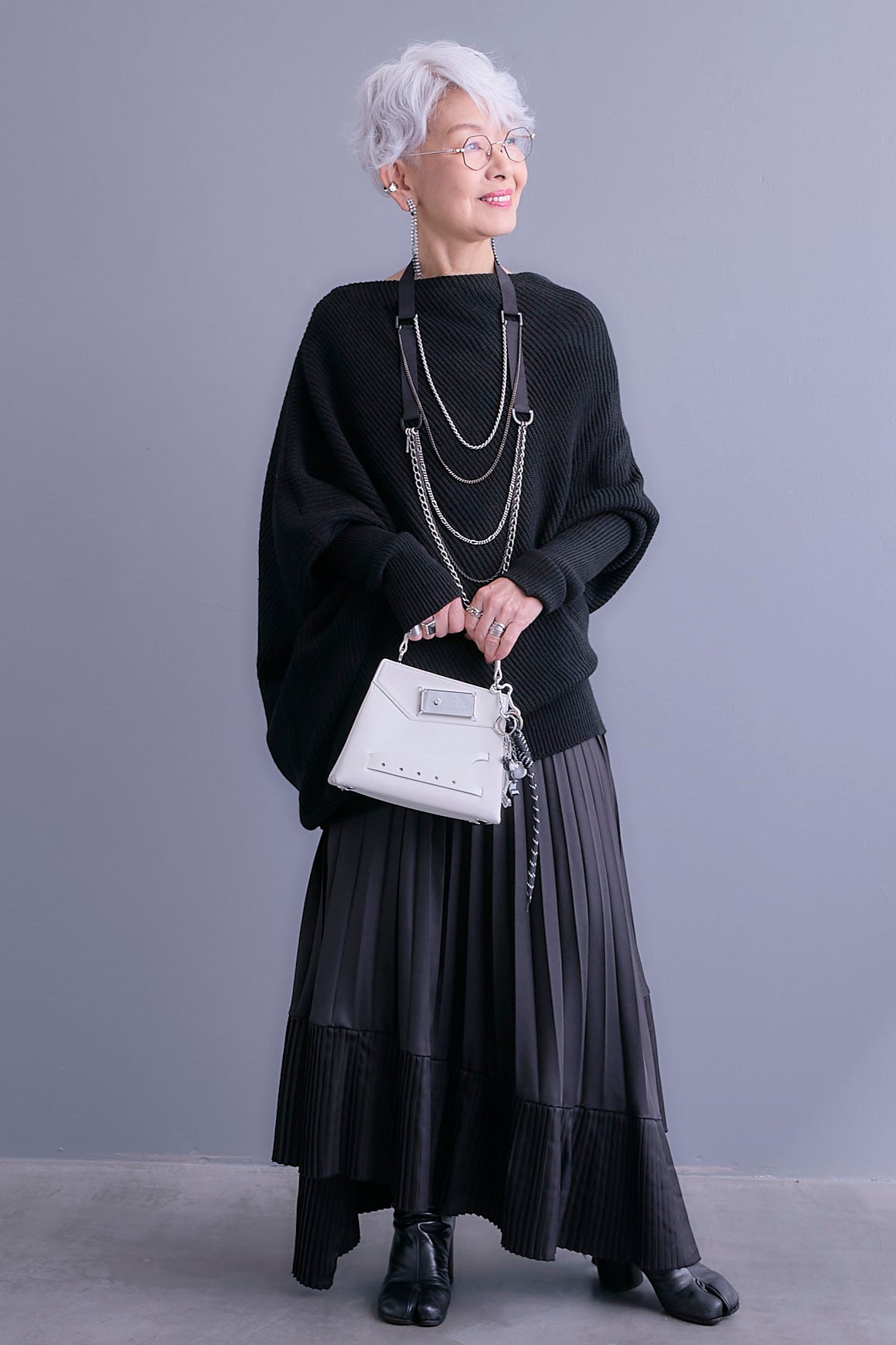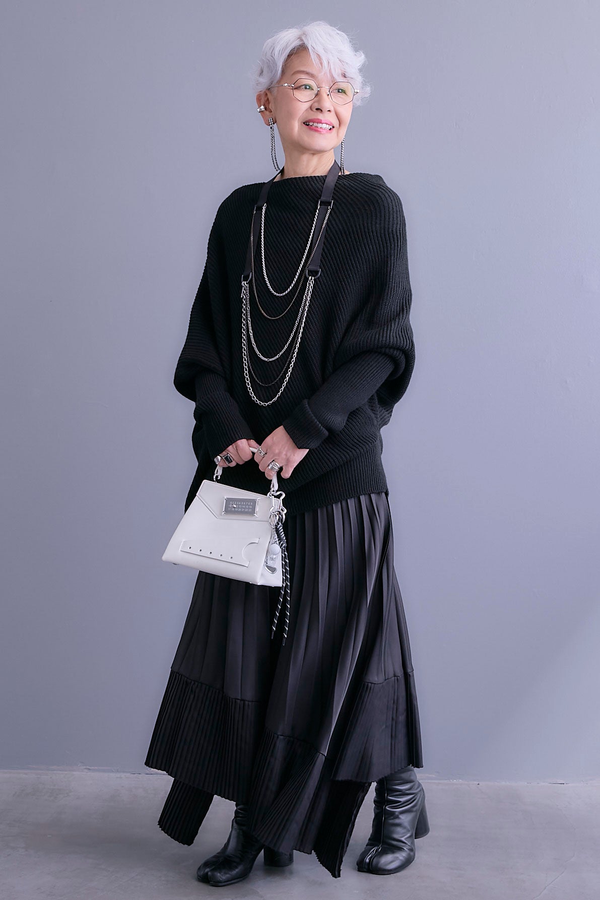 【SET】アシンメトリーボートネックドルマンニット+アシンメトリープリーツスカート(2set)