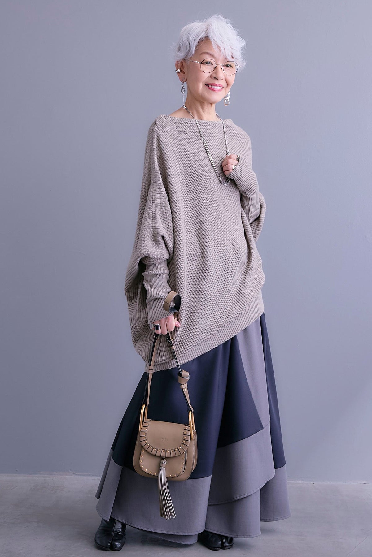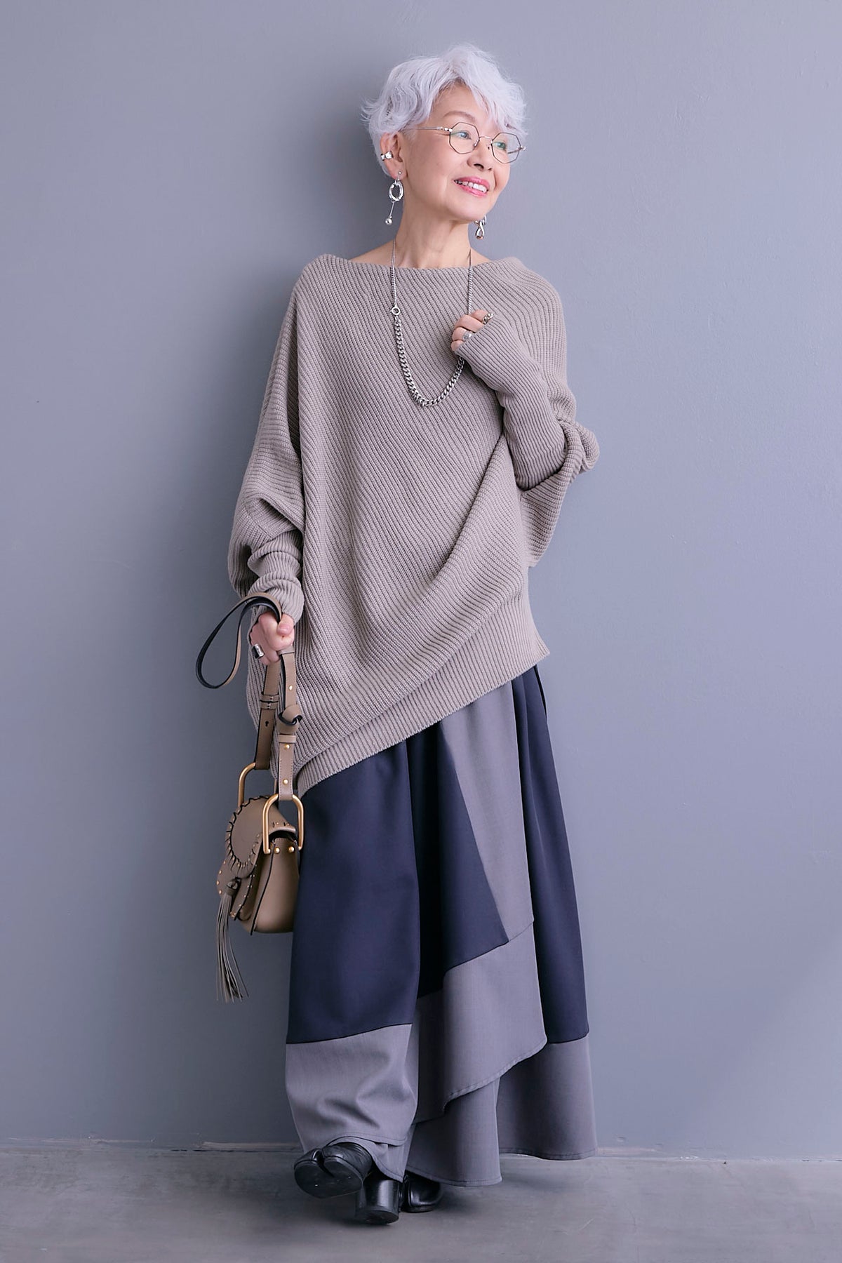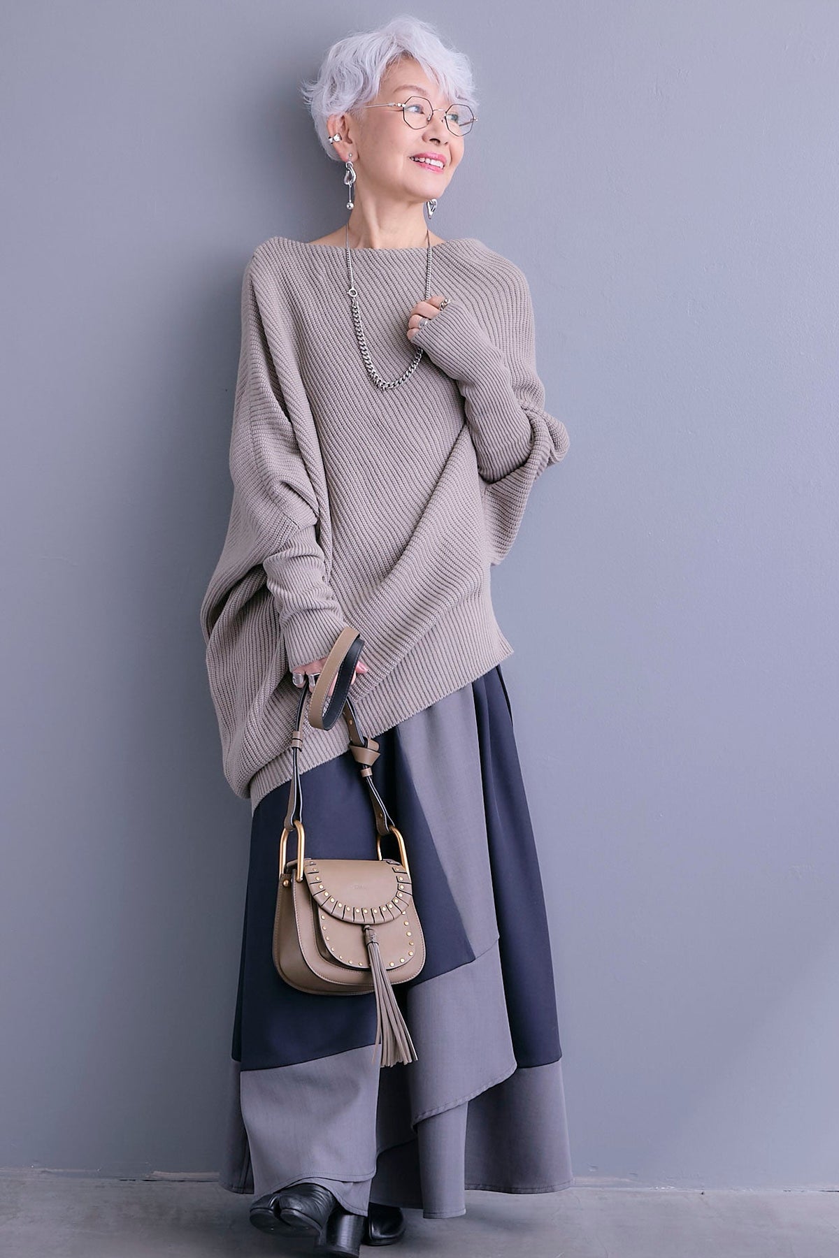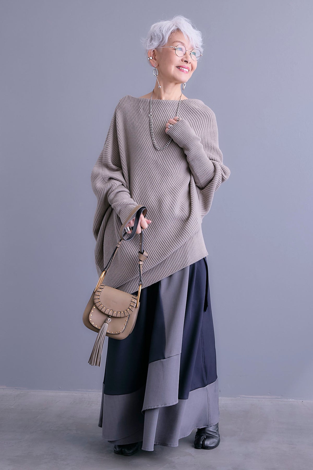 【予約】アシンメトリーボートネックドルマンニットを含んだコーデセット商品を探す↓
