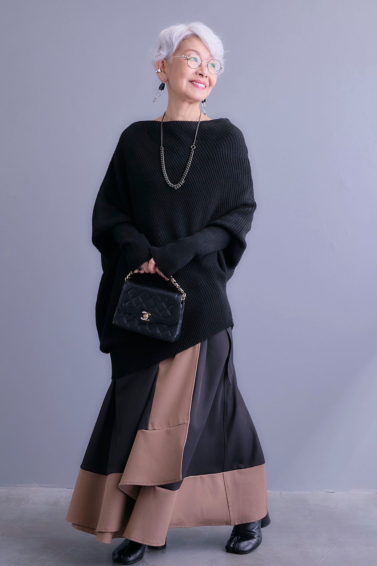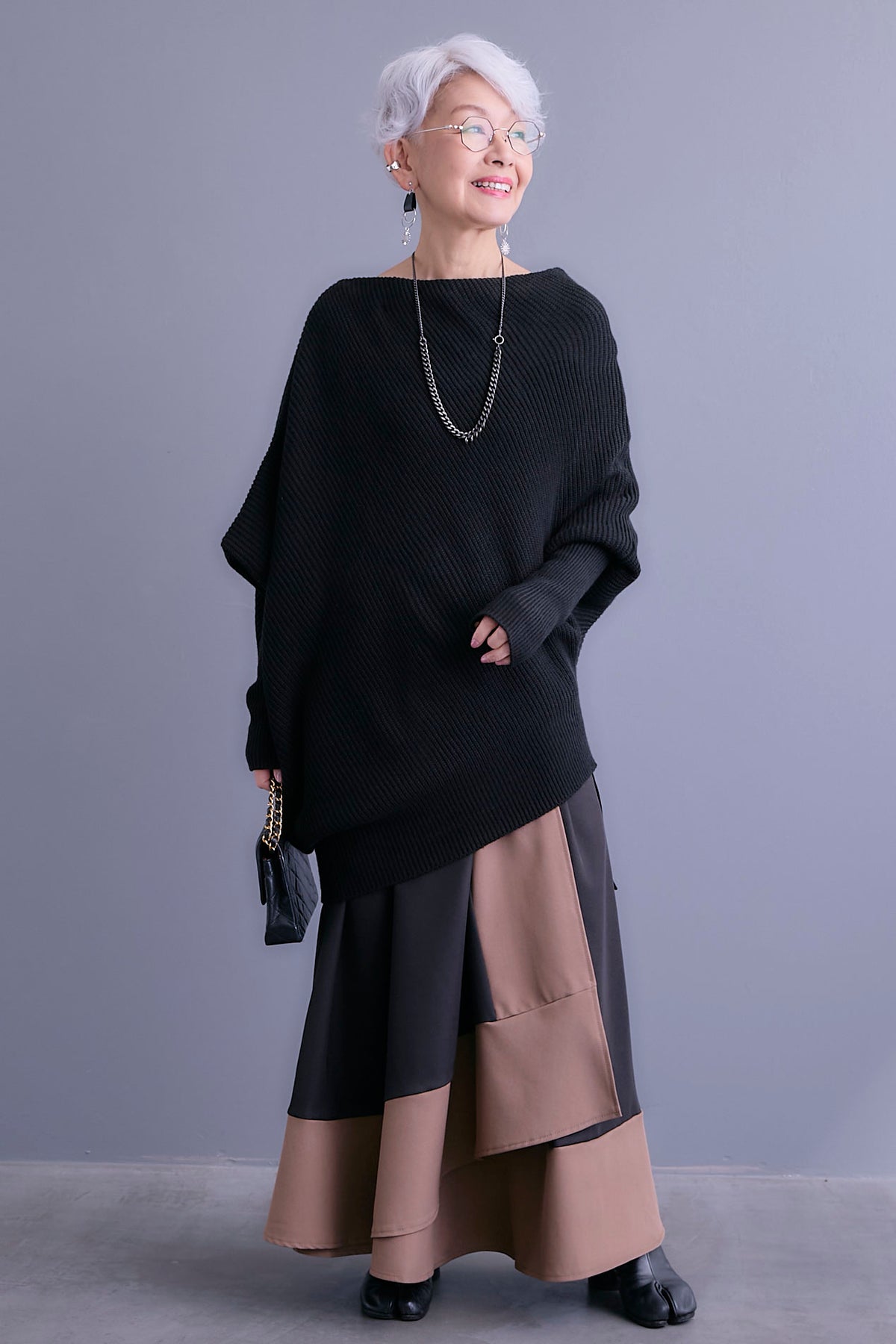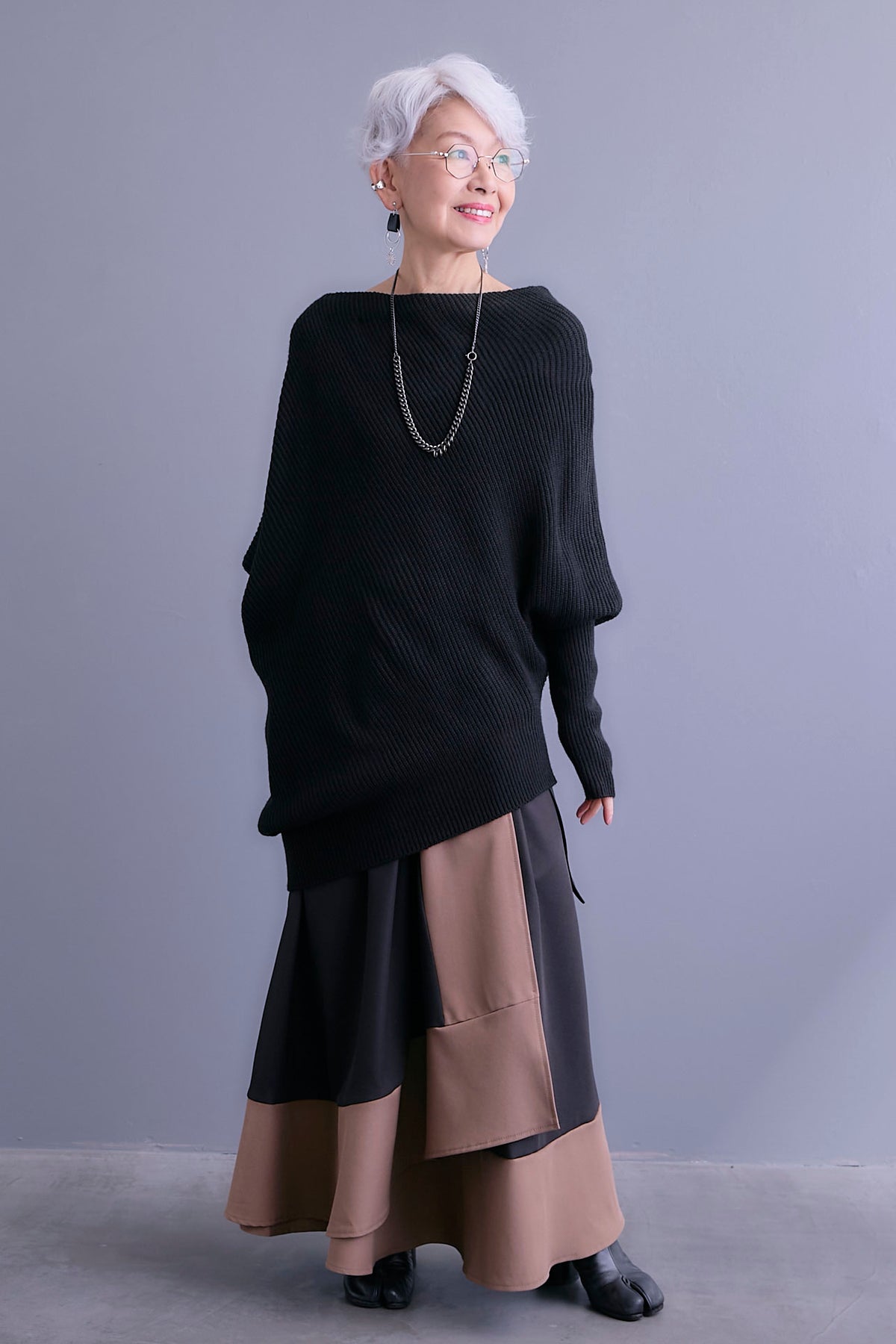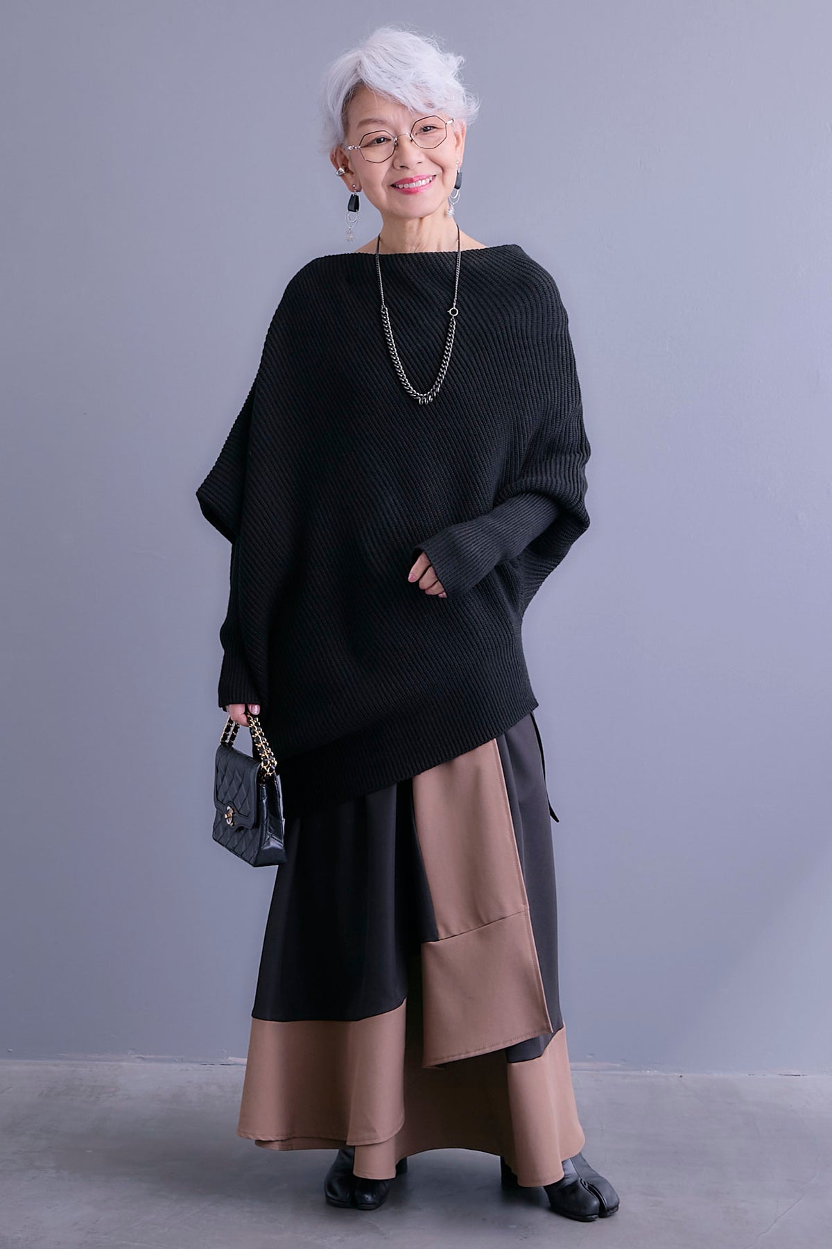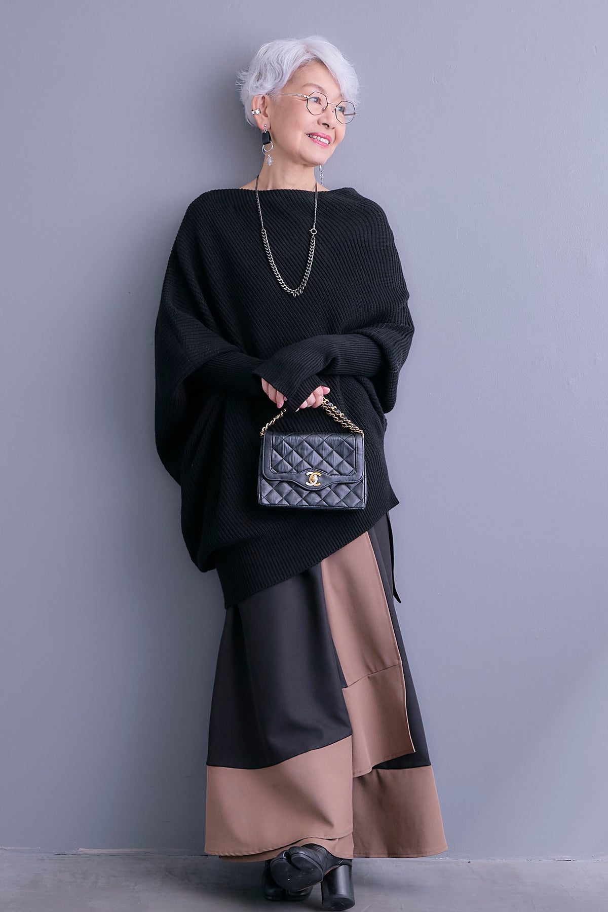 【予約】アシンメトリーボートネックドルマンニットを含んだコーデセット商品を探す↓