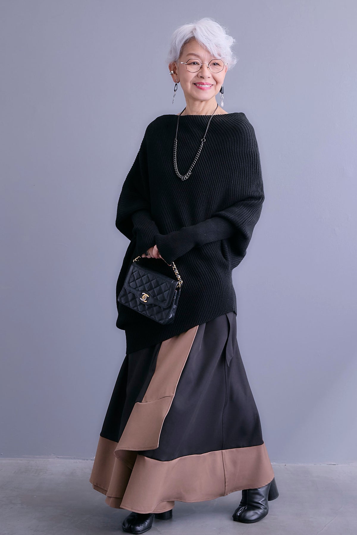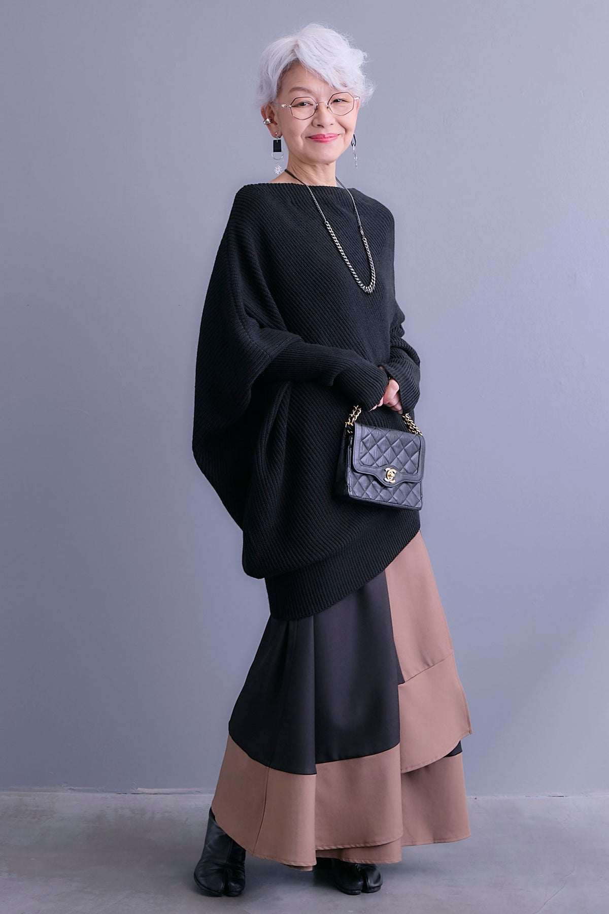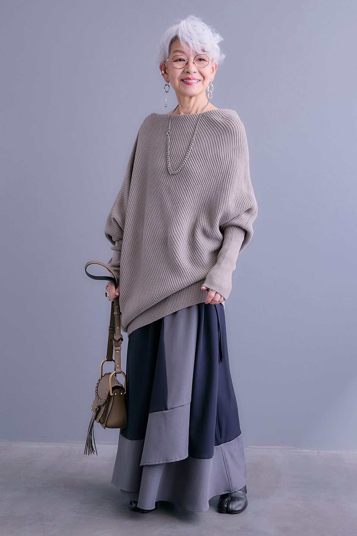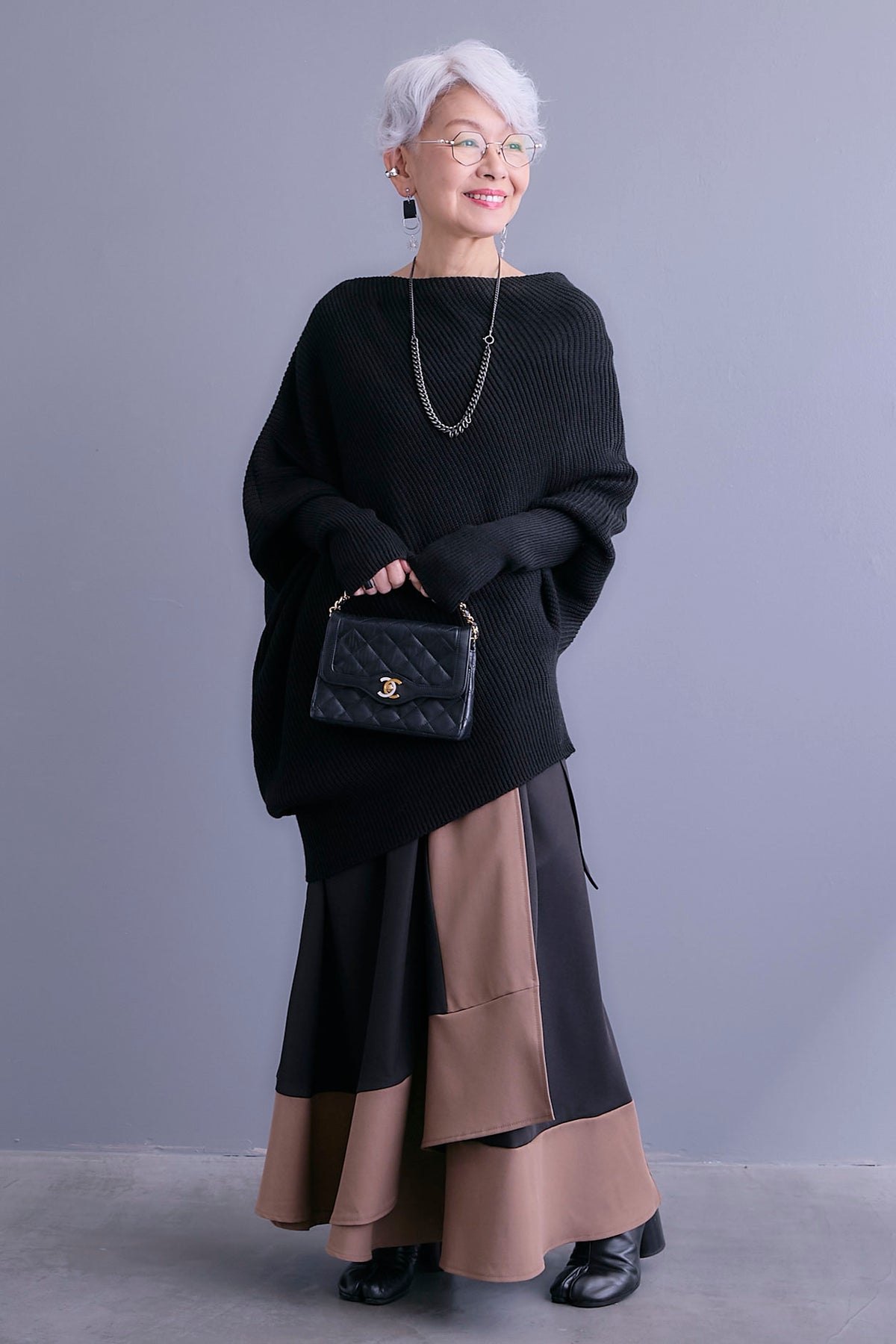 【予約】アシンメトリーボートネックドルマンニットを含んだコーデセット商品を探す↓