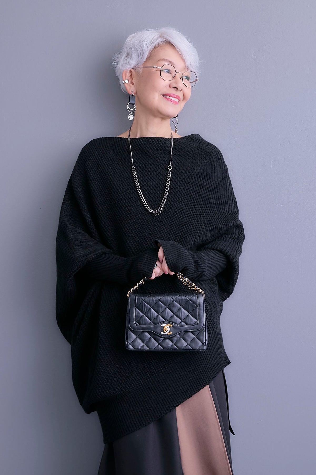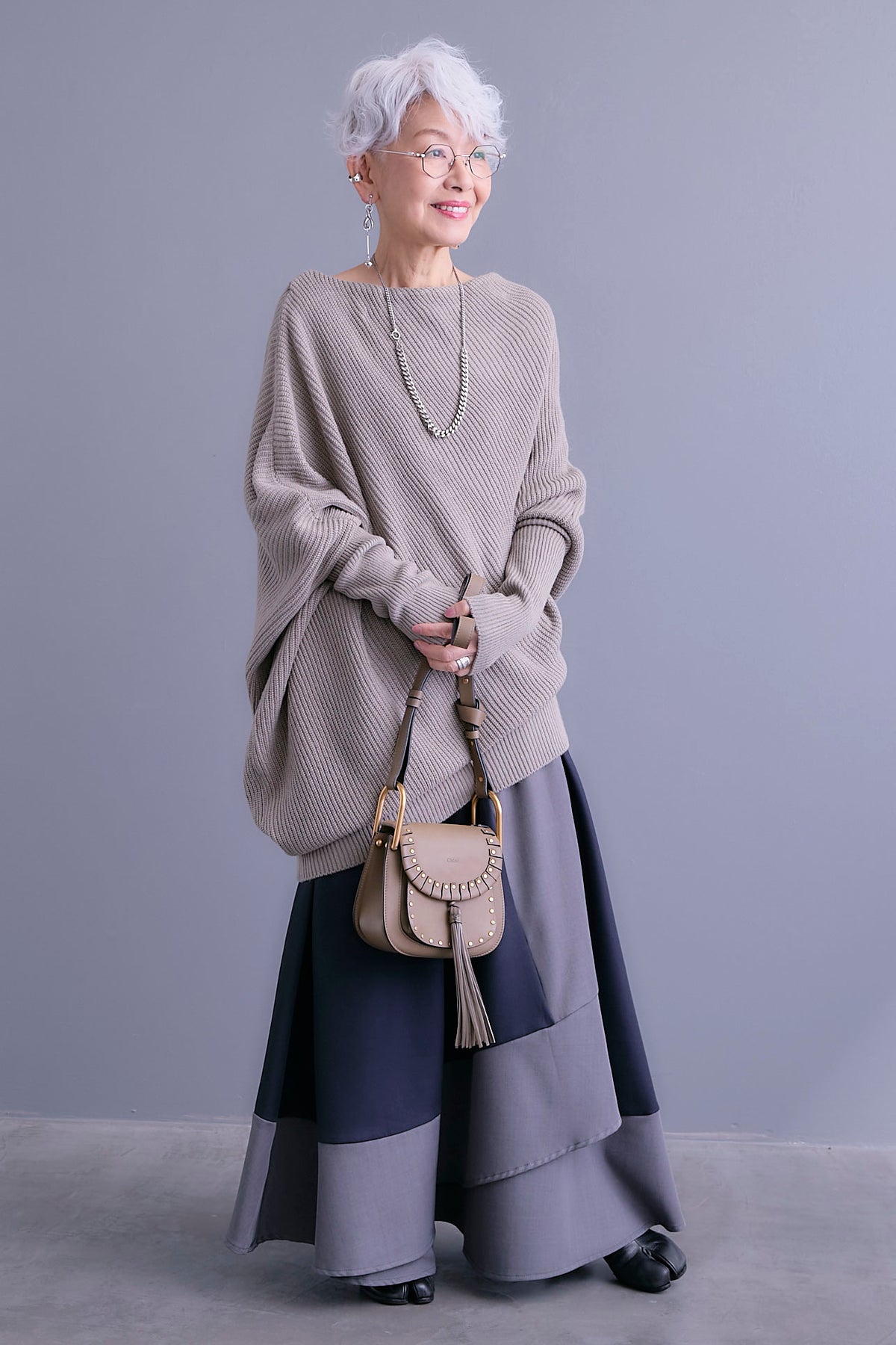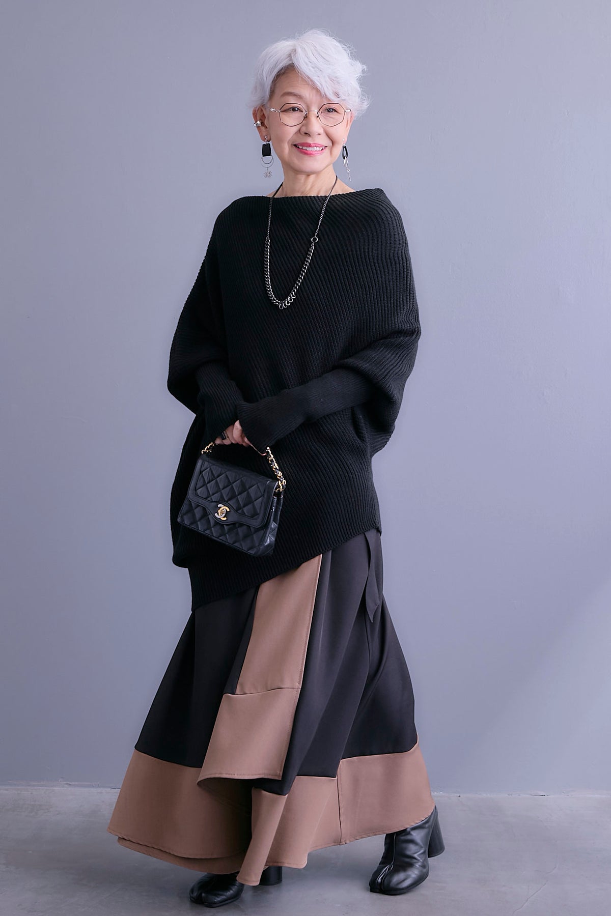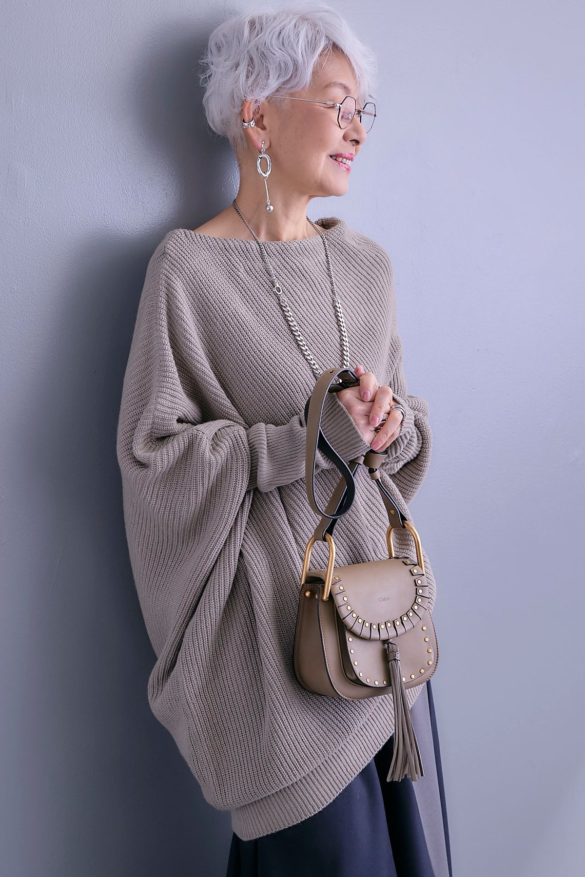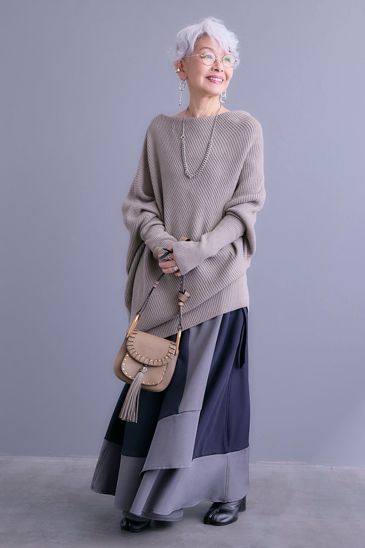【予約】アシンメトリーボートネックドルマンニットを含んだコーデセット商品を探す↓