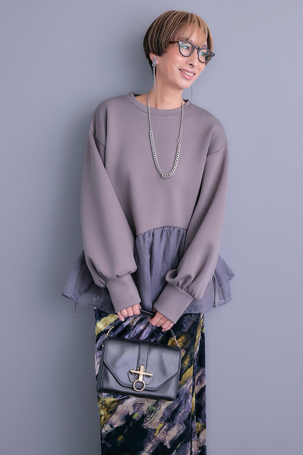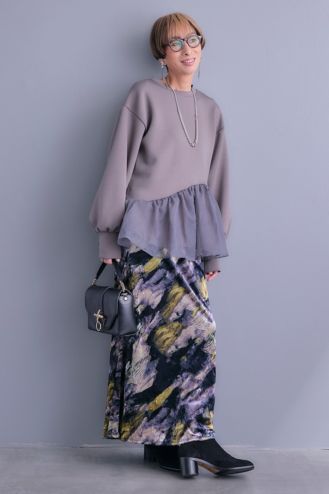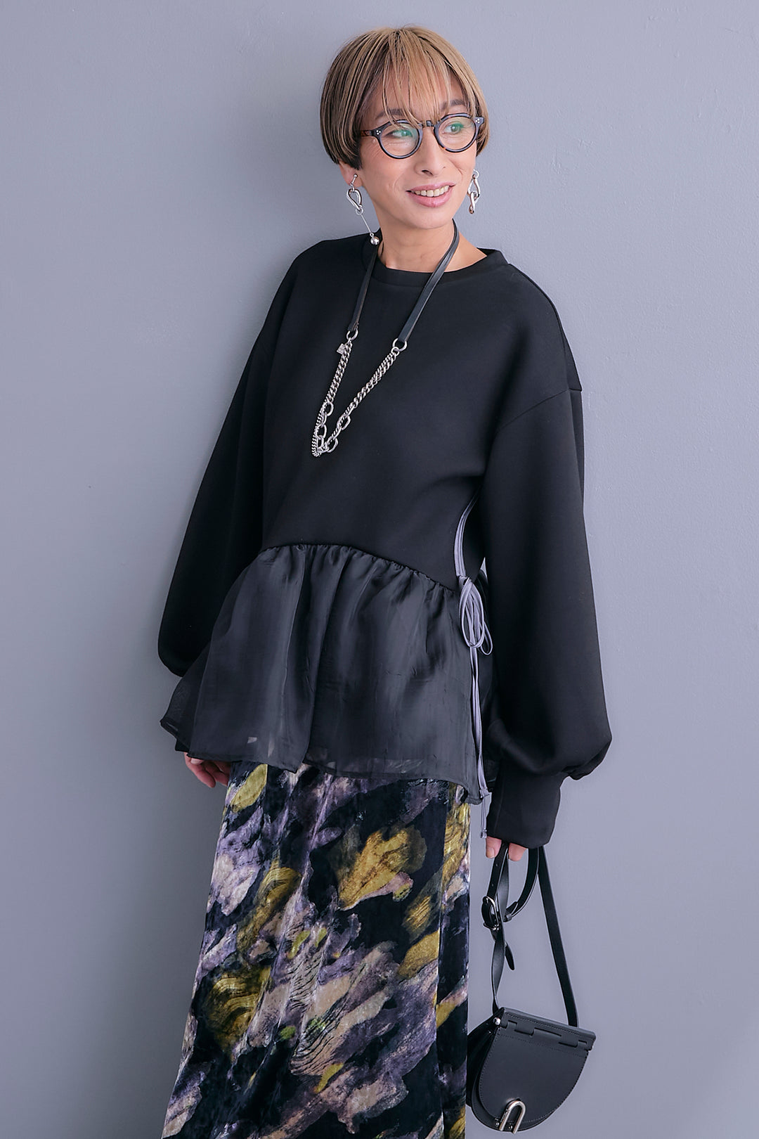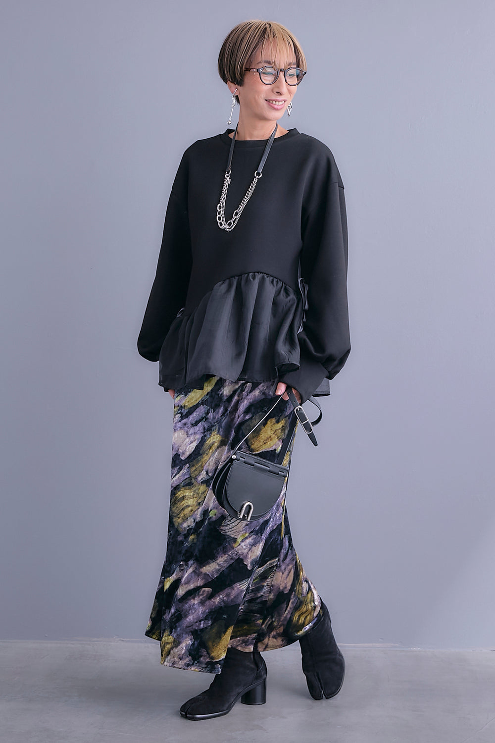 【SET】アシメペプラムオーガンジートップス+ベロアニュアンスアートスカート(2set)