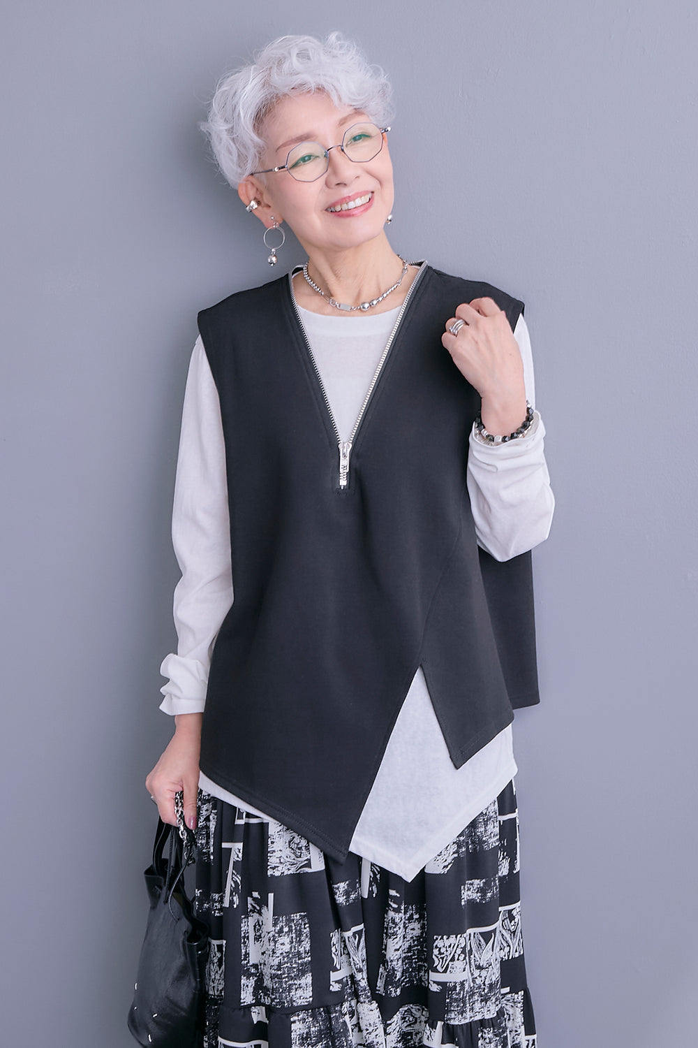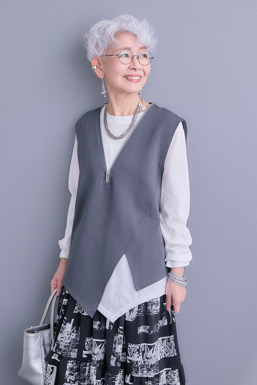 【予約】ZIPオープンVネックベスト+アシメロンT