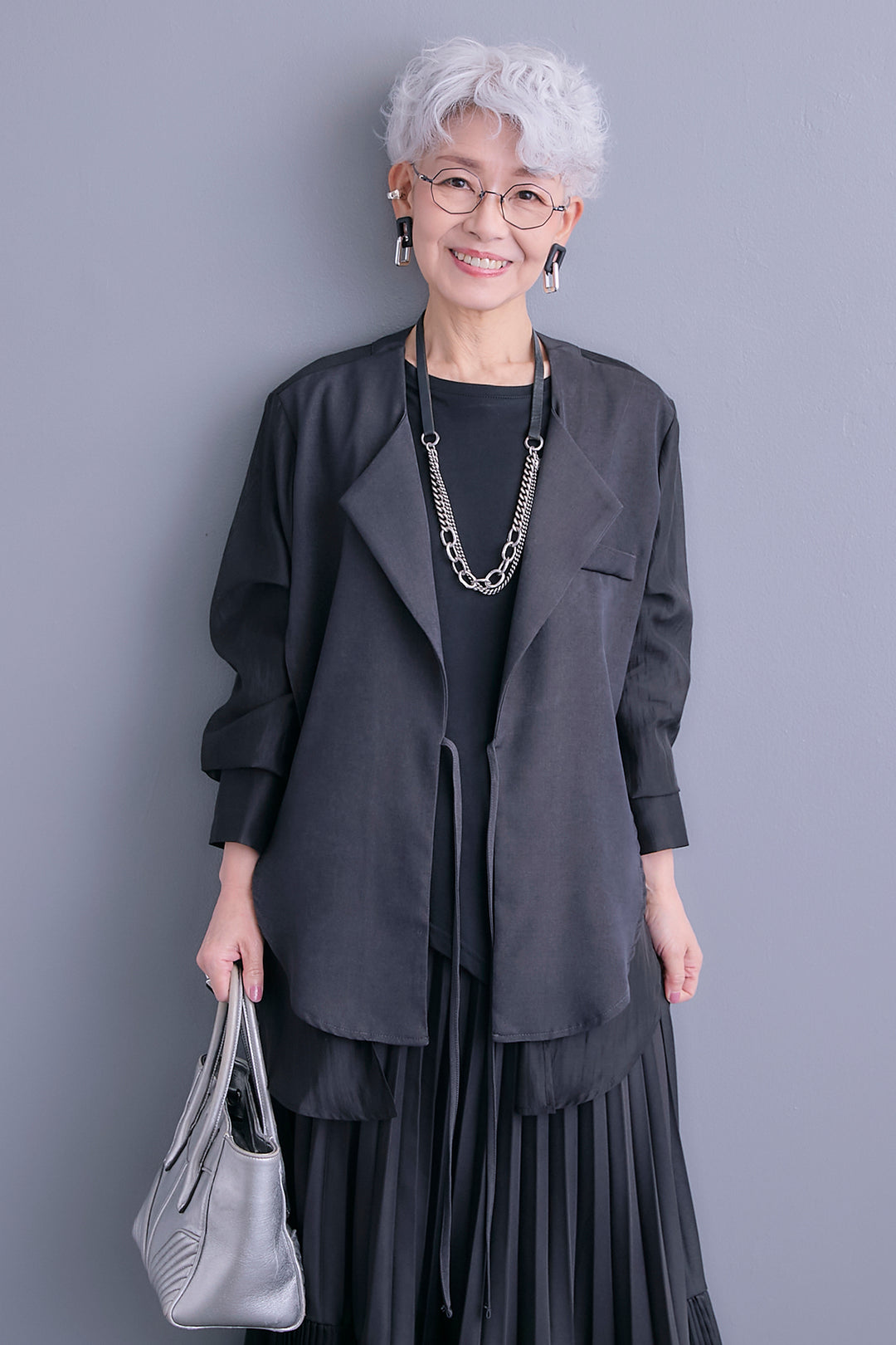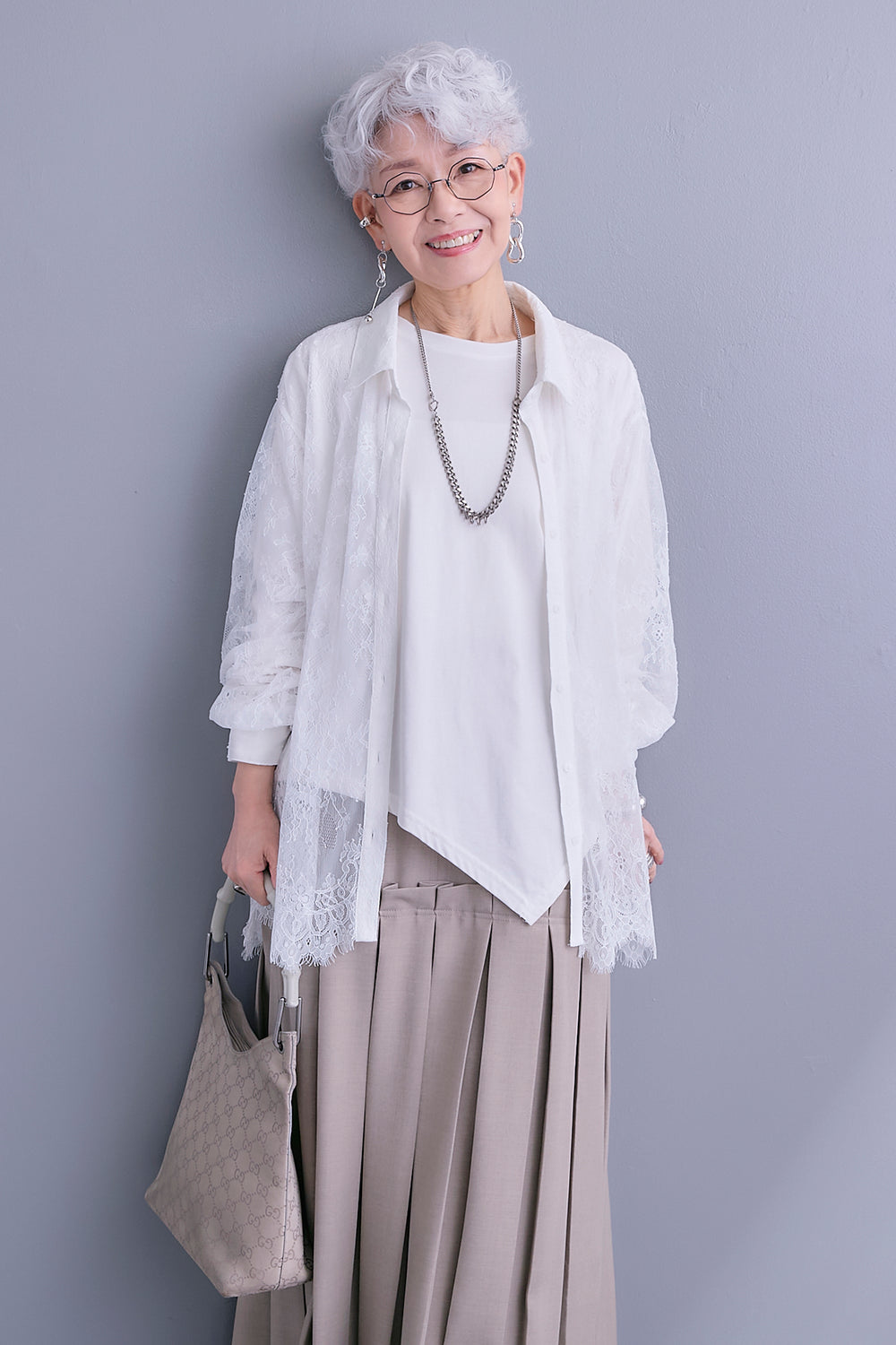 【SET】シアーシャツドッキングジャケット+アシンメトリーロンT+アシンメトリープリーツスカート(3set)