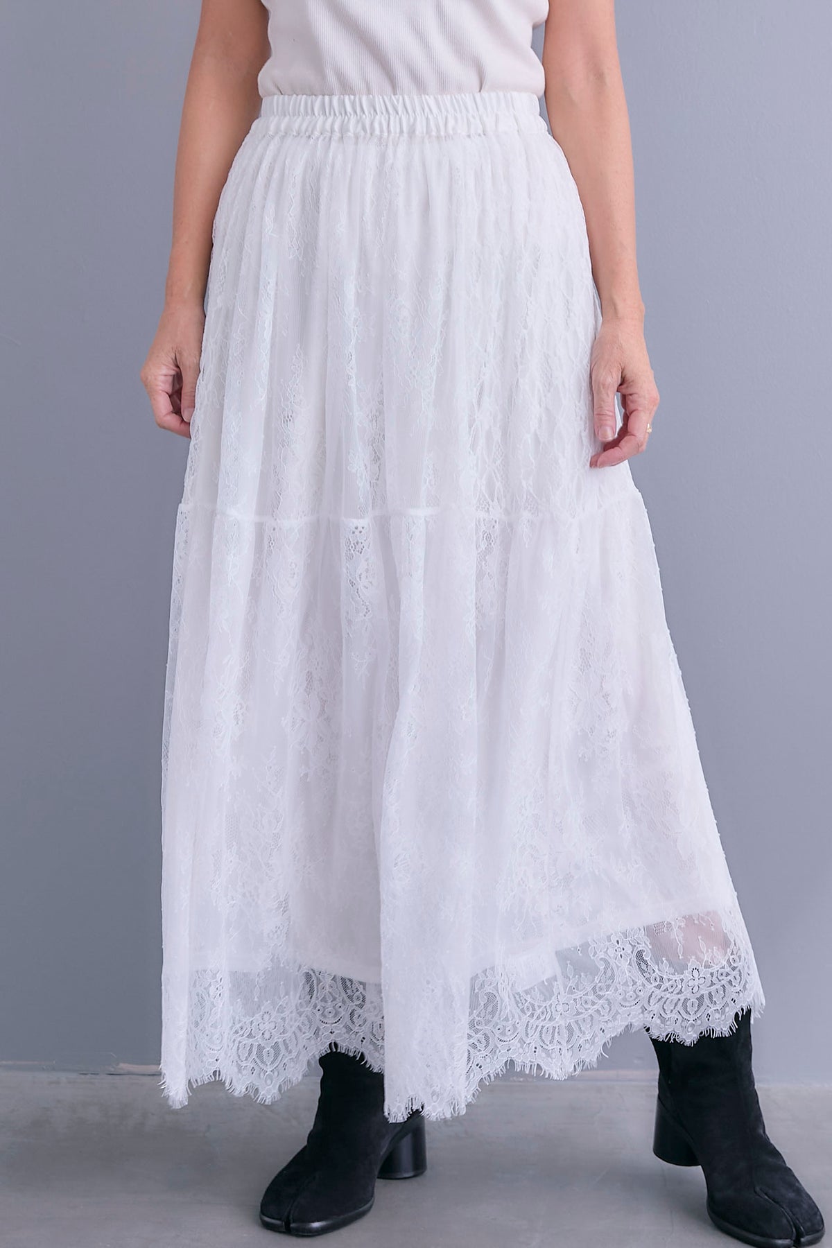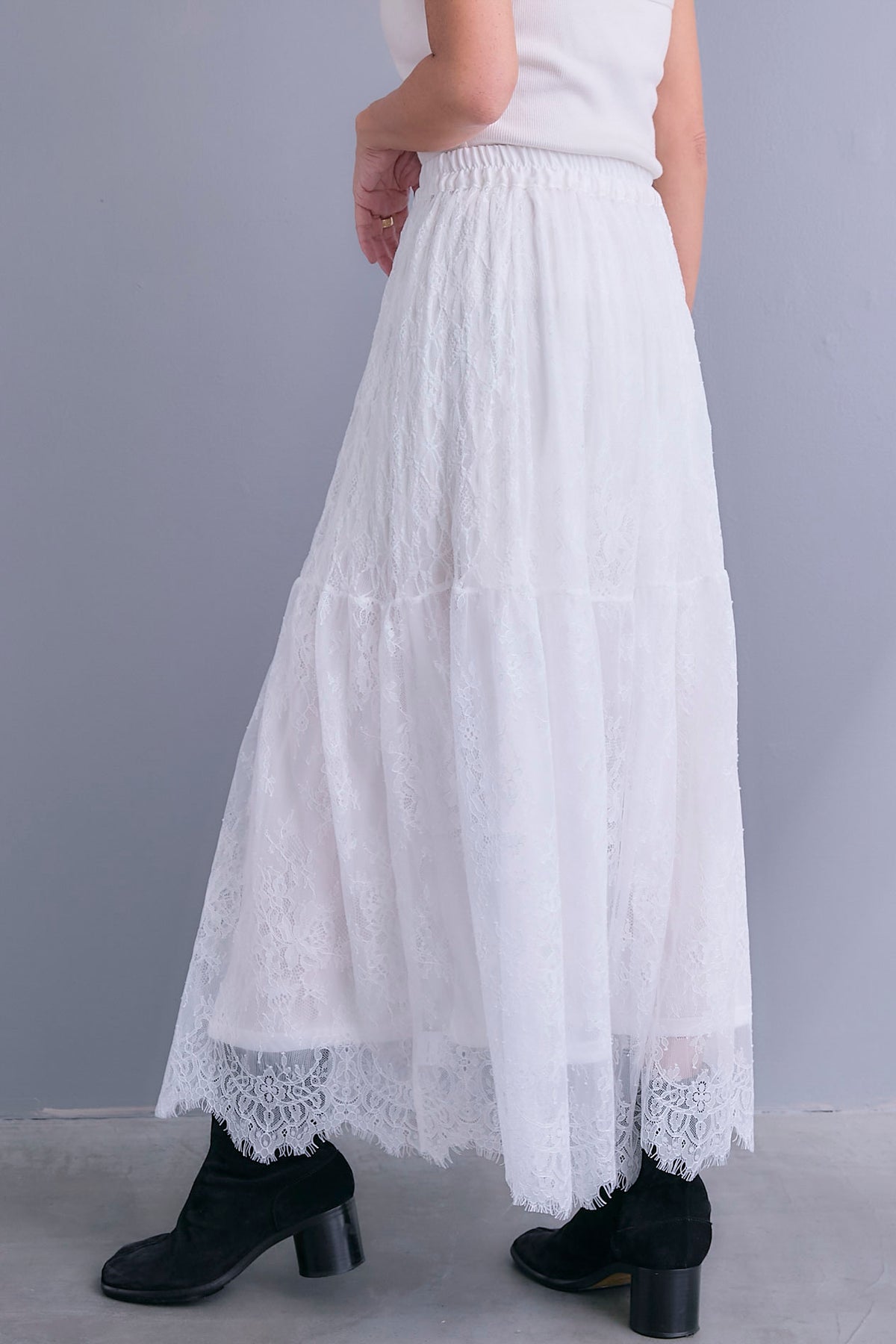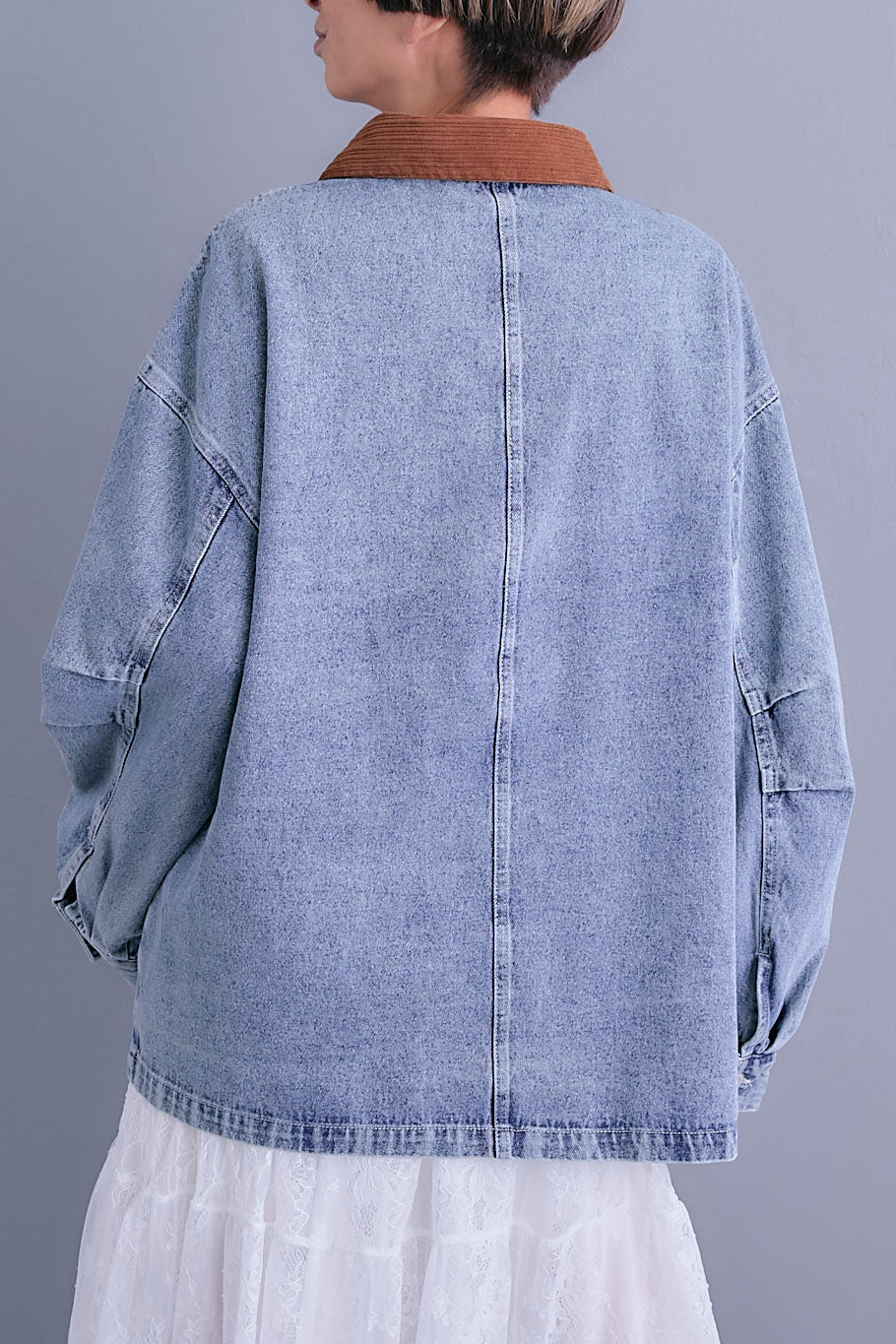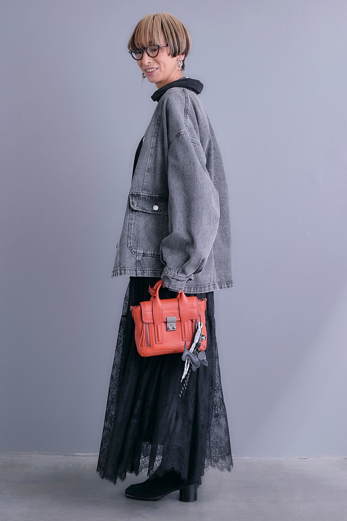 【SET】コーデュロイカラー10ozデニムジャケット+アシンメトリーロンT+アイラッシュレースロングスカート(3set)
