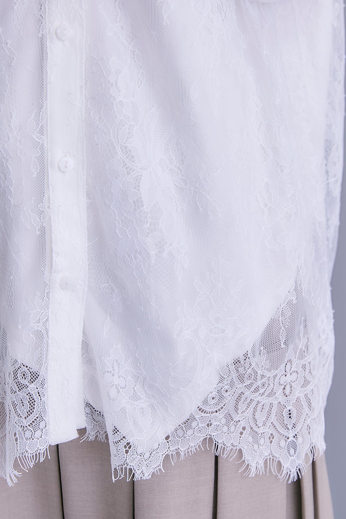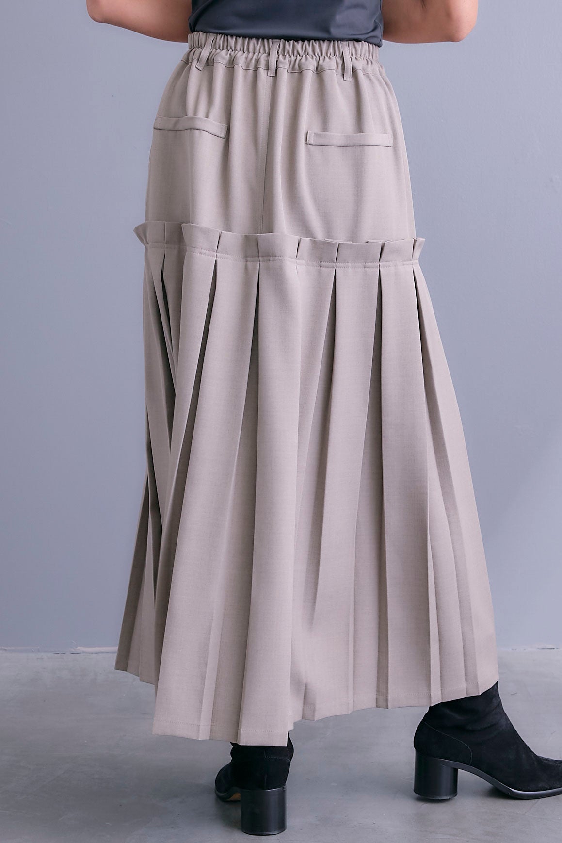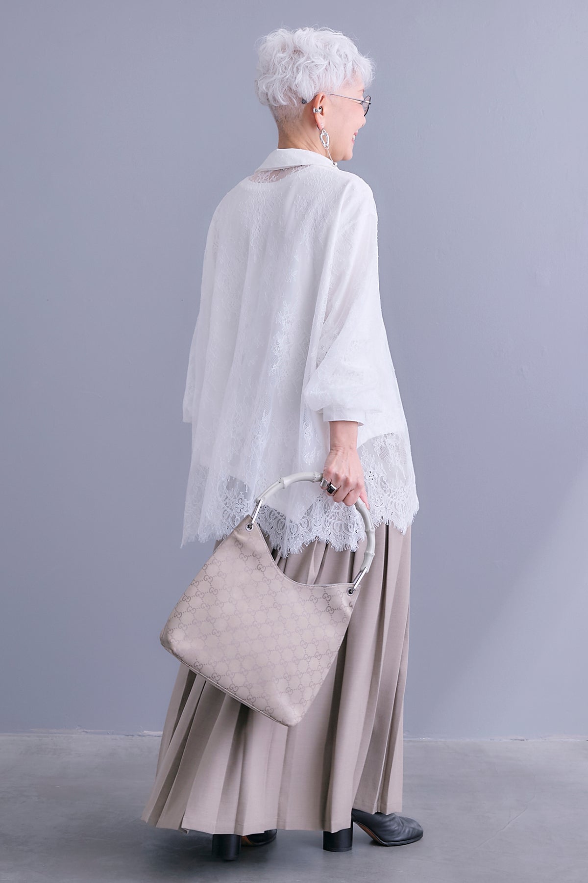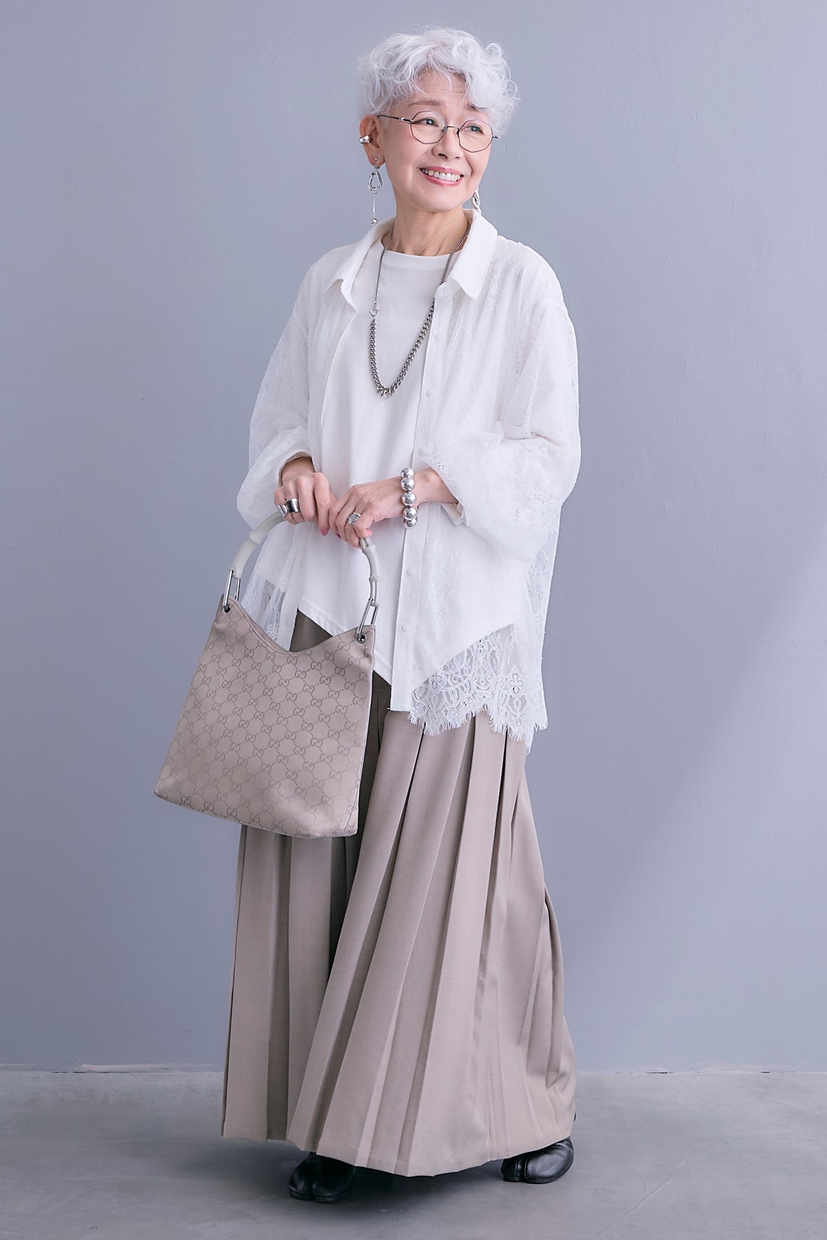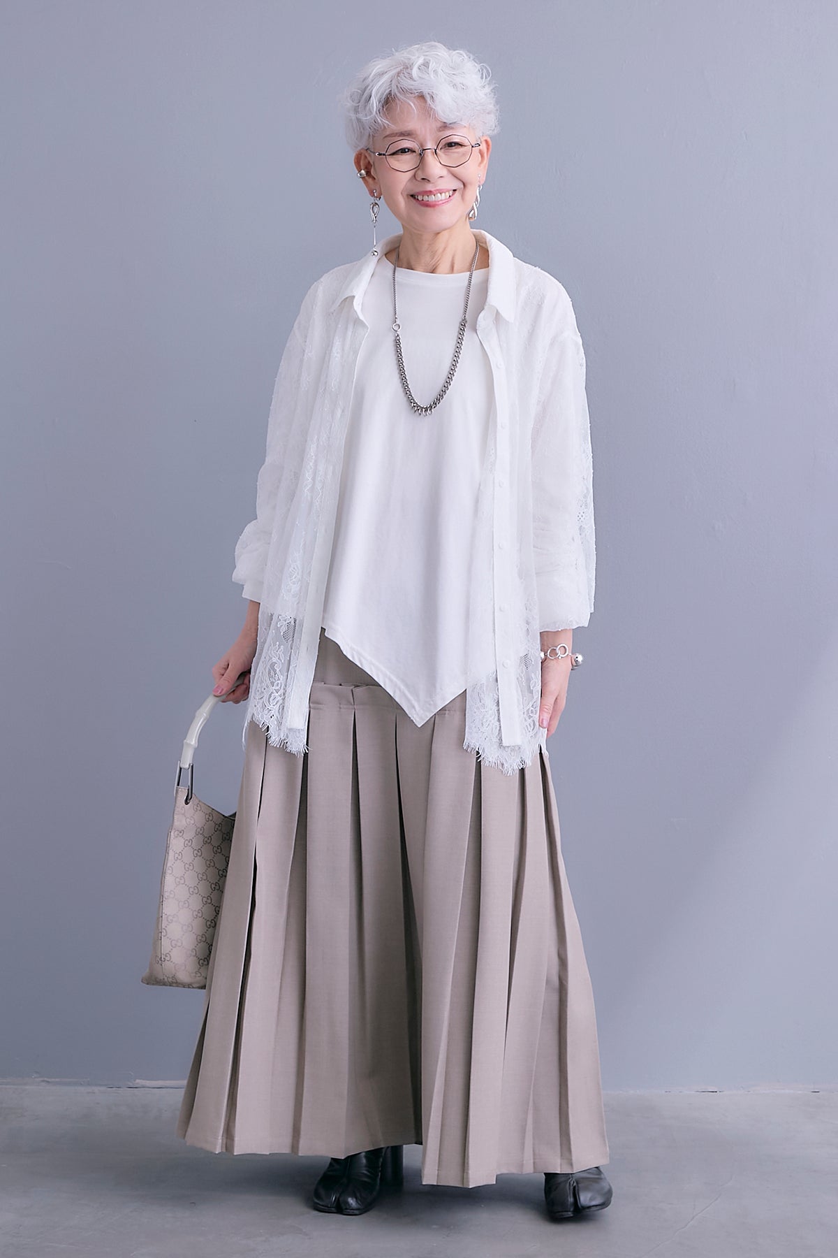 【SET】アイラッシュレースボリュームスリーブシャツ+アシンメトリーロンT+ボックスプリーツロングスカート(3set)