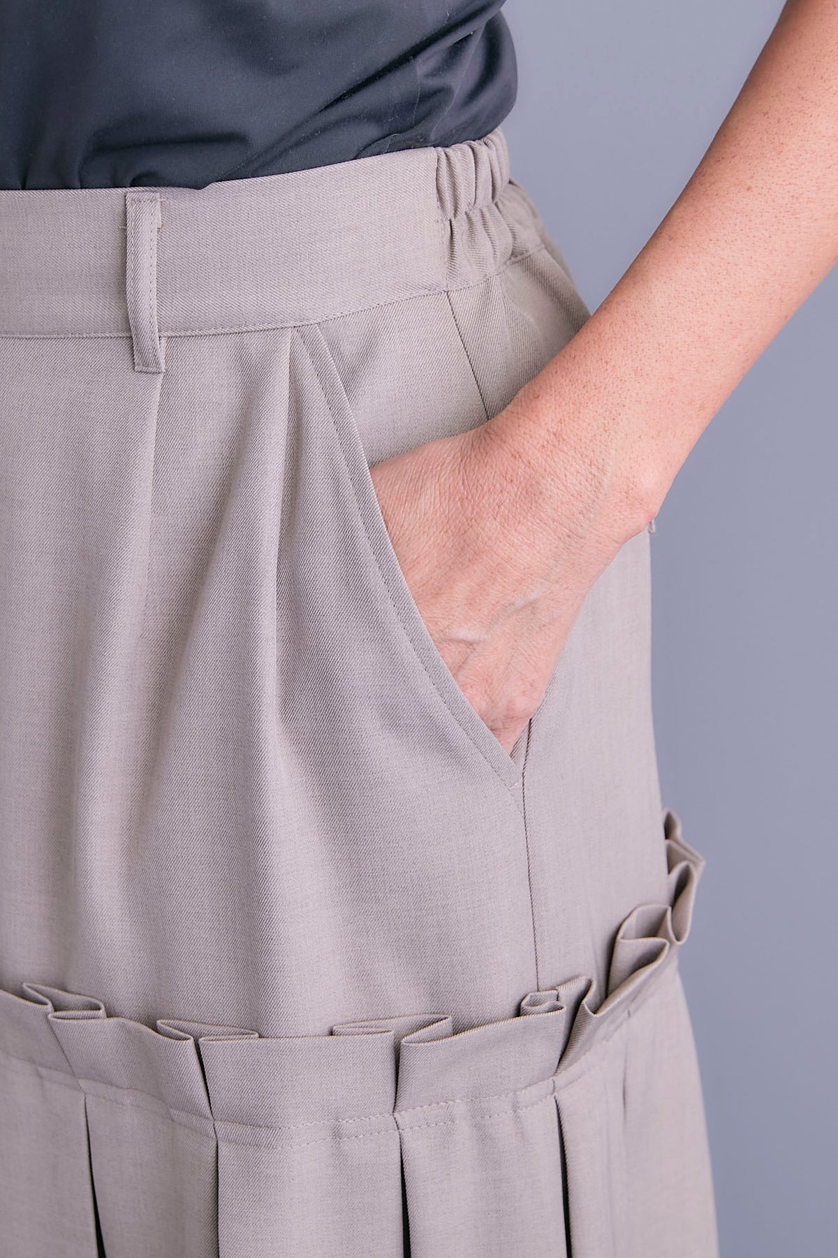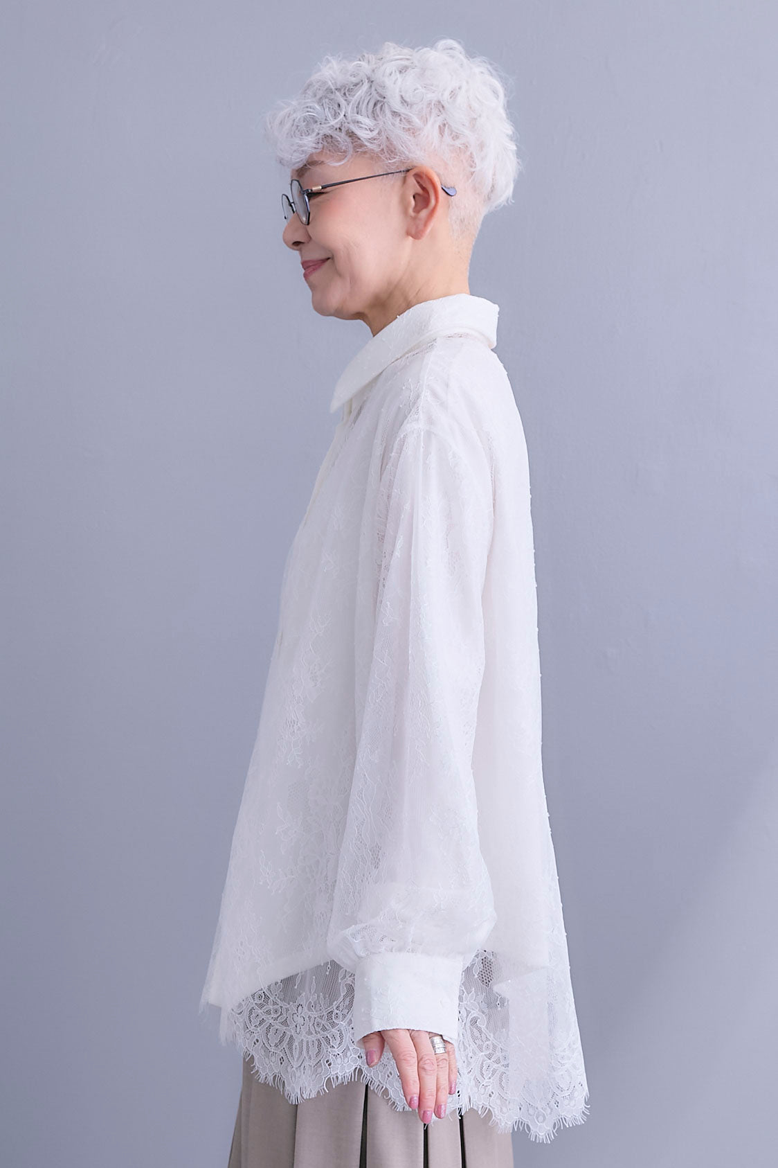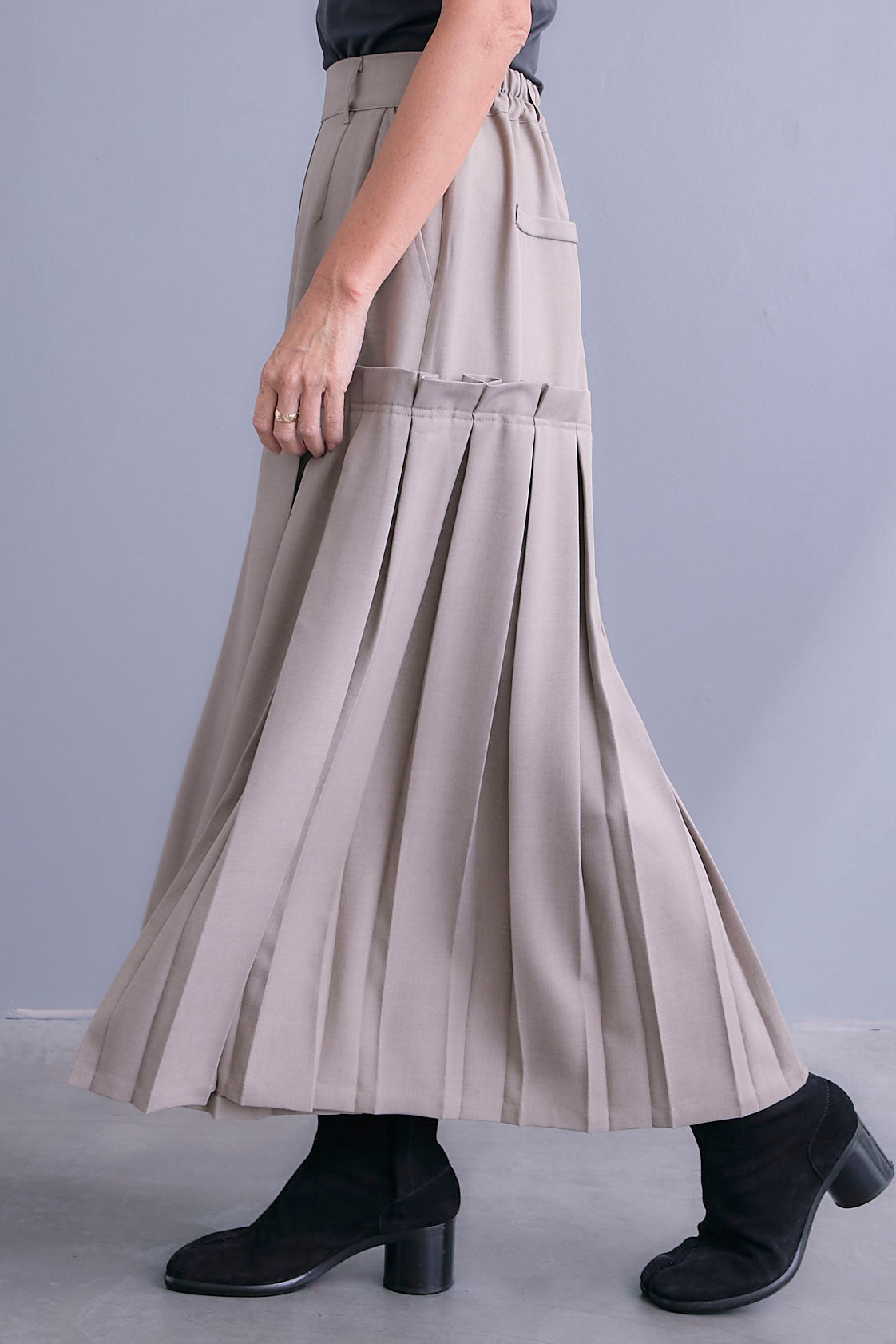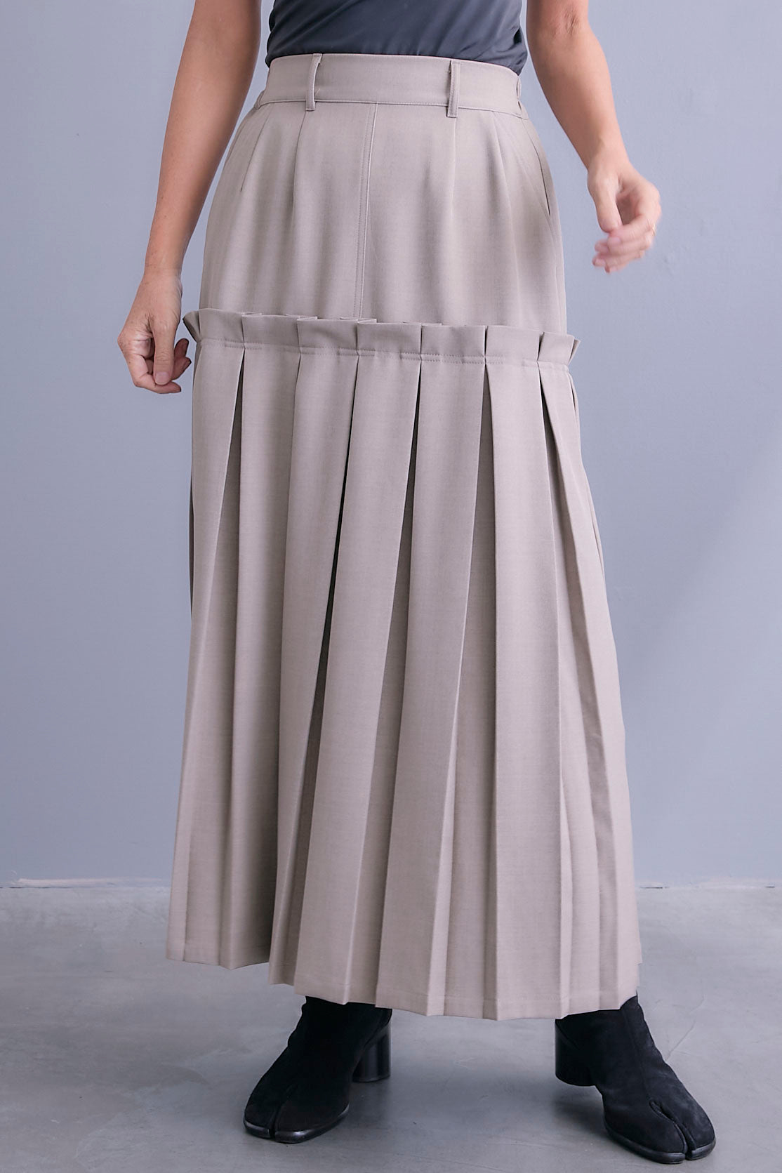 【SET】アイラッシュレースボリュームスリーブシャツ+アシンメトリーロンT+ボックスプリーツロングスカート(3set)