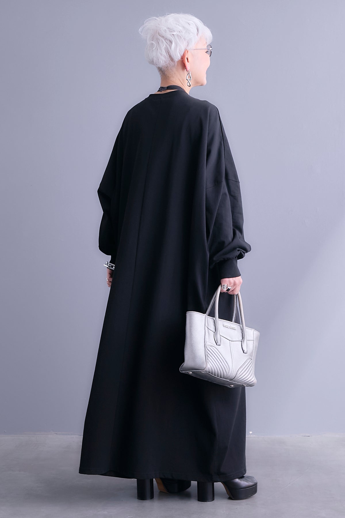 リラックス感のあるシルエットに、落ち着いた表情を備えたロングワンピース。身幅をたっぷりと取ったルーズなラインが、動くたびに自然なドレープを生み、軽やかな印象で着こなせます。シンプルなデザインだからこそ、小物や羽織りでアレンジしやすく、日常の装いから外出シーンまで幅広く取り入れやすい一着です。