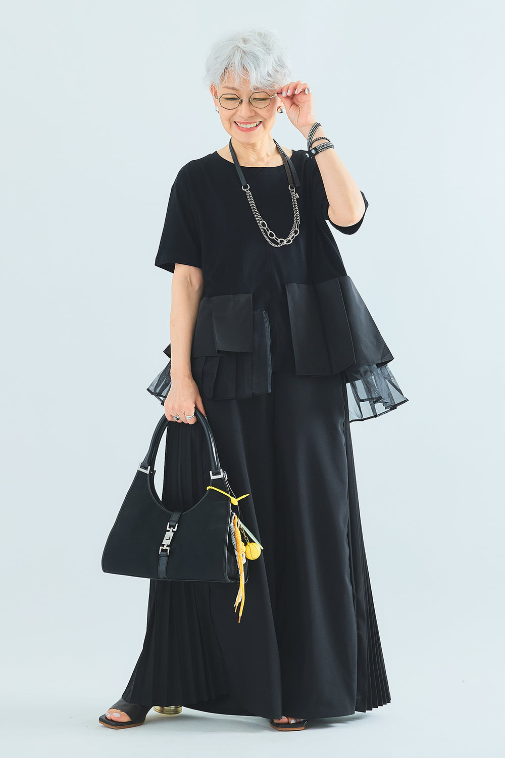 【SET】タックオーガンジーレイヤードトップス+サイドプリーツワイドパンツ(2set)