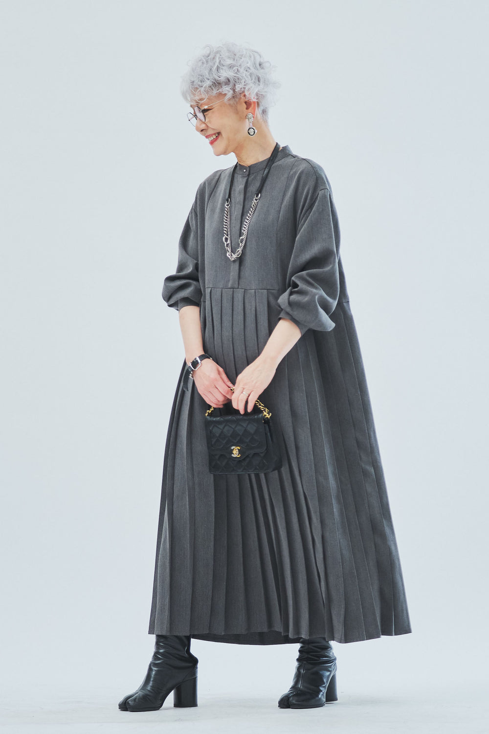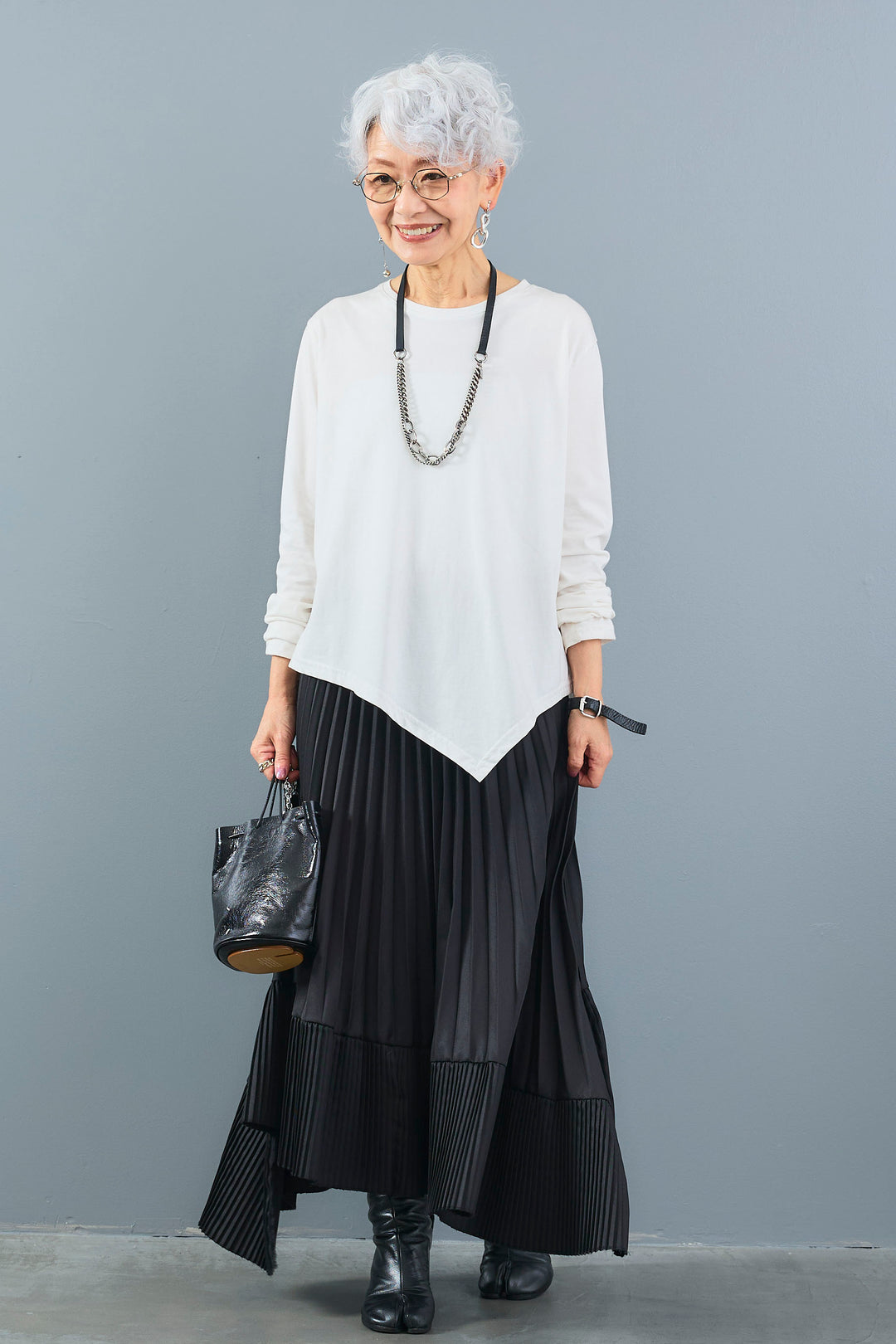 【SET】フロントレイヤードロングシャツ+アシンメトリープリーツスカート(2set)