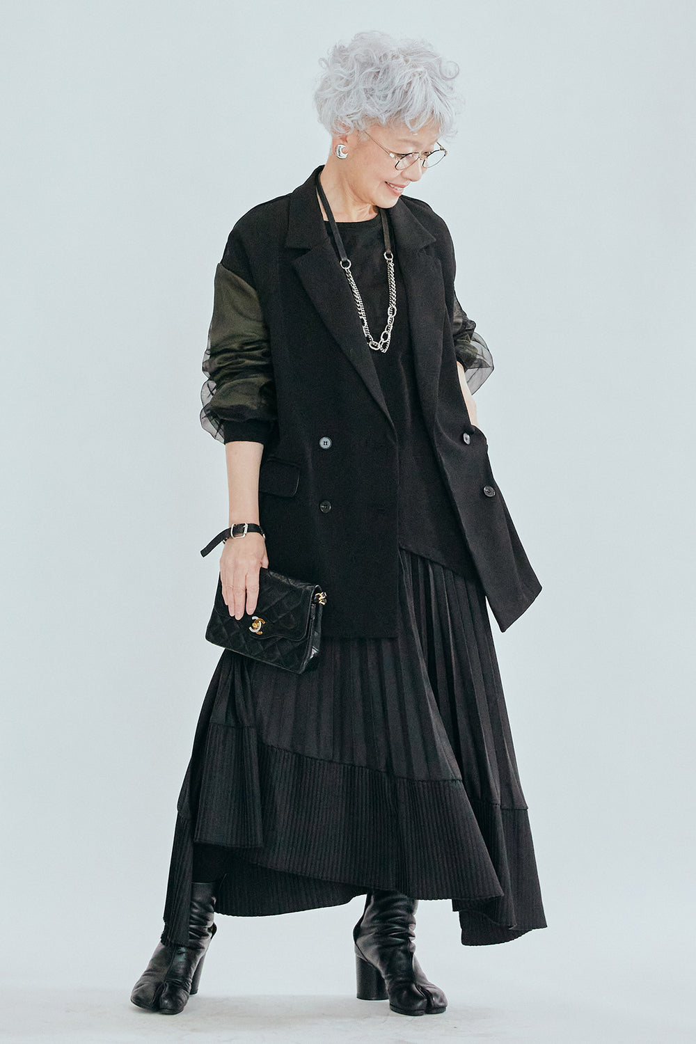 【SET】チュールレイヤードMA-1ジャケット+アシンメトリーロンT+アシンメトリープリーツスカート(3set)