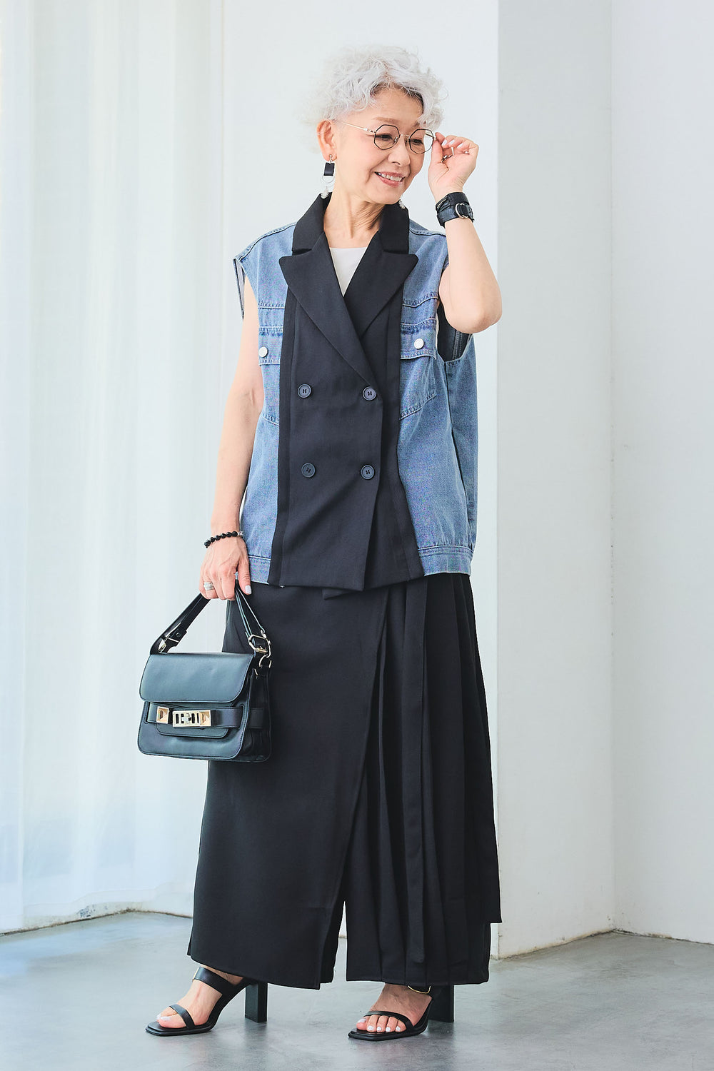 【即納】デニムリメイクテーラードベスト