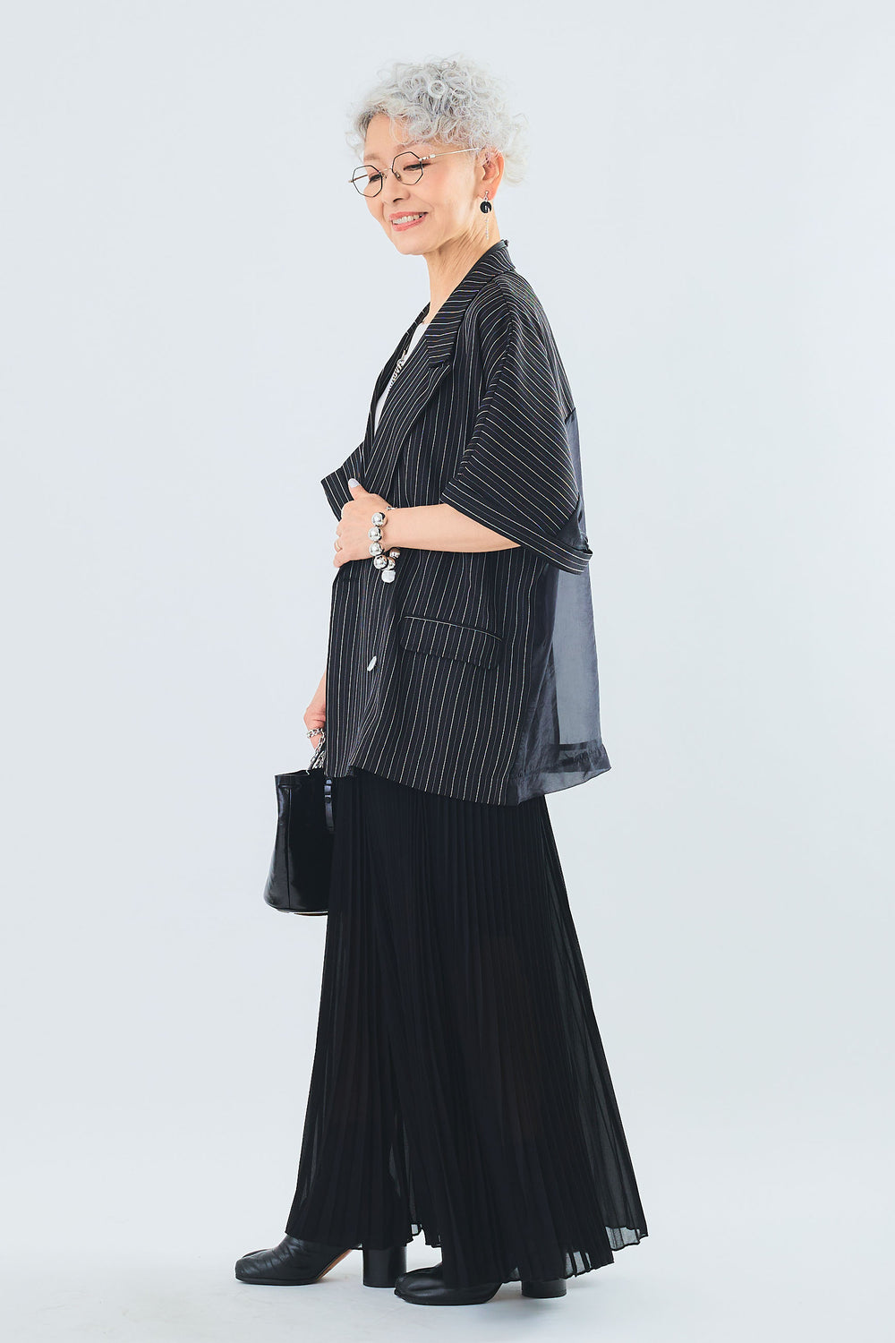 【即納】バックオーガンジーヘリンボーンストライプサマージャケット