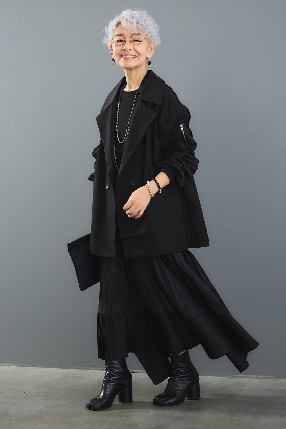 【即納】ノーカラーミニマルドルマンジャケット