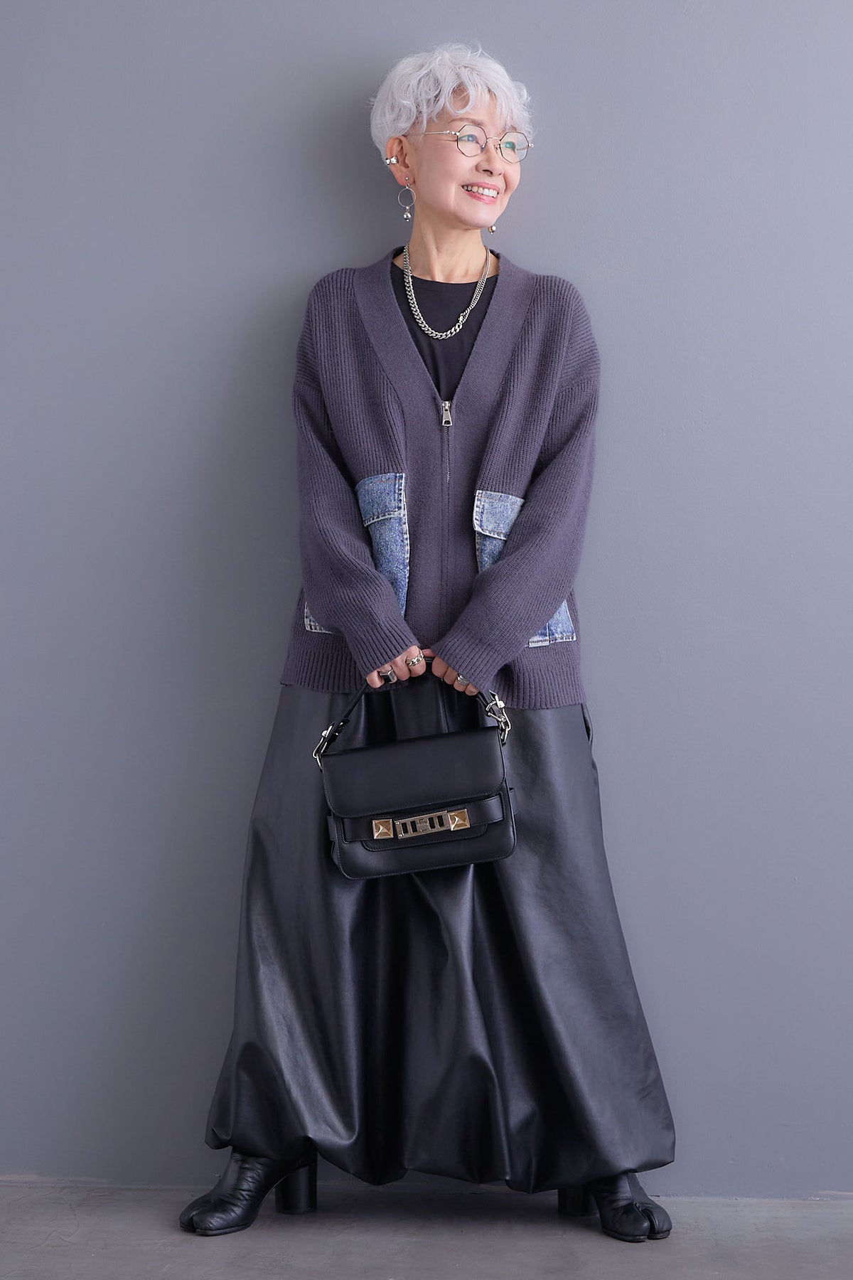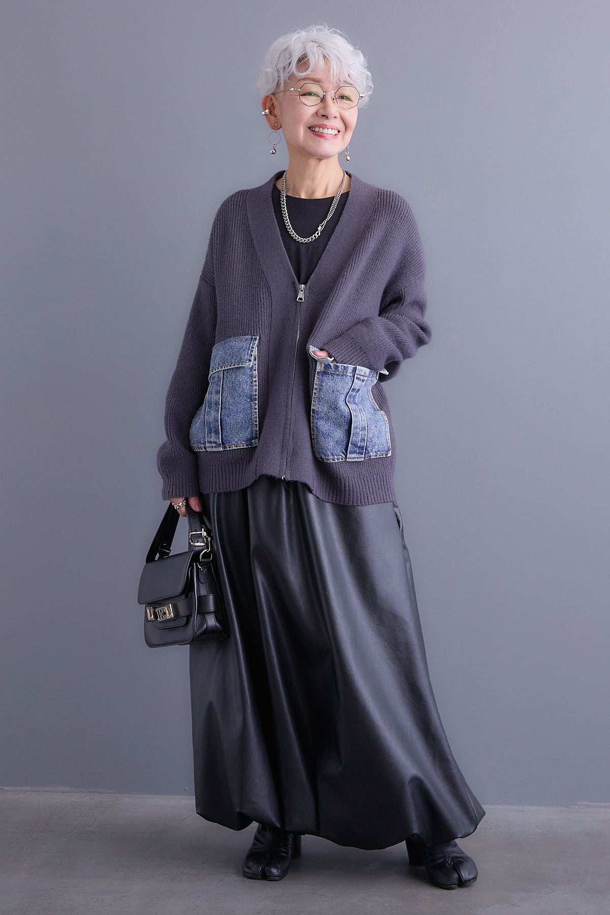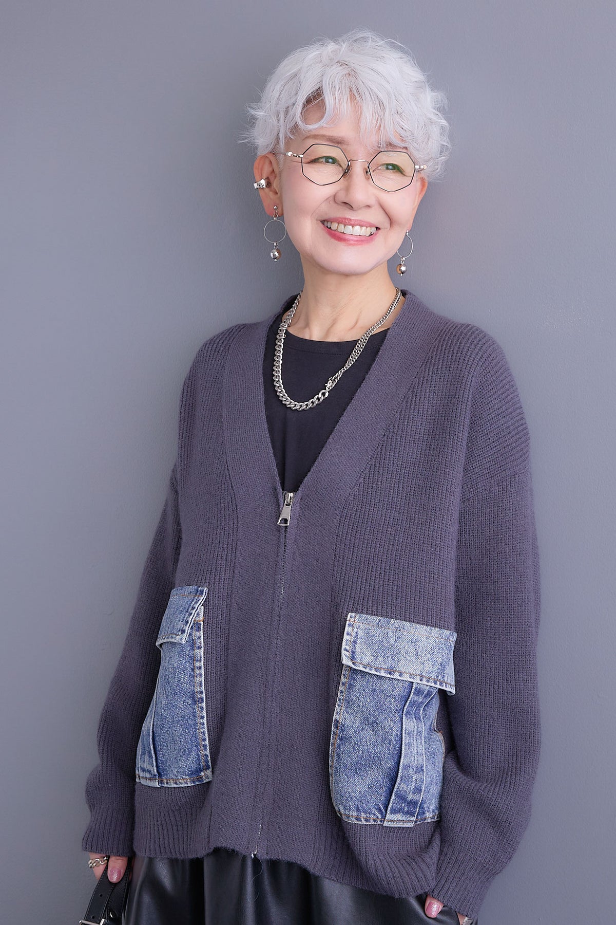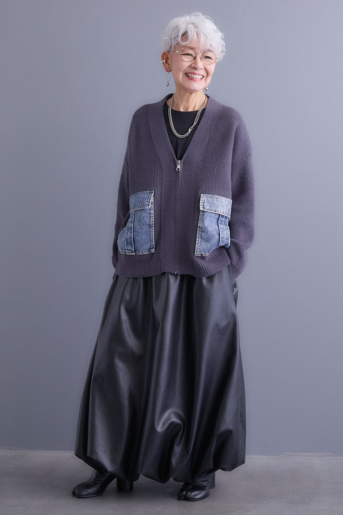 デニムポケットがアクセントになったZIPデザインのニットカーディガン。異素材の組み合わせがスタイリングに遊び心をプラスし、程よくカジュアルな印象に。ゆとりのあるシルエットでリラックス感がありながら、ファスナー仕様で着脱もスムーズ。デイリー使いにぴったりな一枚です。