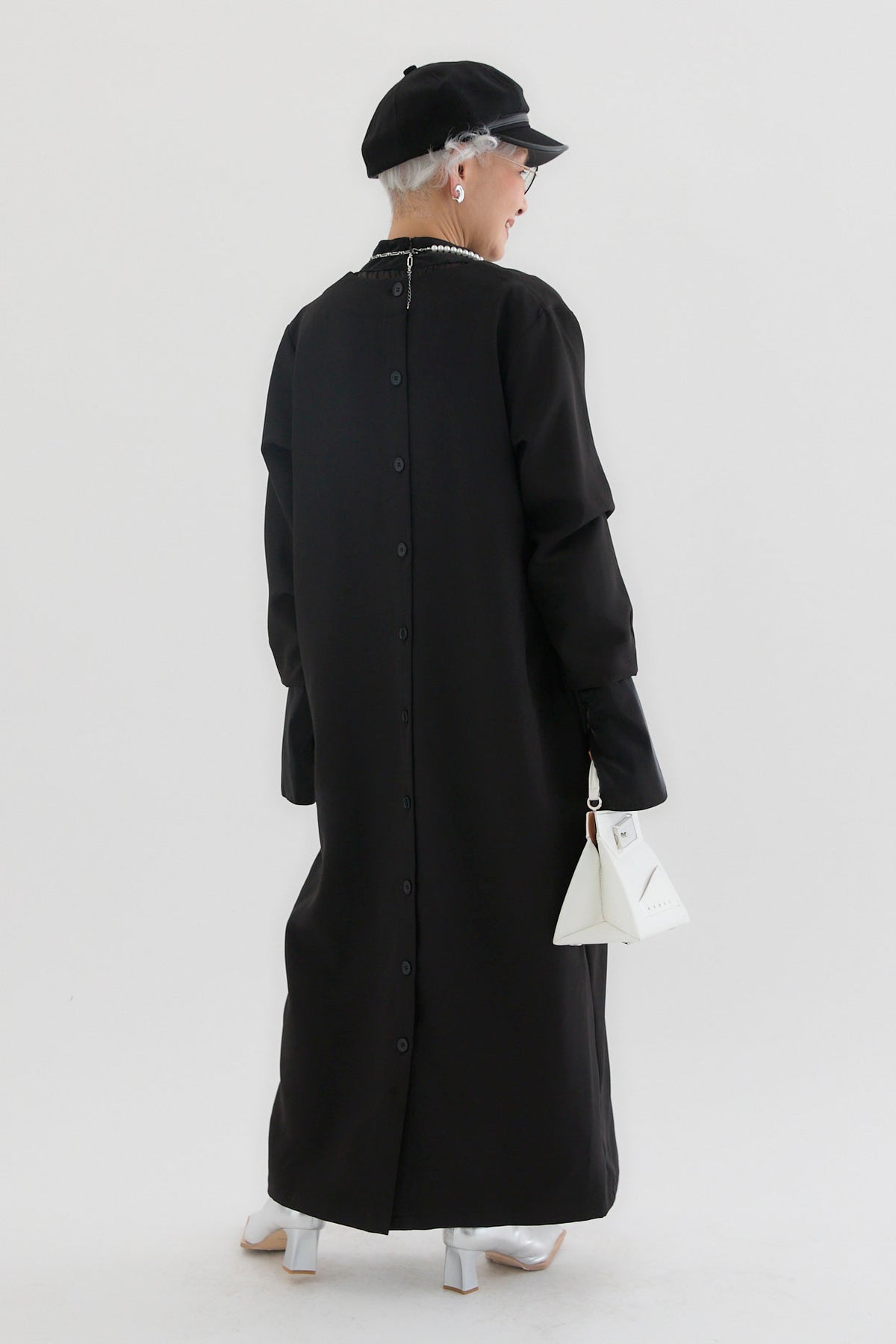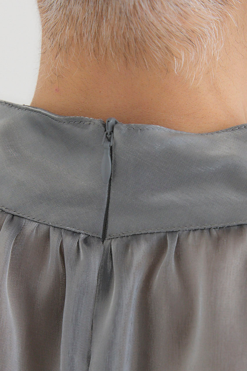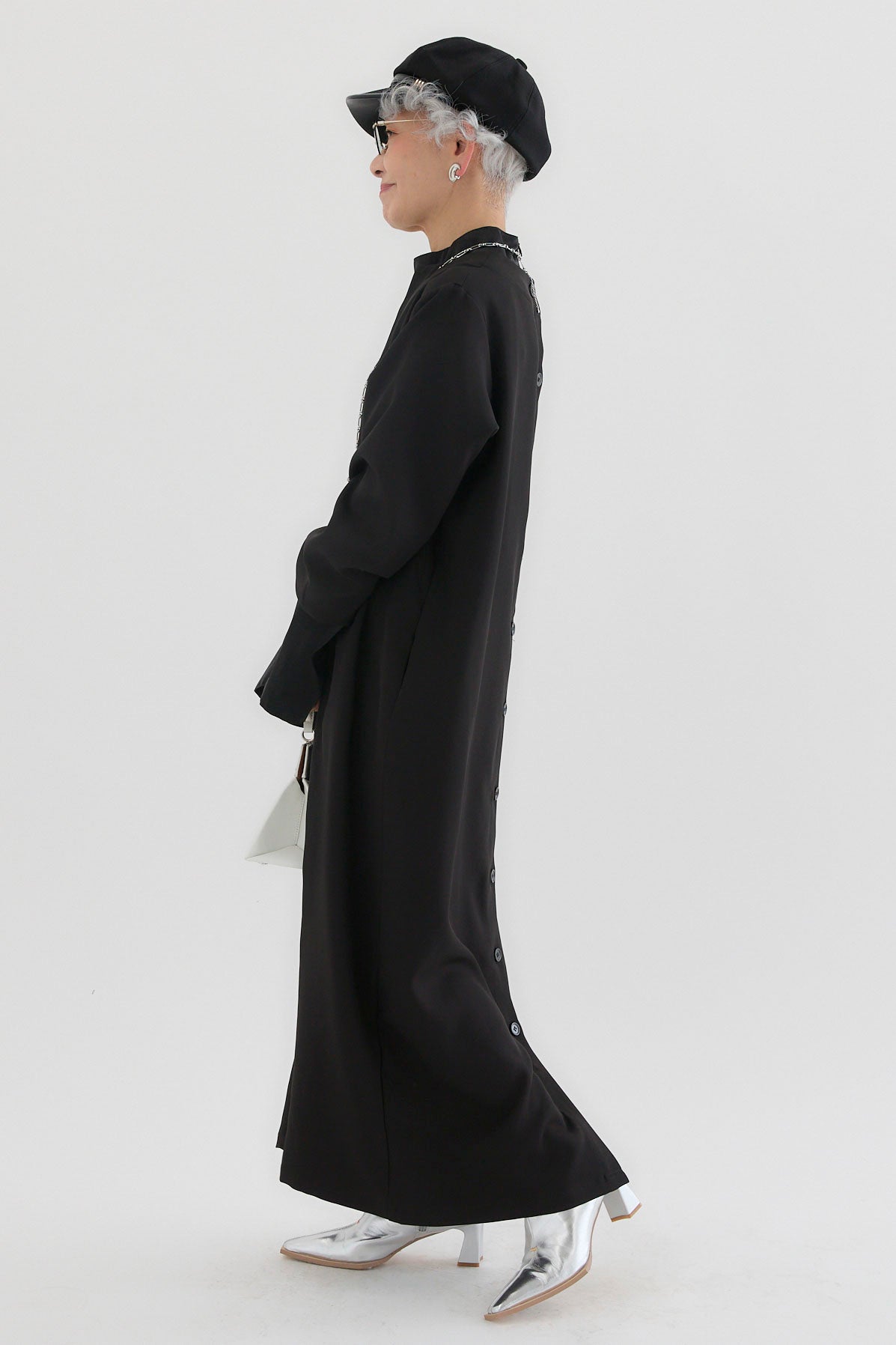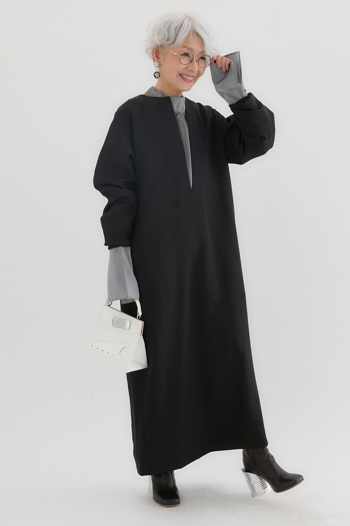 ダブルクロスキーネックワンピースとツヤオーガンジーロングカフスブラウスのセットアップです。ワンピースはキーネックのすっきりとしたデザインが上品で洗練された印象を演出。滑らかなダブルクロス素材が美しいシルエットを保ちながら、快適な着心地を提供します。ブラウスは繊細なオーガンジー素材を使用し、袖口に施されたロングカフスが華やかなアクセントに。セットでの着用はもちろん、単品でも幅広いコーディネートが楽しめます。特別なシーンからデイリーまで対応する万能なアイテムです。
