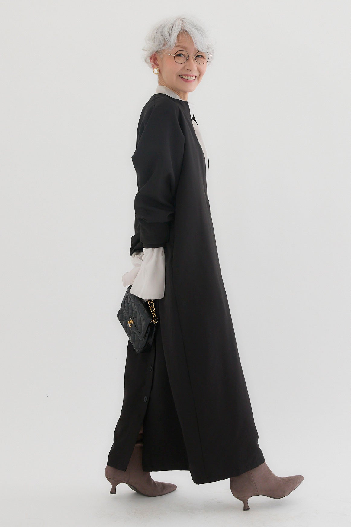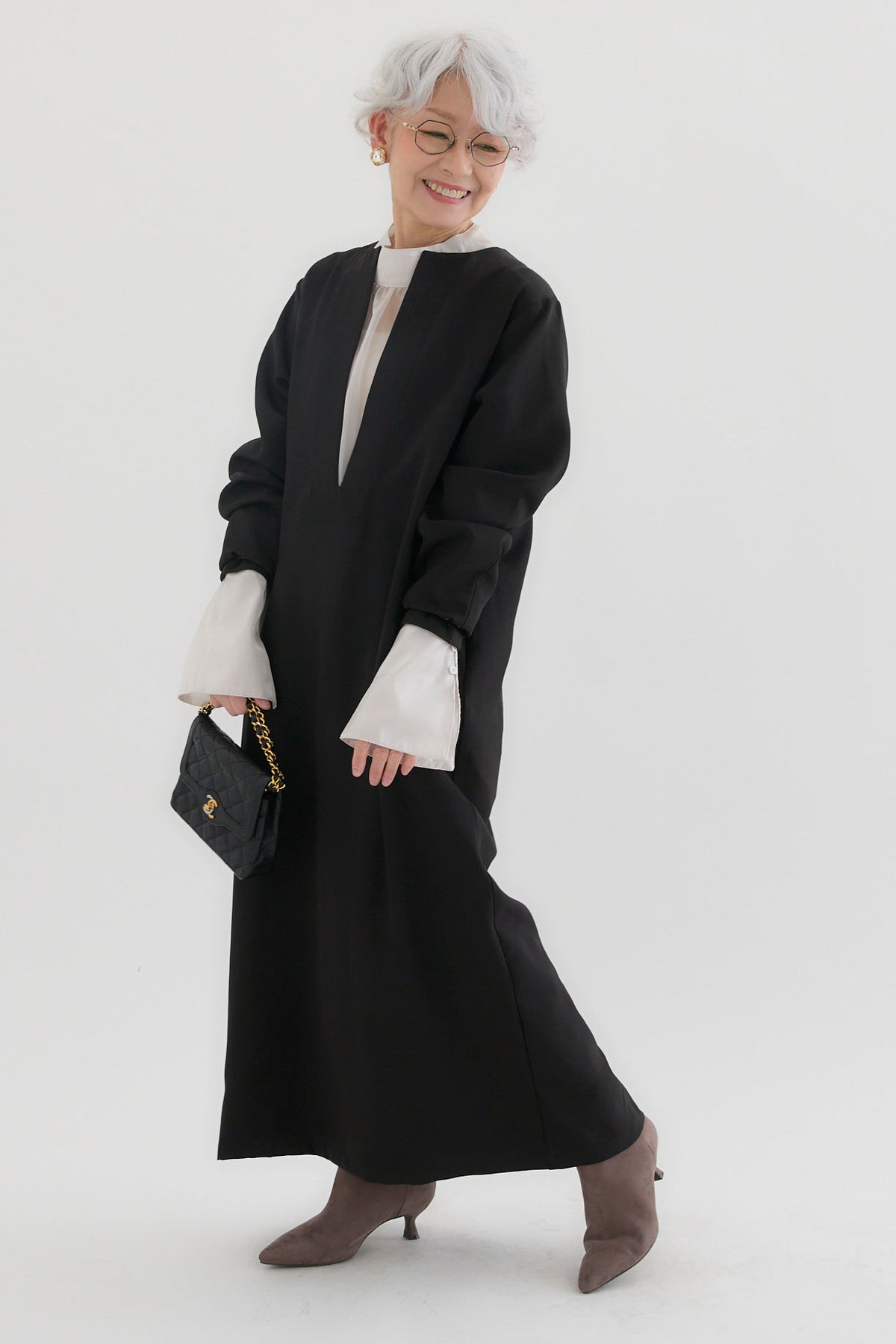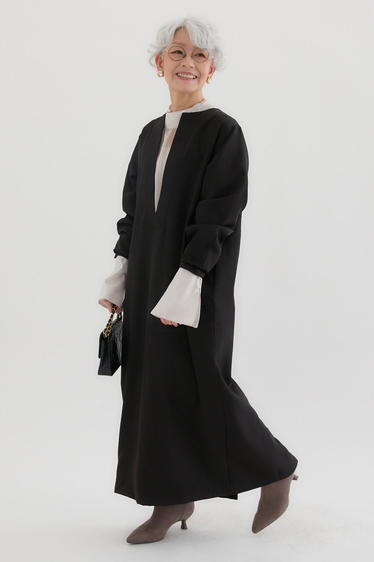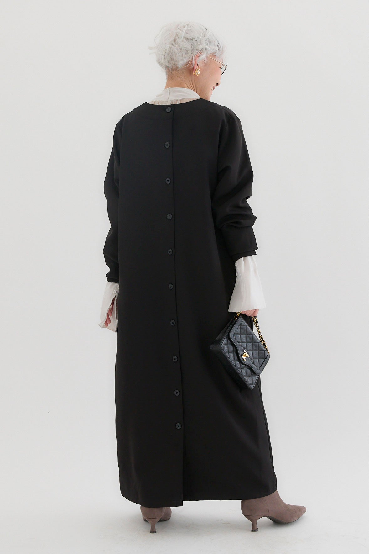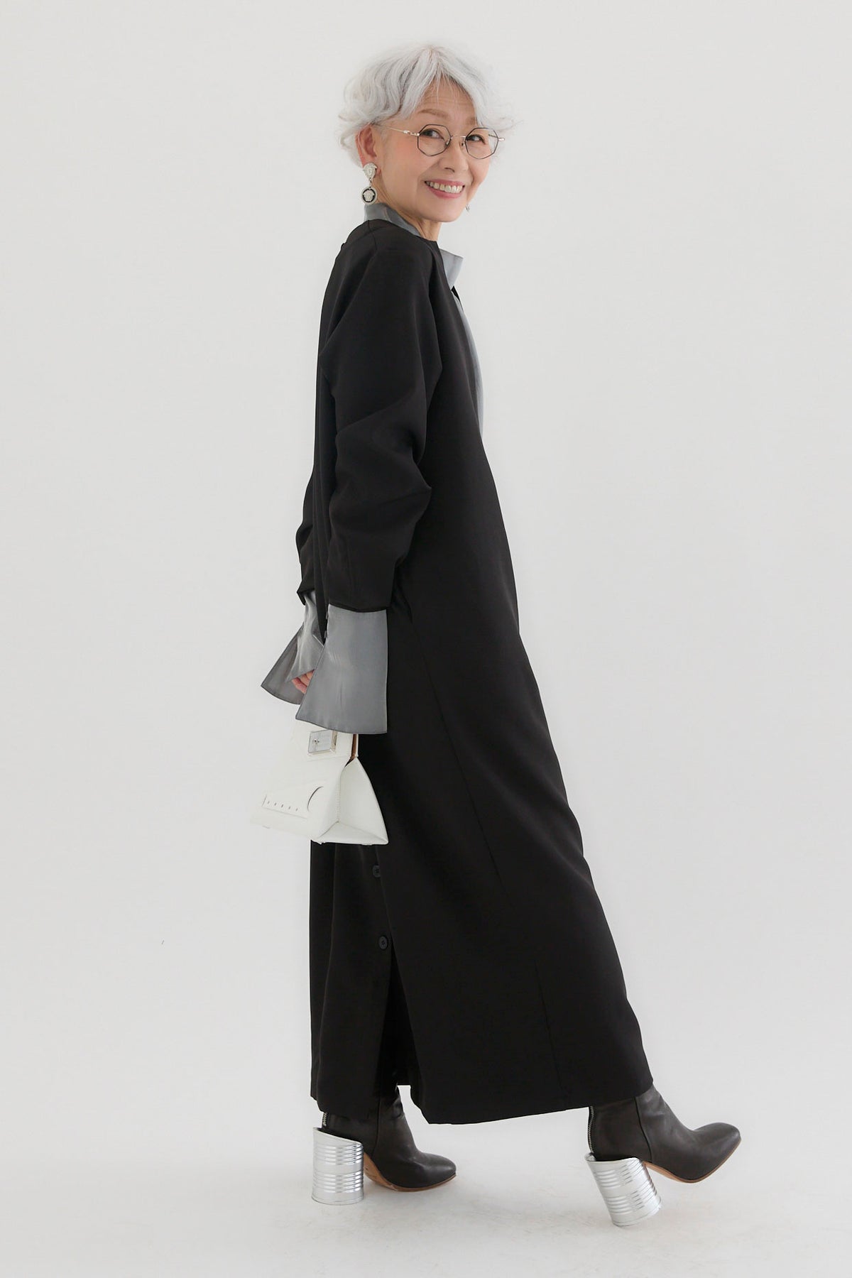ダブルクロスキーネックワンピースとツヤオーガンジーロングカフスブラウスのセットアップです。ワンピースはキーネックのすっきりとしたデザインが上品で洗練された印象を演出。滑らかなダブルクロス素材が美しいシルエットを保ちながら、快適な着心地を提供します。ブラウスは繊細なオーガンジー素材を使用し、袖口に施されたロングカフスが華やかなアクセントに。セットでの着用はもちろん、単品でも幅広いコーディネートが楽しめます。特別なシーンからデイリーまで対応する万能なアイテムです。