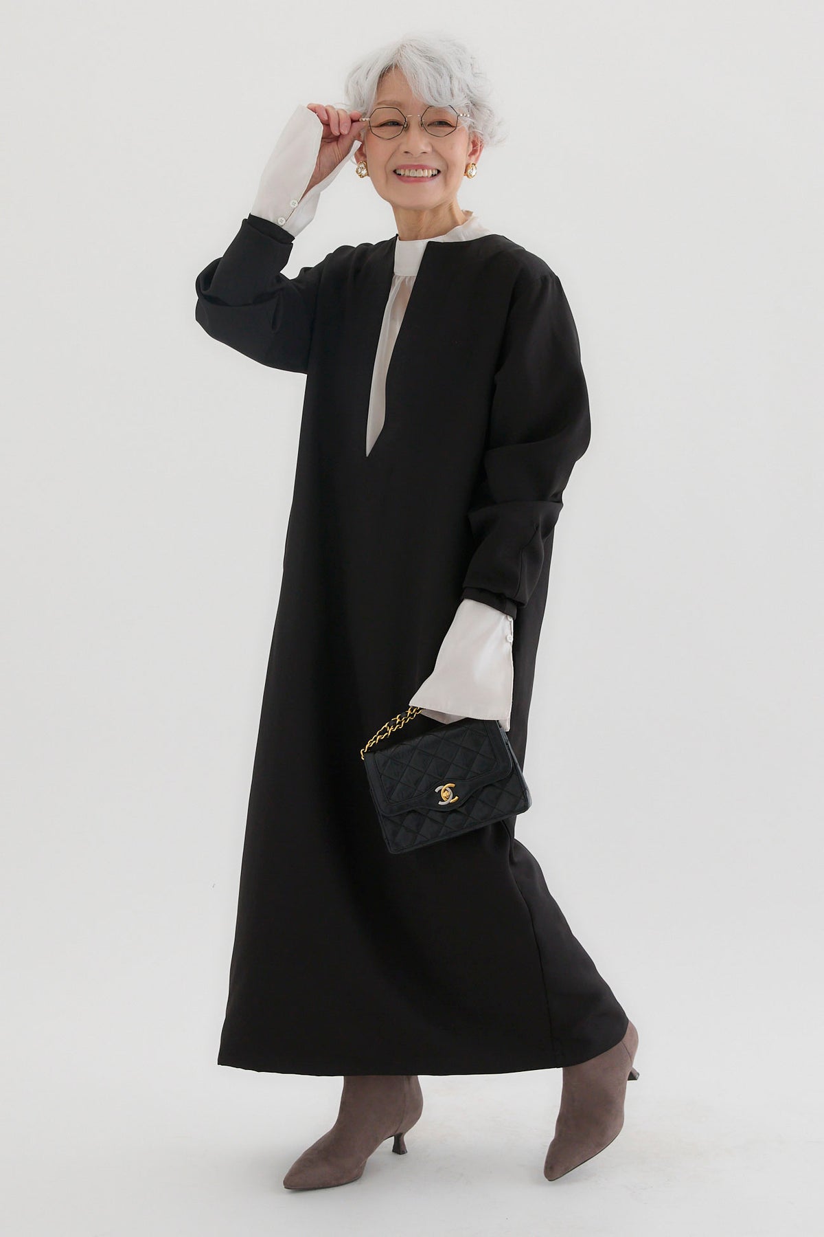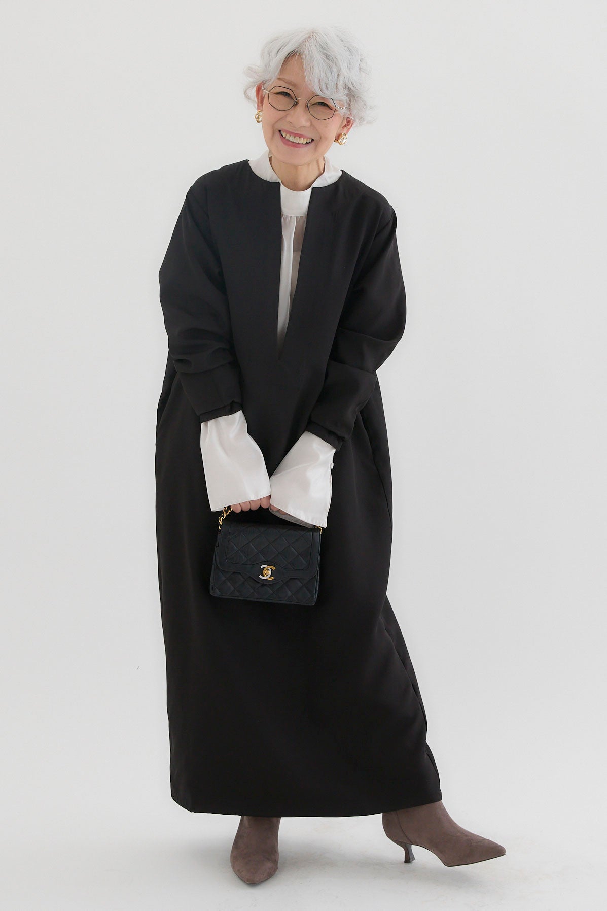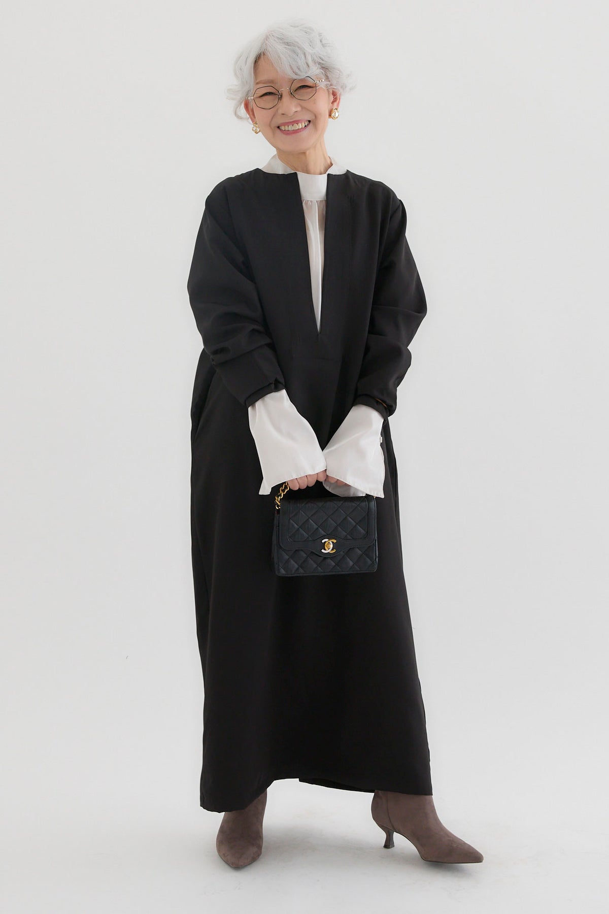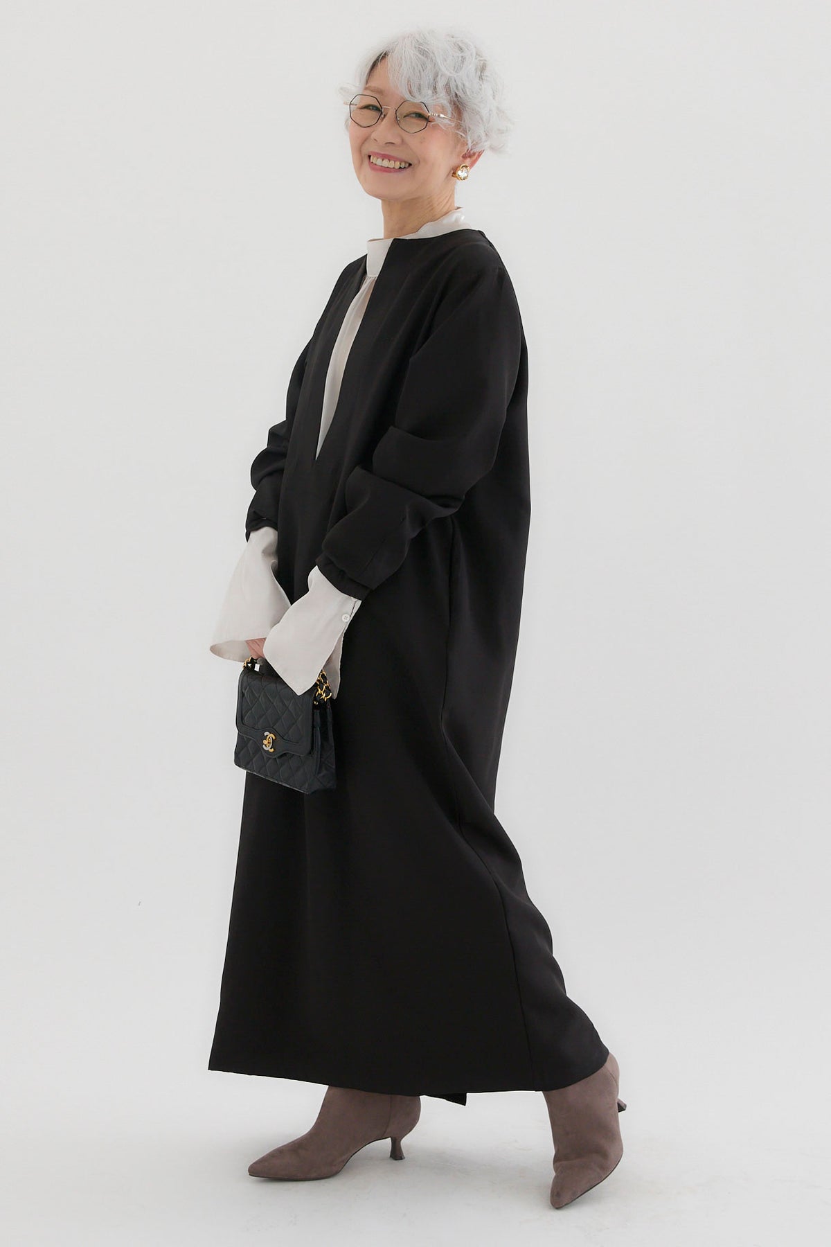 ダブルクロスキーネックワンピースとツヤオーガンジーロングカフスブラウスのセットアップです。ワンピースはキーネックのすっきりとしたデザインが上品で洗練された印象を演出。滑らかなダブルクロス素材が美しいシルエットを保ちながら、快適な着心地を提供します。ブラウスは繊細なオーガンジー素材を使用し、袖口に施されたロングカフスが華やかなアクセントに。セットでの着用はもちろん、単品でも幅広いコーディネートが楽しめます。特別なシーンからデイリーまで対応する万能なアイテムです。