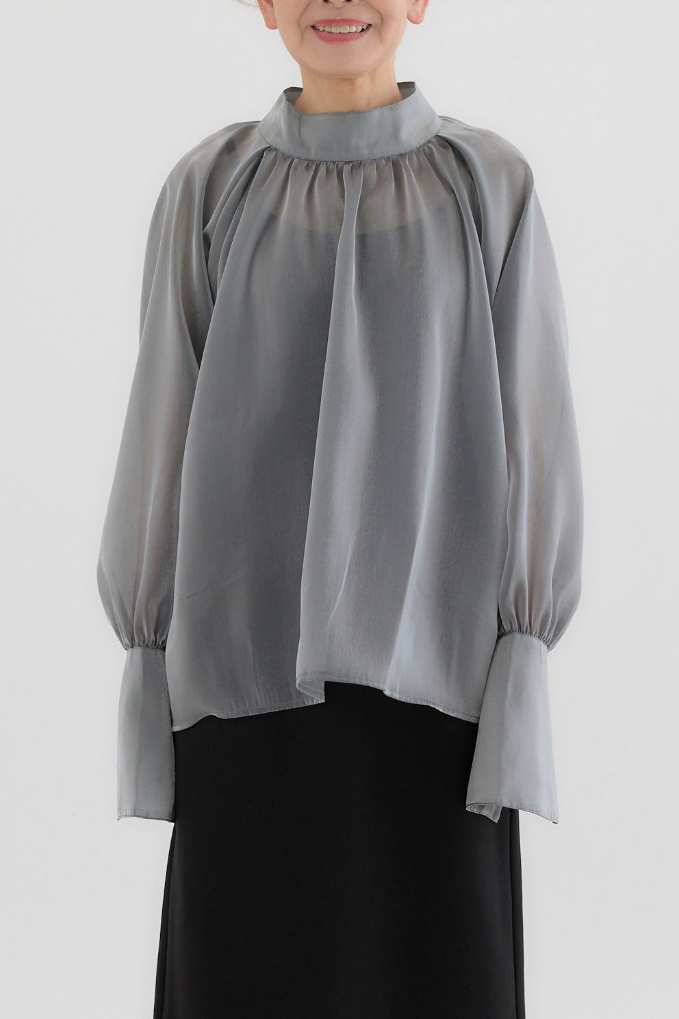 ◆ ツヤオーガンジーロングカフスブラウス