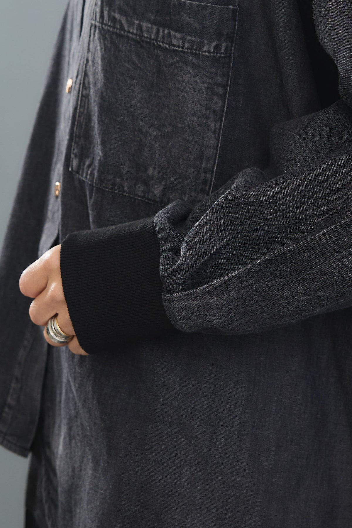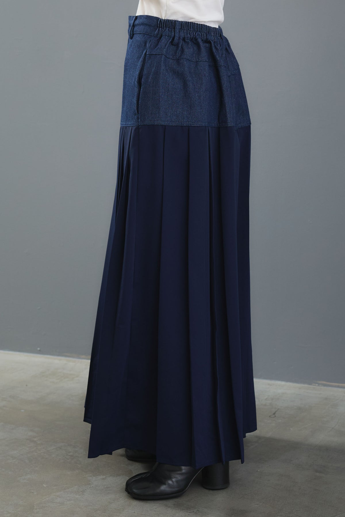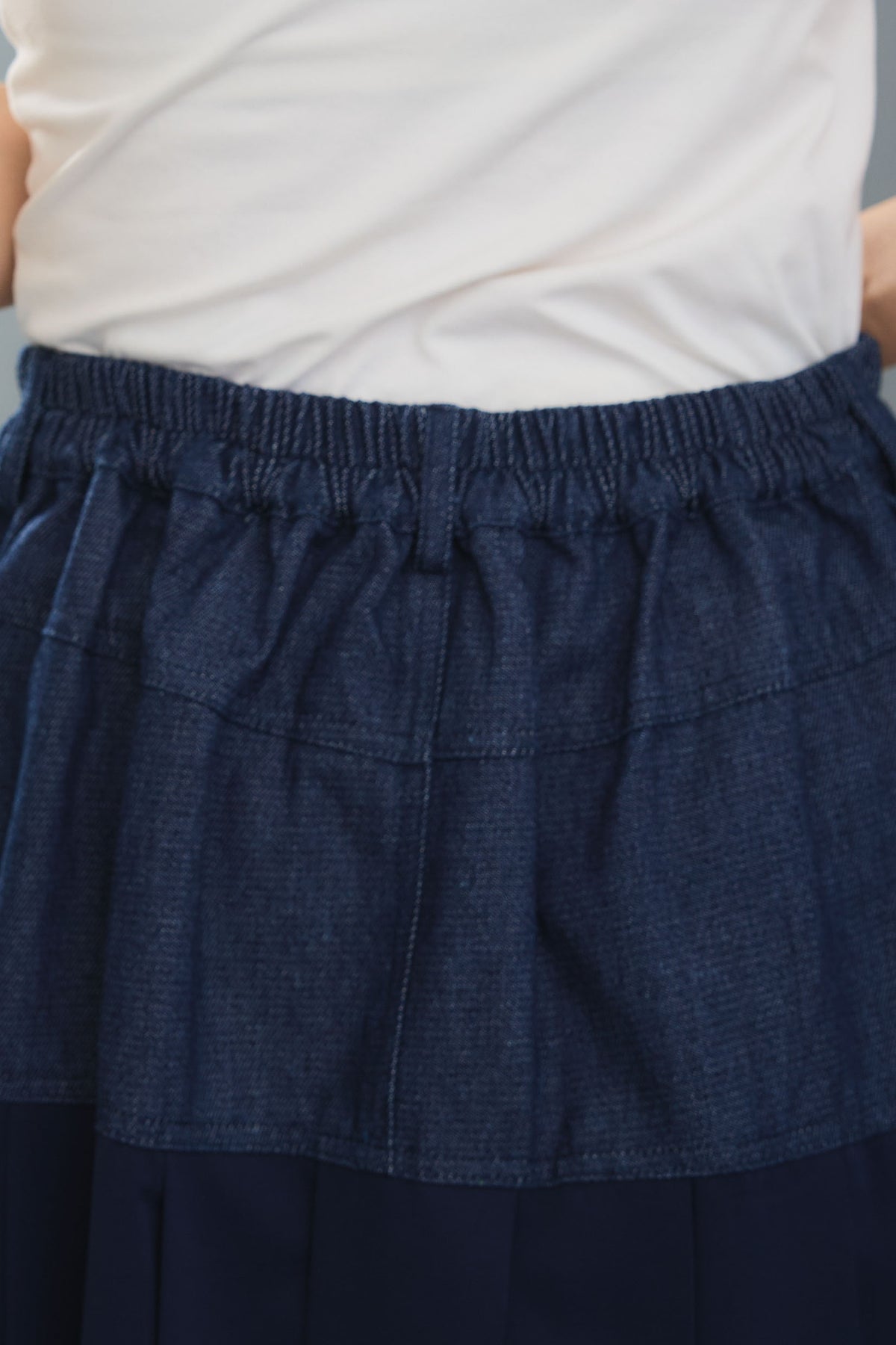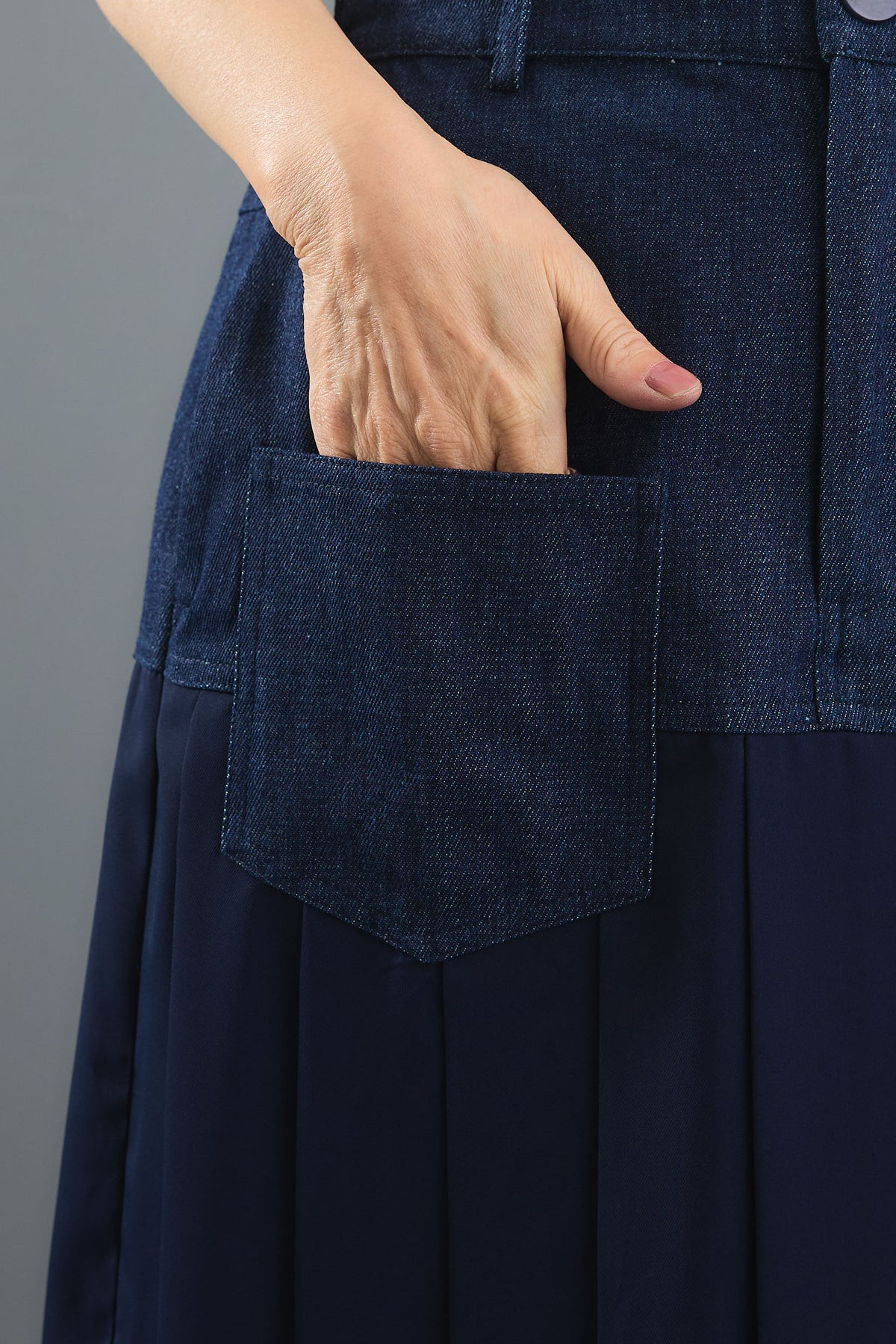 【SET】ヴィンテージアシンメトリーデニムシャツ+テディボアミディコート+デニムドッキングプリーツスカート(3set)