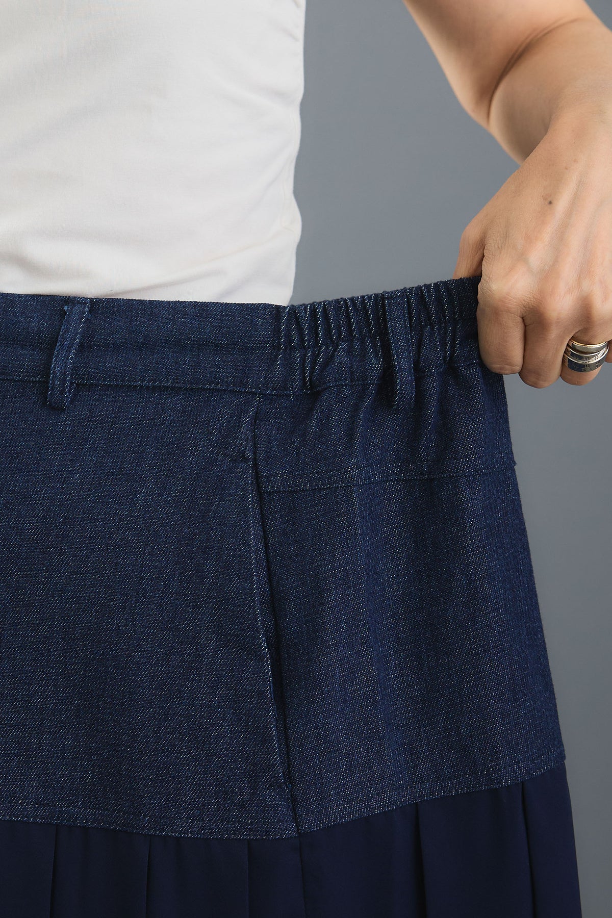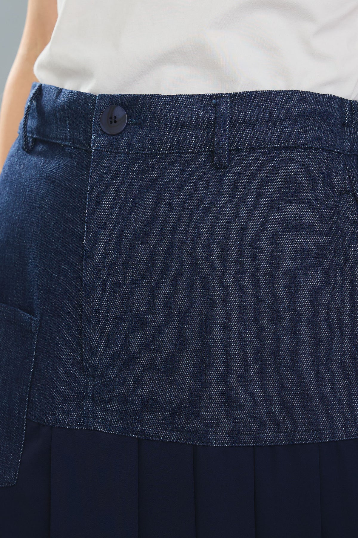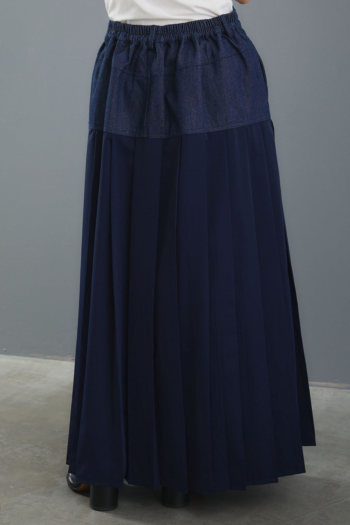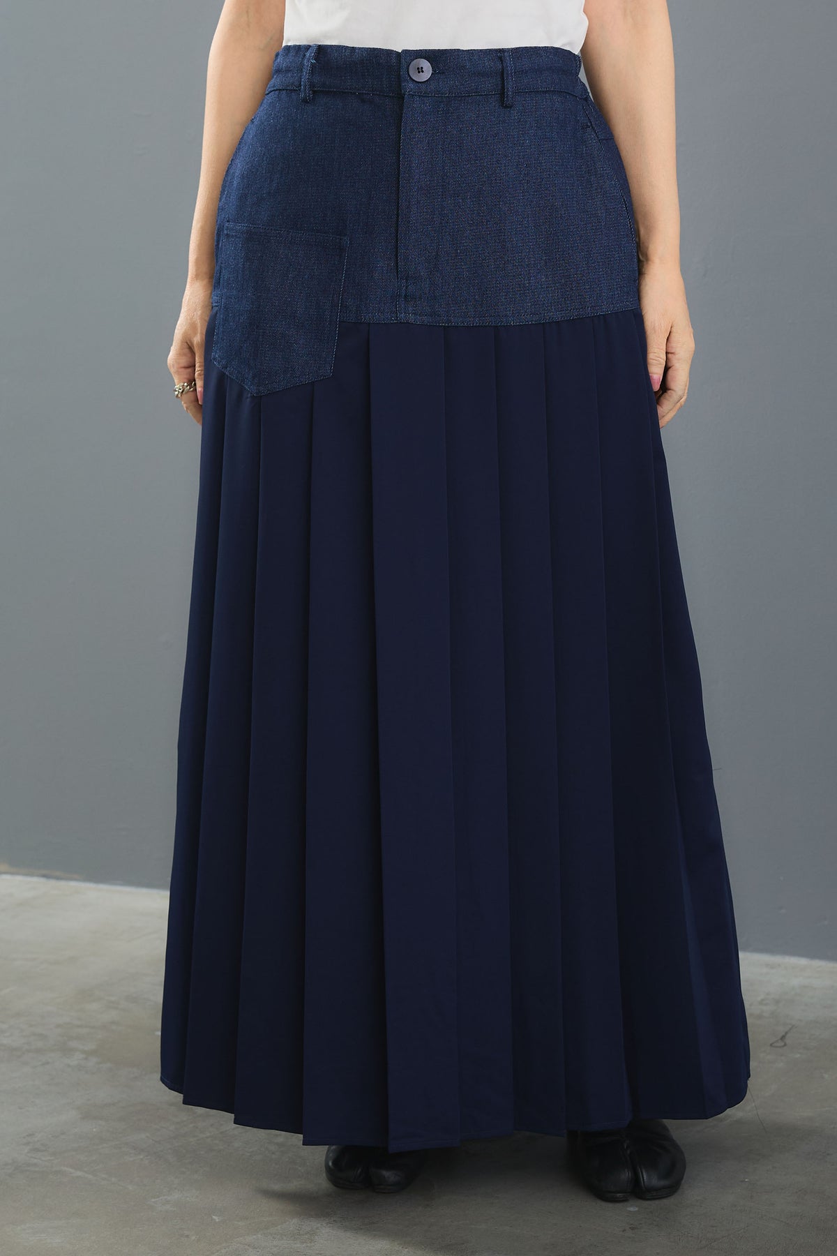 【SET】ヴィンテージアシンメトリーデニムシャツ+テディボアミディコート+デニムドッキングプリーツスカート(3set)