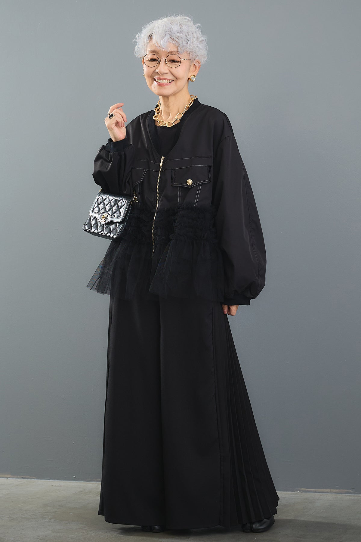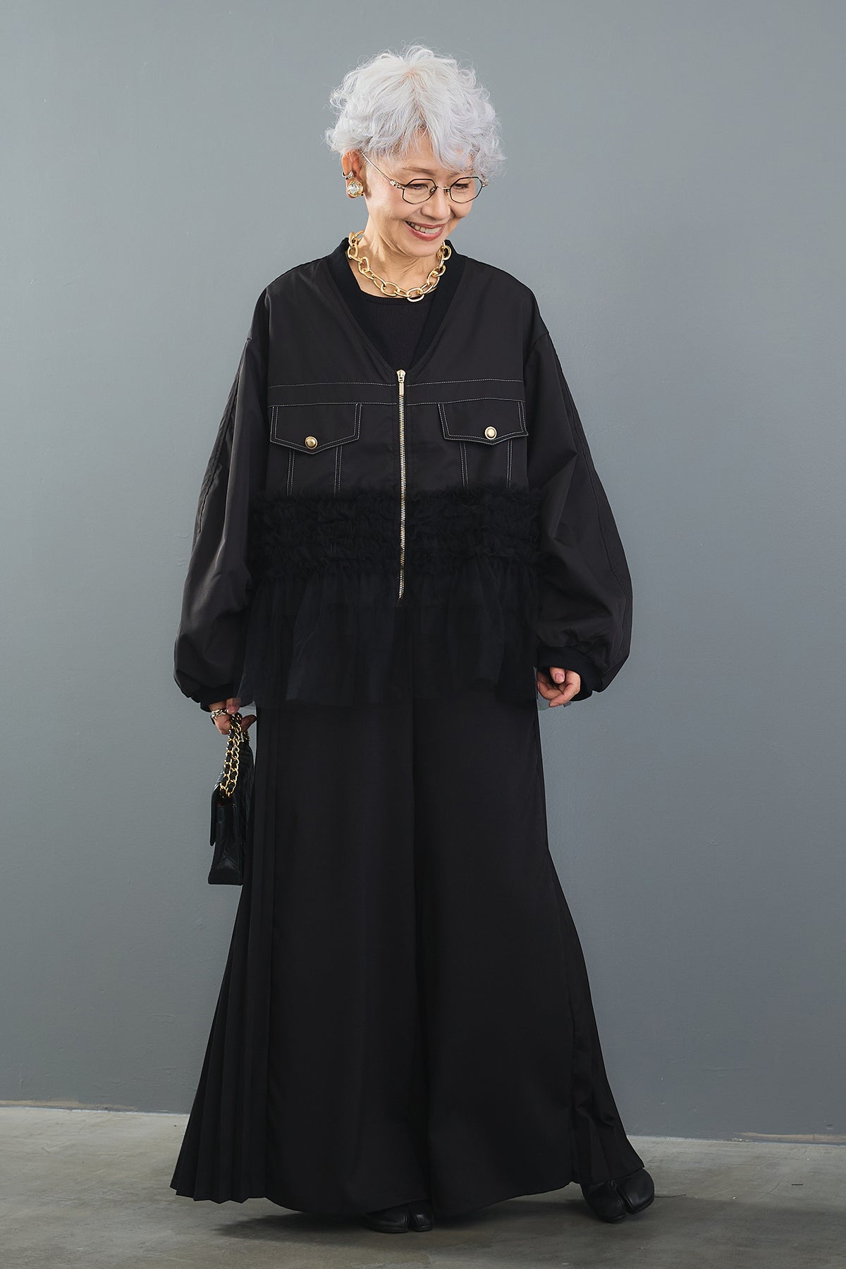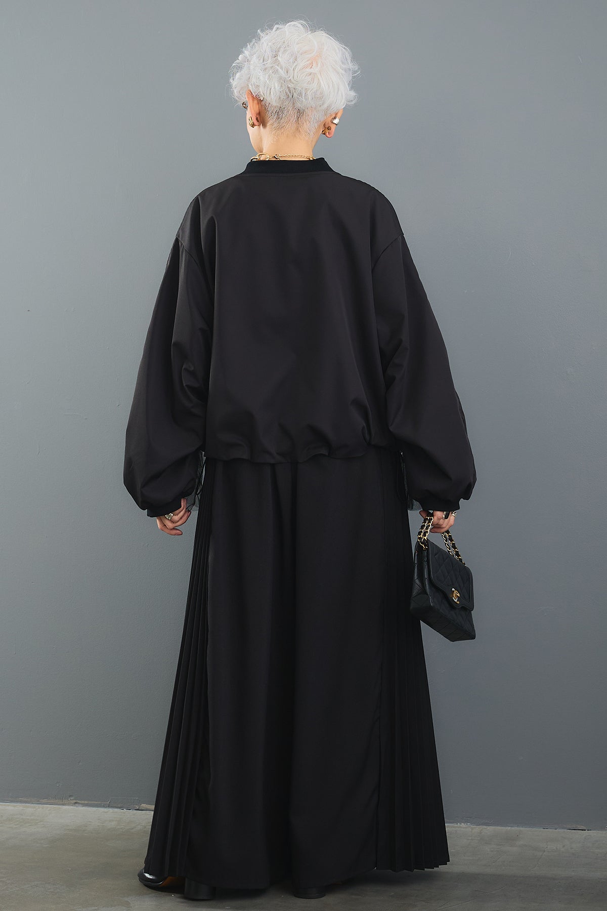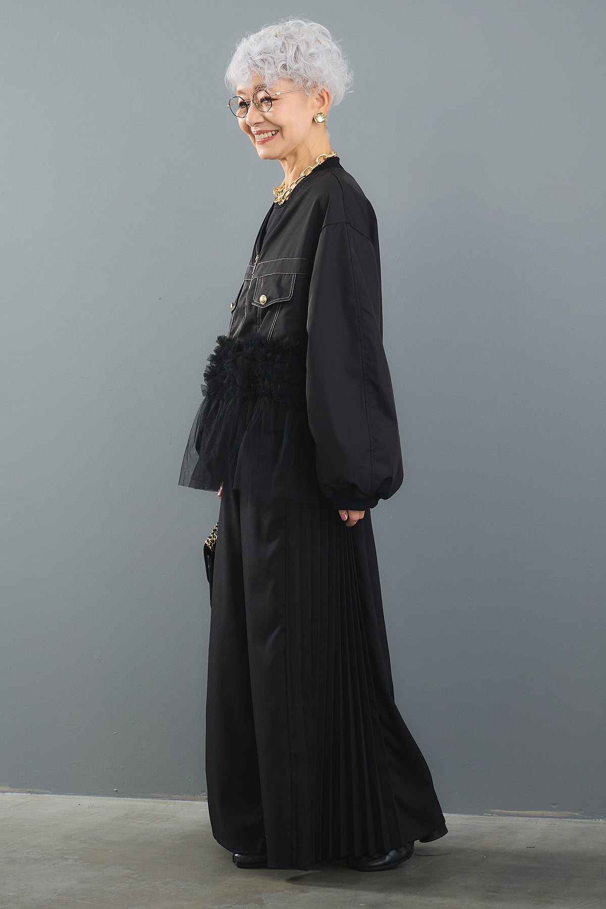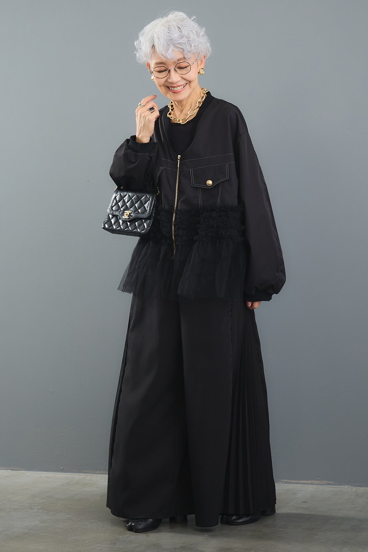 【SET】チュールドッキングブルゾン+サイドプリーツワイドパンツ(2set)