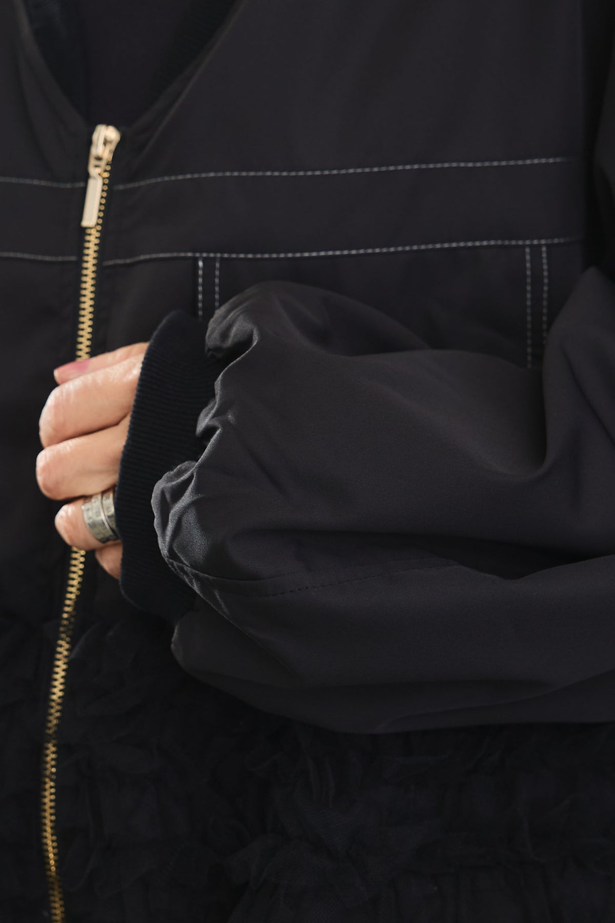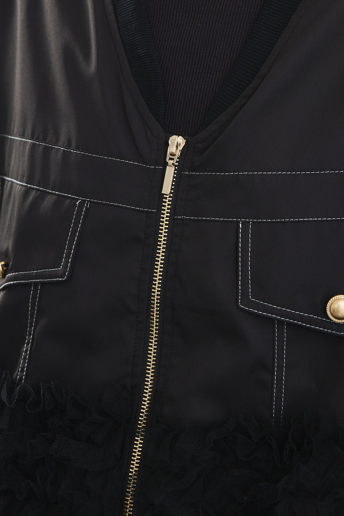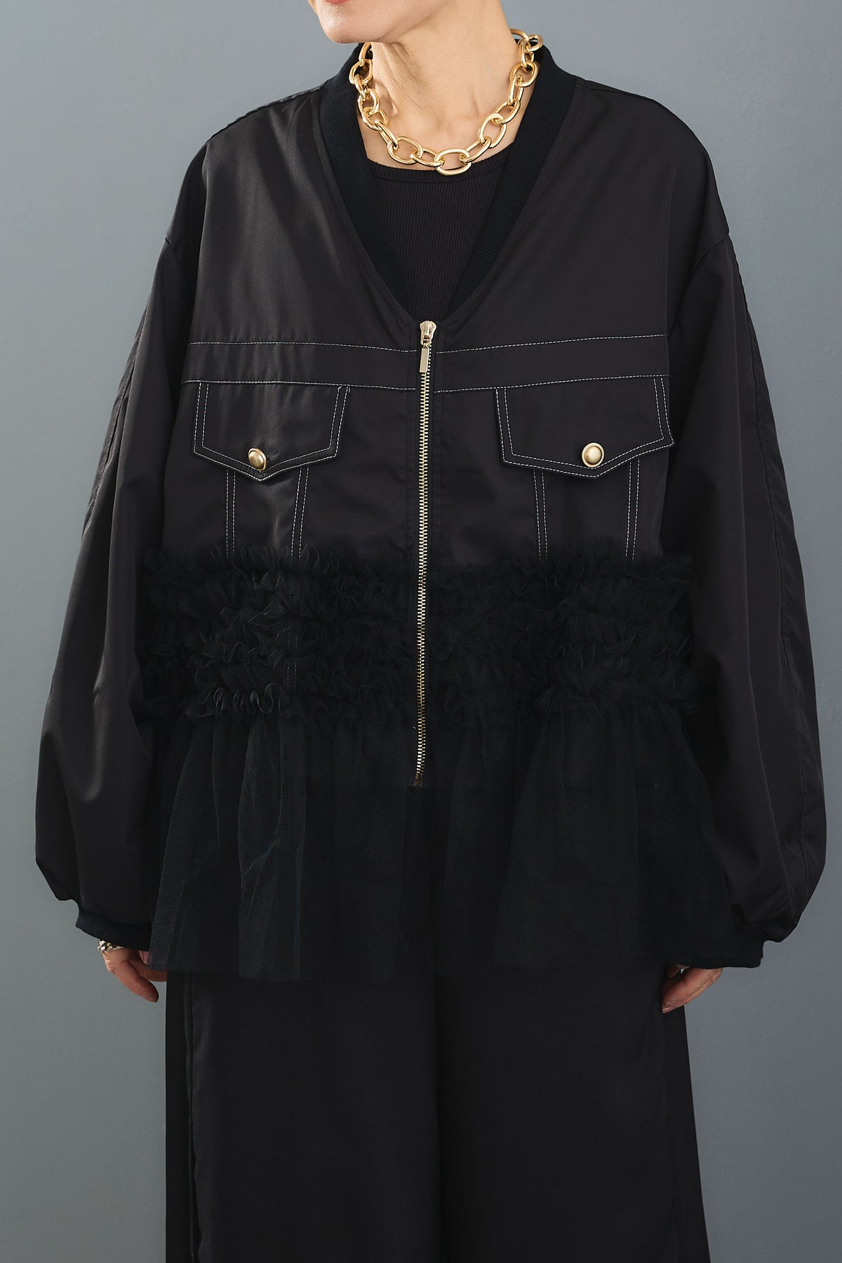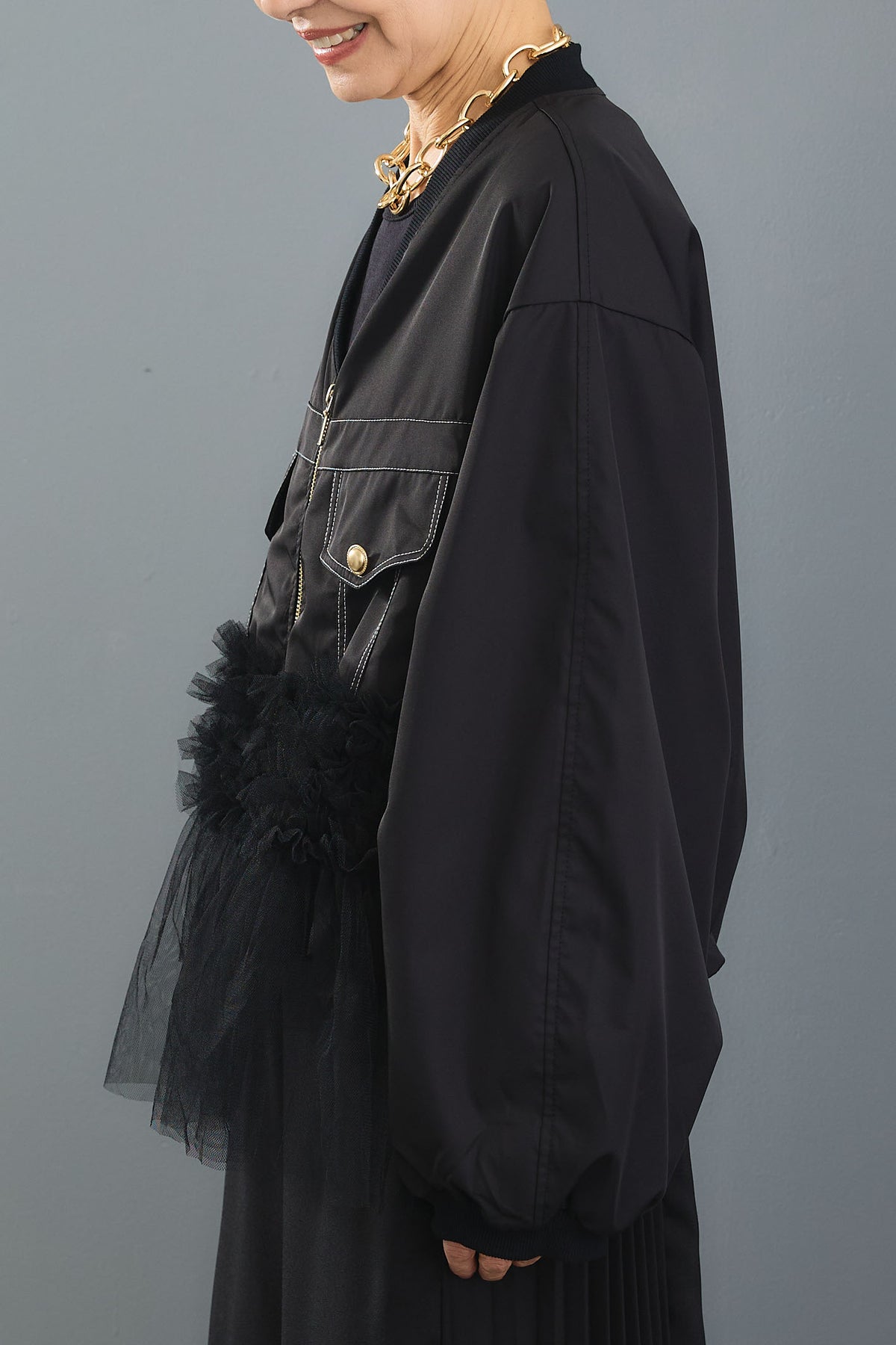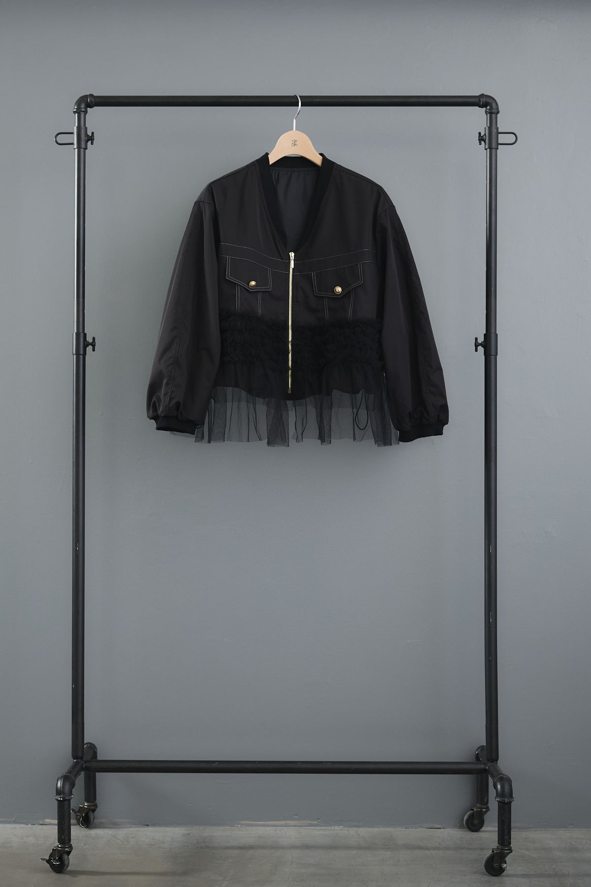 【SET】チュールドッキングブルゾン+サイドプリーツワイドパンツ(2set)