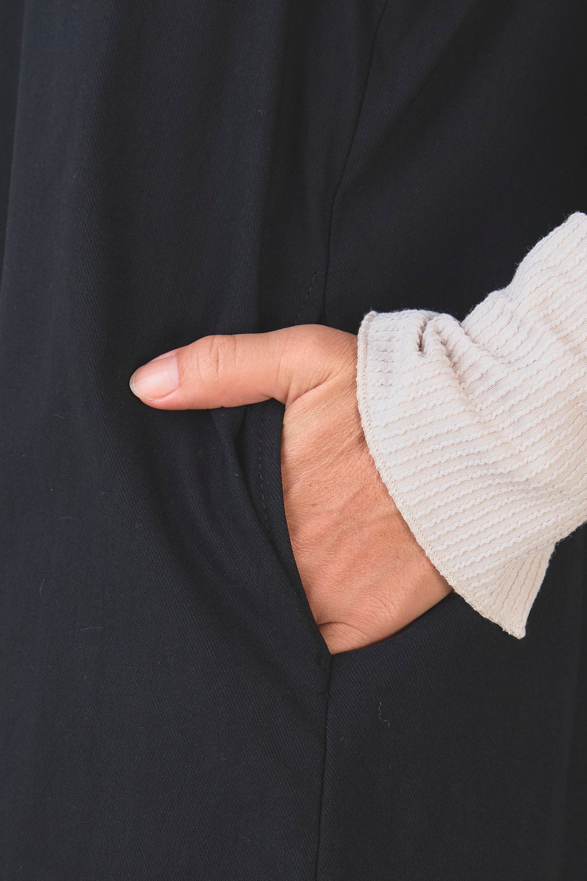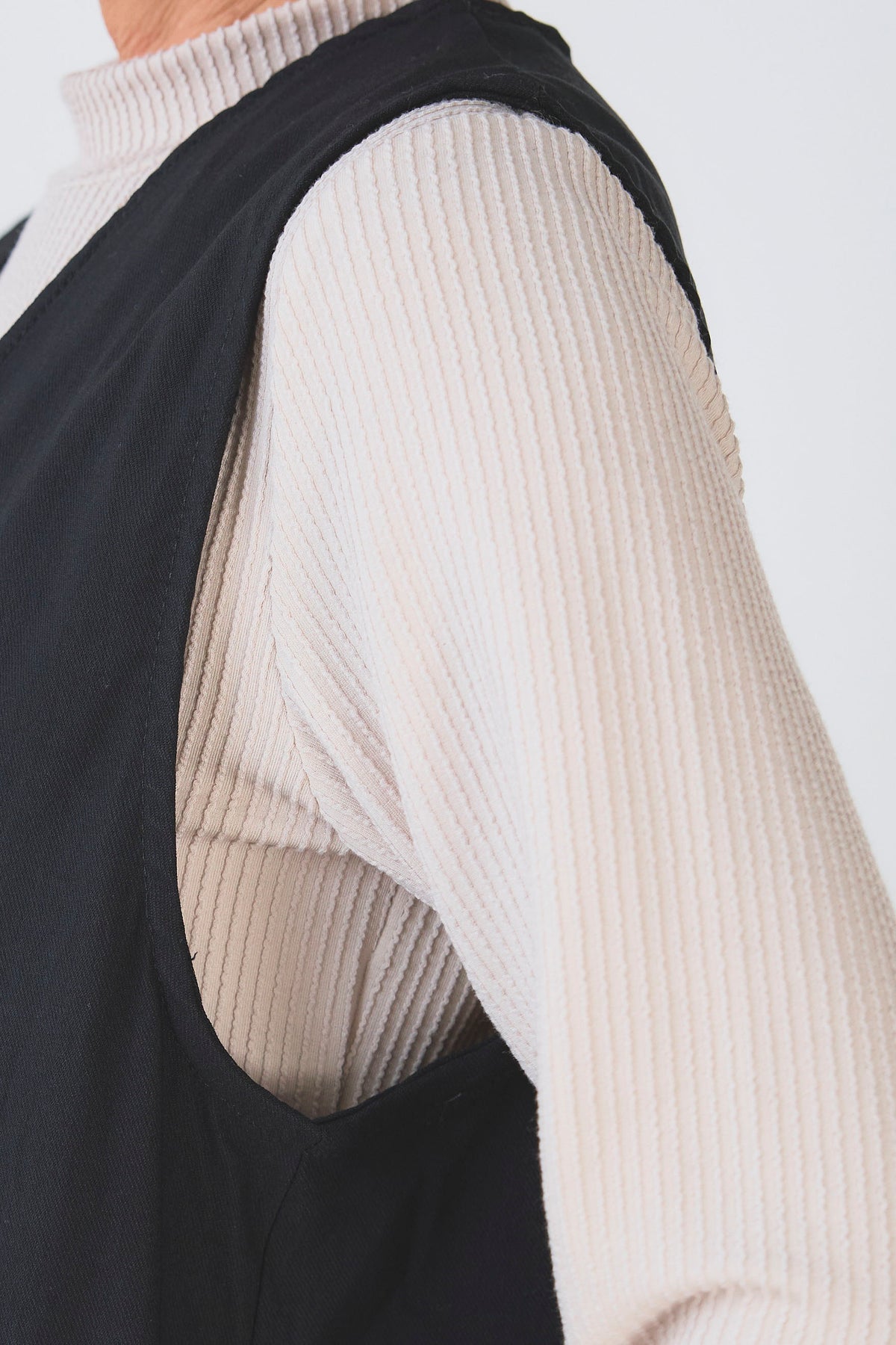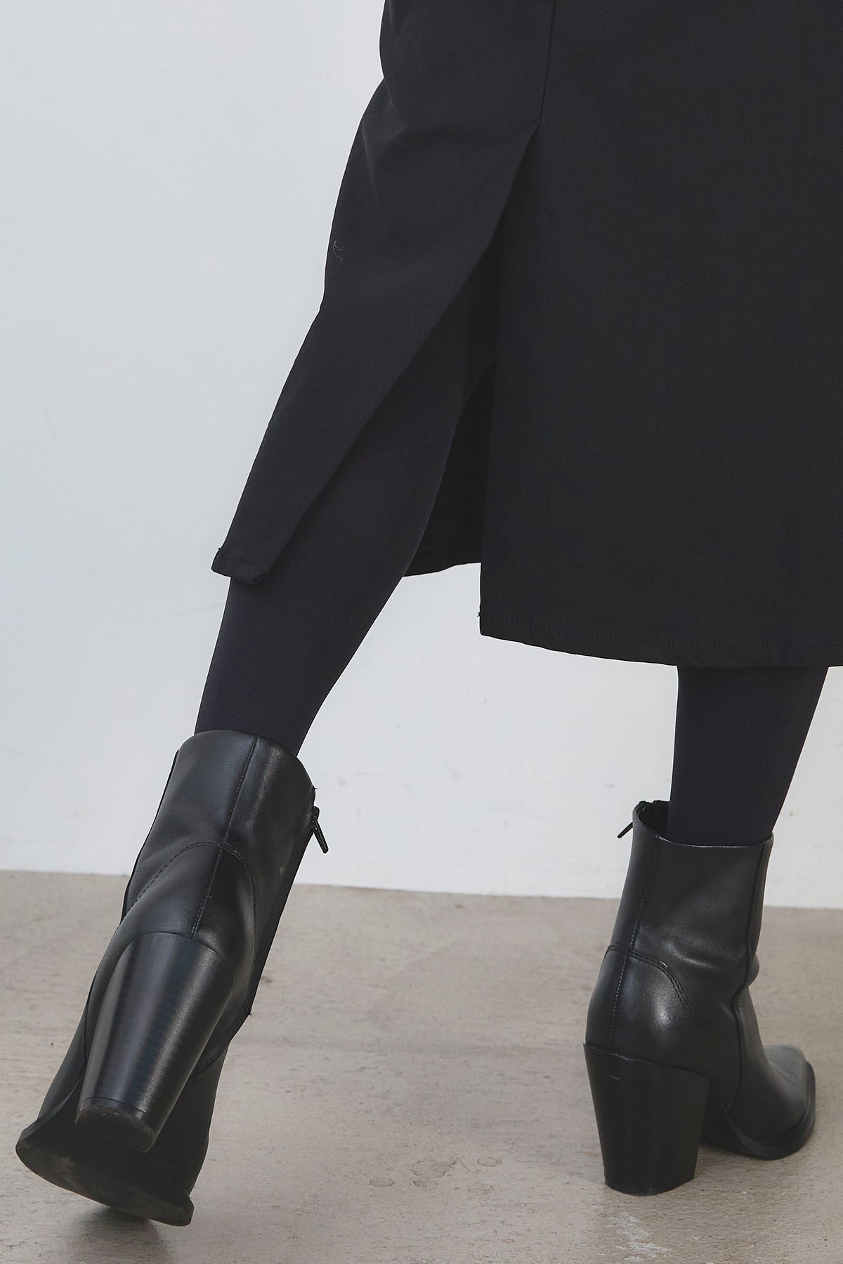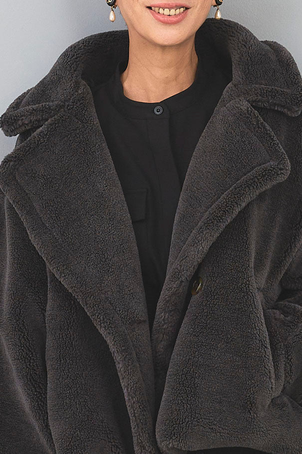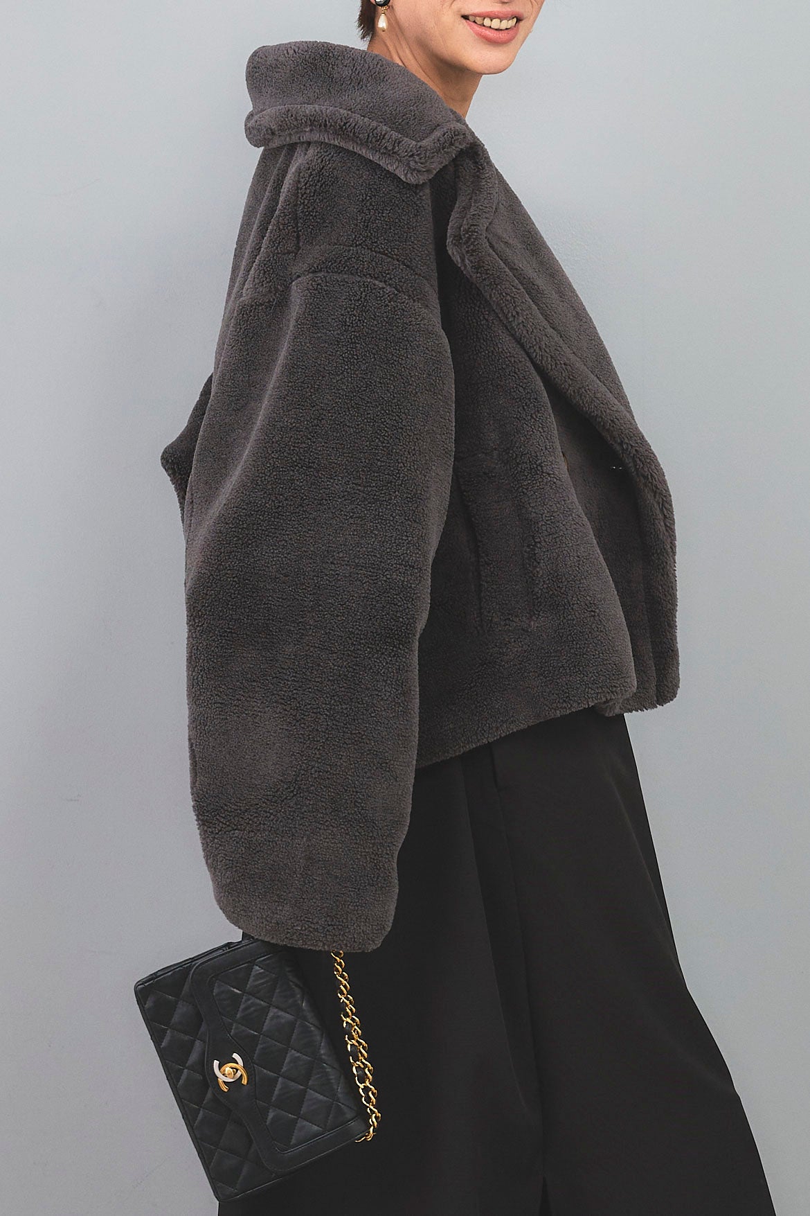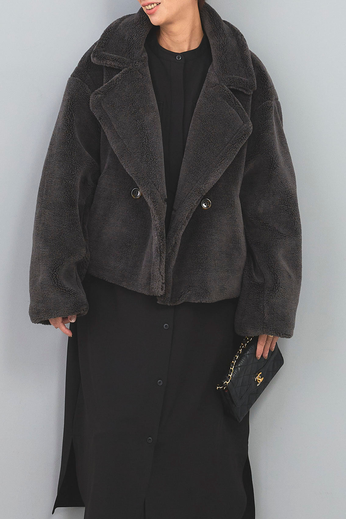 裏起毛ジャンスカとストレッチジャガードリブハイネックトップスに、テディボアショートコートを加えたコーディネートは、暖かさと洗練さを両立したスタイルです。ジャンスカのシンプルで美しいラインに、ハイネックトップスが程よいアクセントを添えています。さらに、テディボアショートコートがボリューム感とトレンド感をプラスし、全体を柔らかでリッチな印象に仕上げています。足元にはブラックのショートブーツを合わせ、季節感とモード感を演出。コンパクトなバッグがスタイリングのアクセントとなり、洗練された大人のカジュアルを引き立てます。