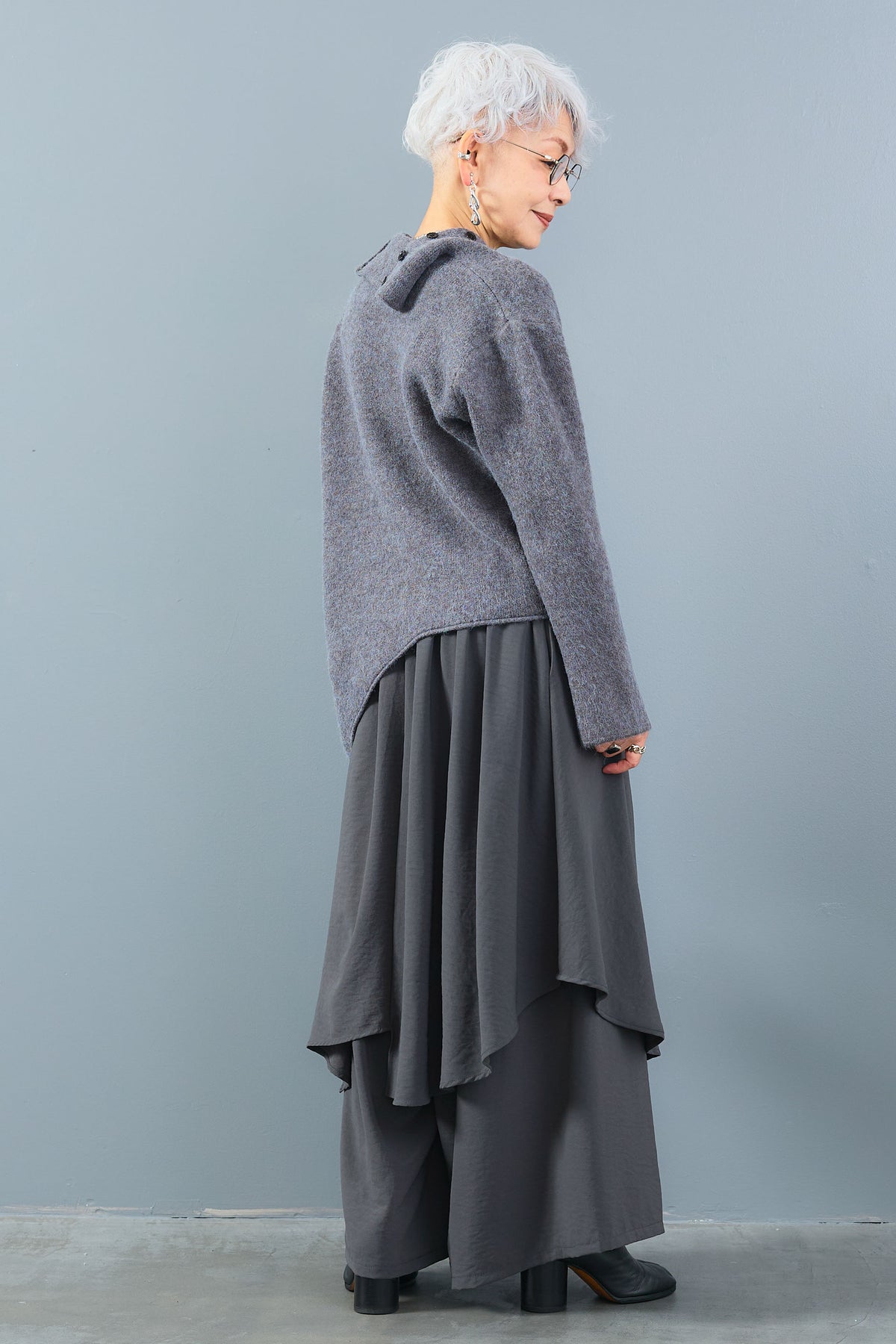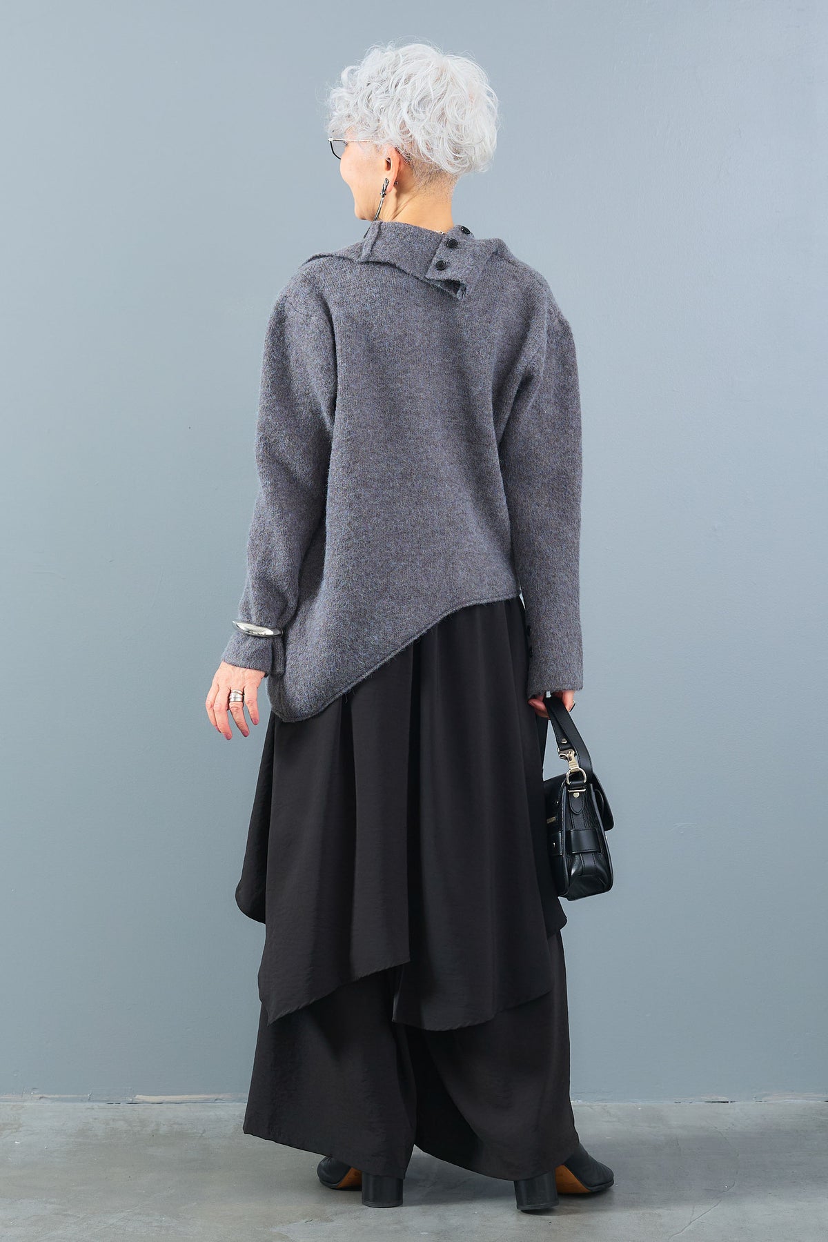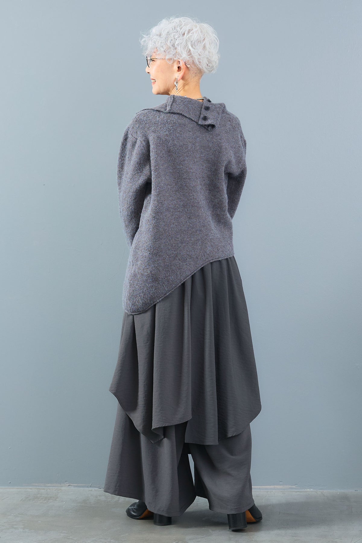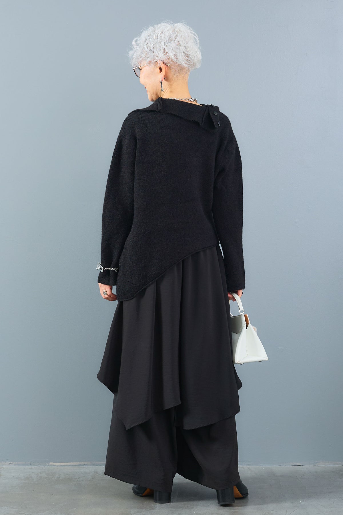 【SET】アシメハイネックボタンニット+アシメレイヤードワイドパンツ(2set)
