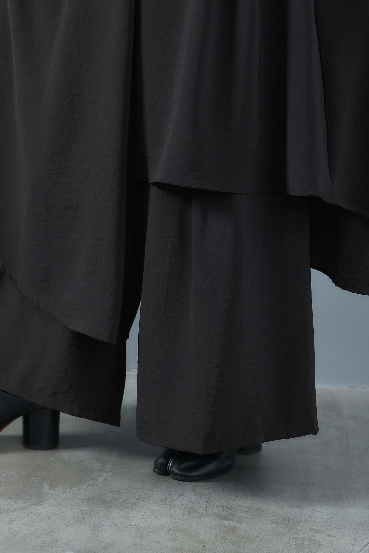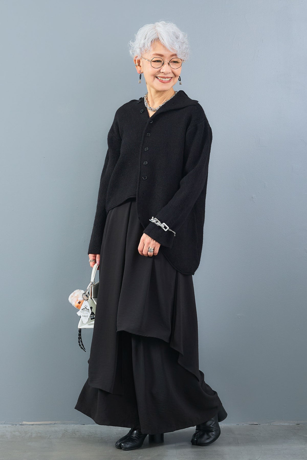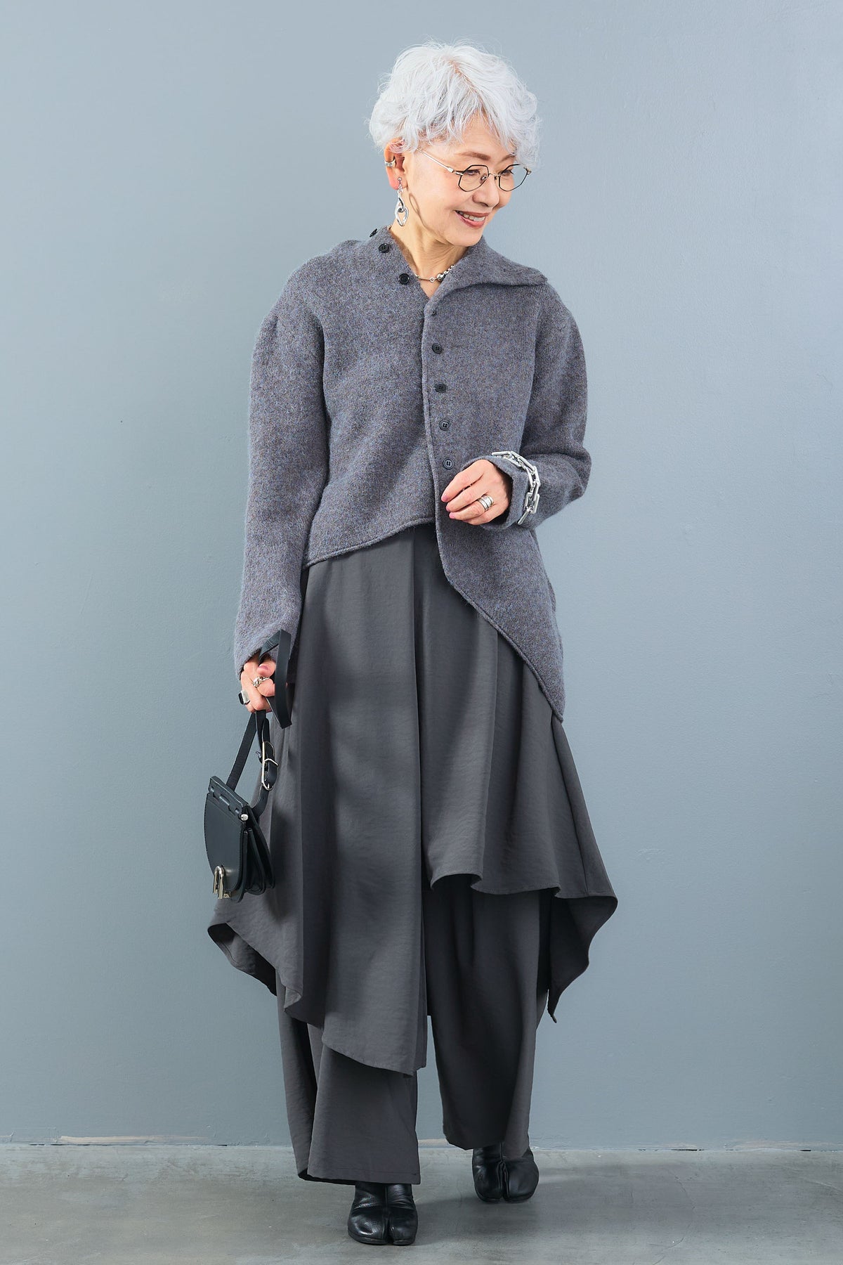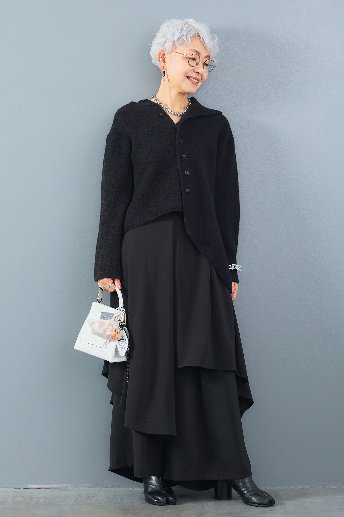【SET】アシメハイネックボタンニット+アシメレイヤードワイドパンツ(2set)
