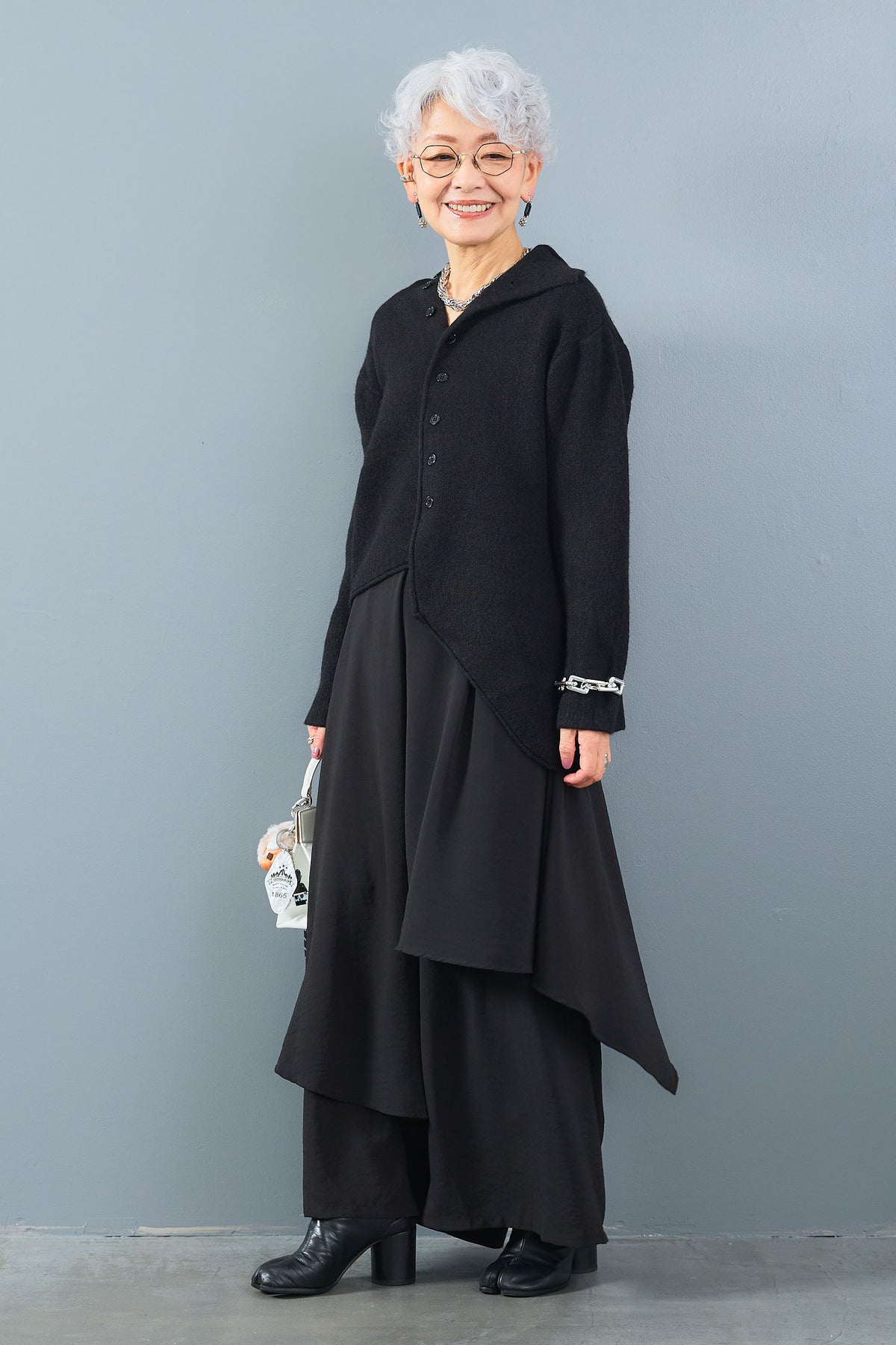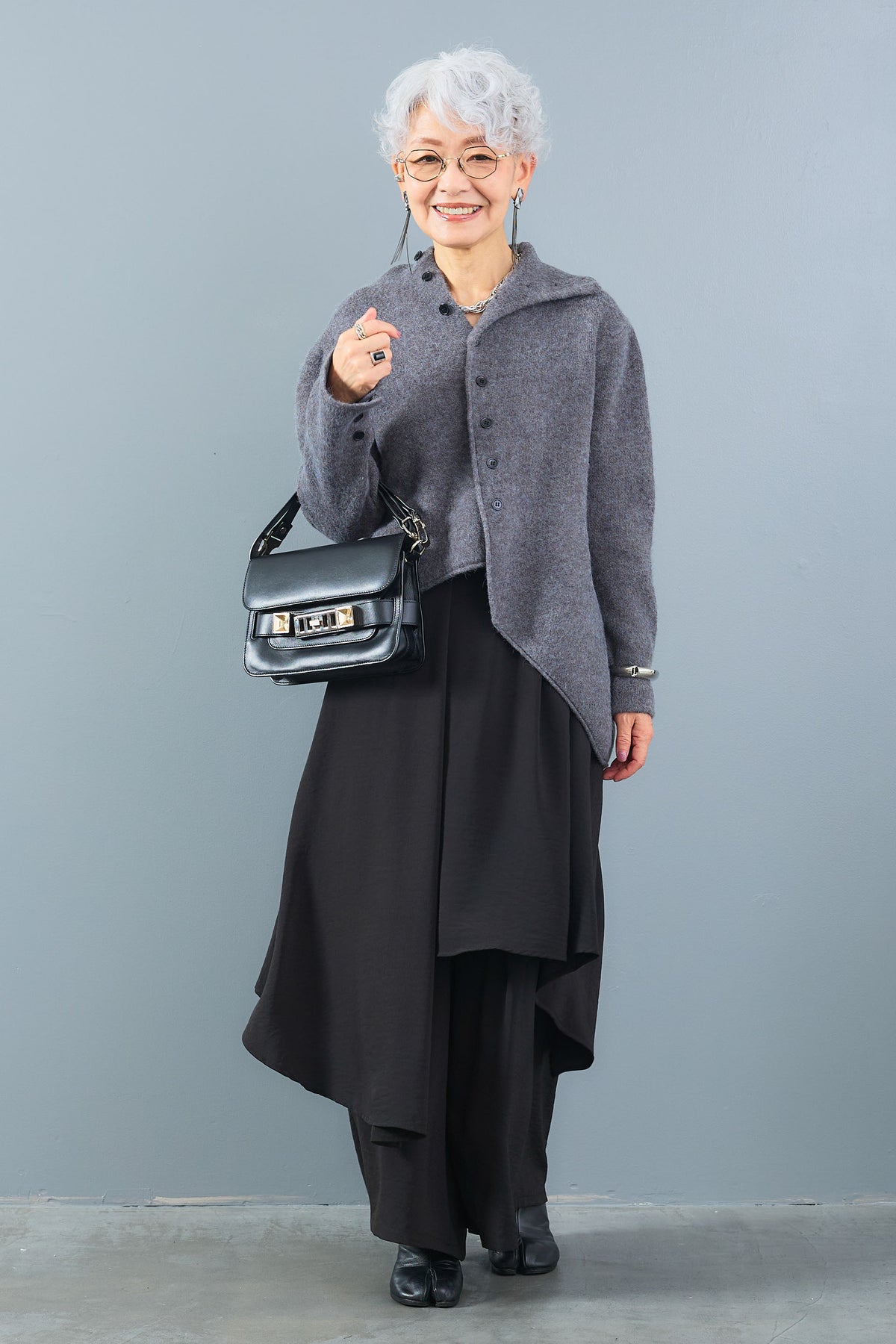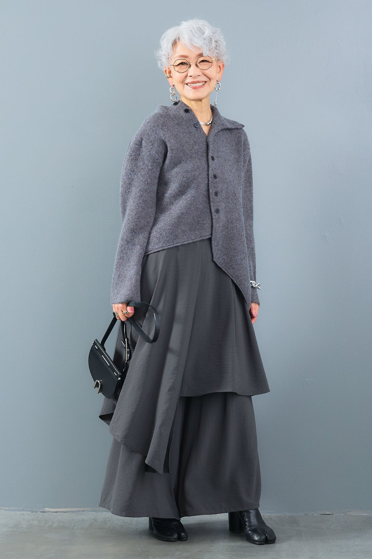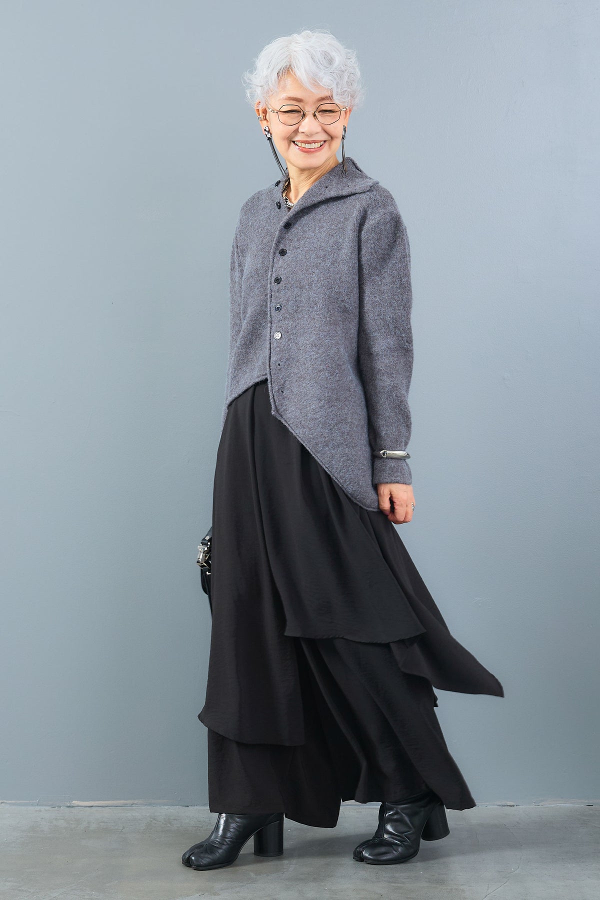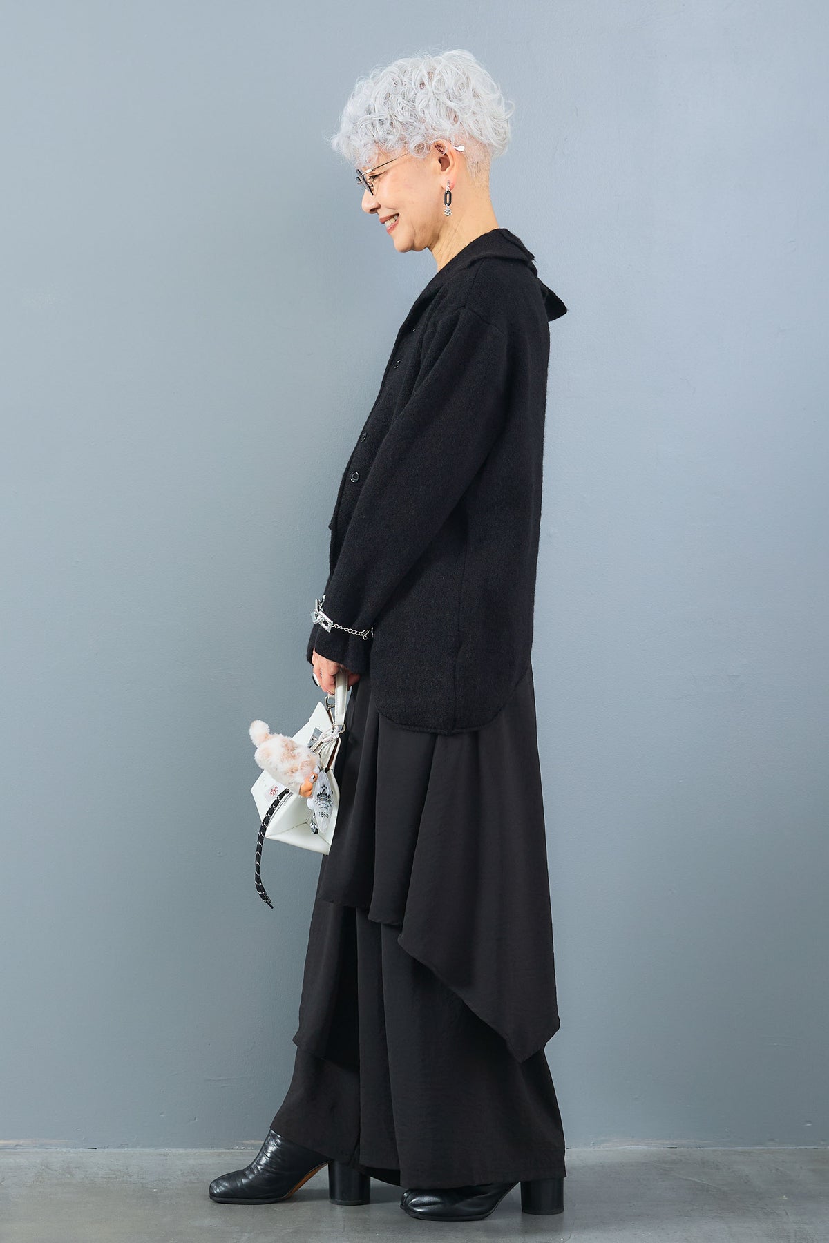 【SET】アシメハイネックボタンニット+アシメレイヤードワイドパンツ(2set)