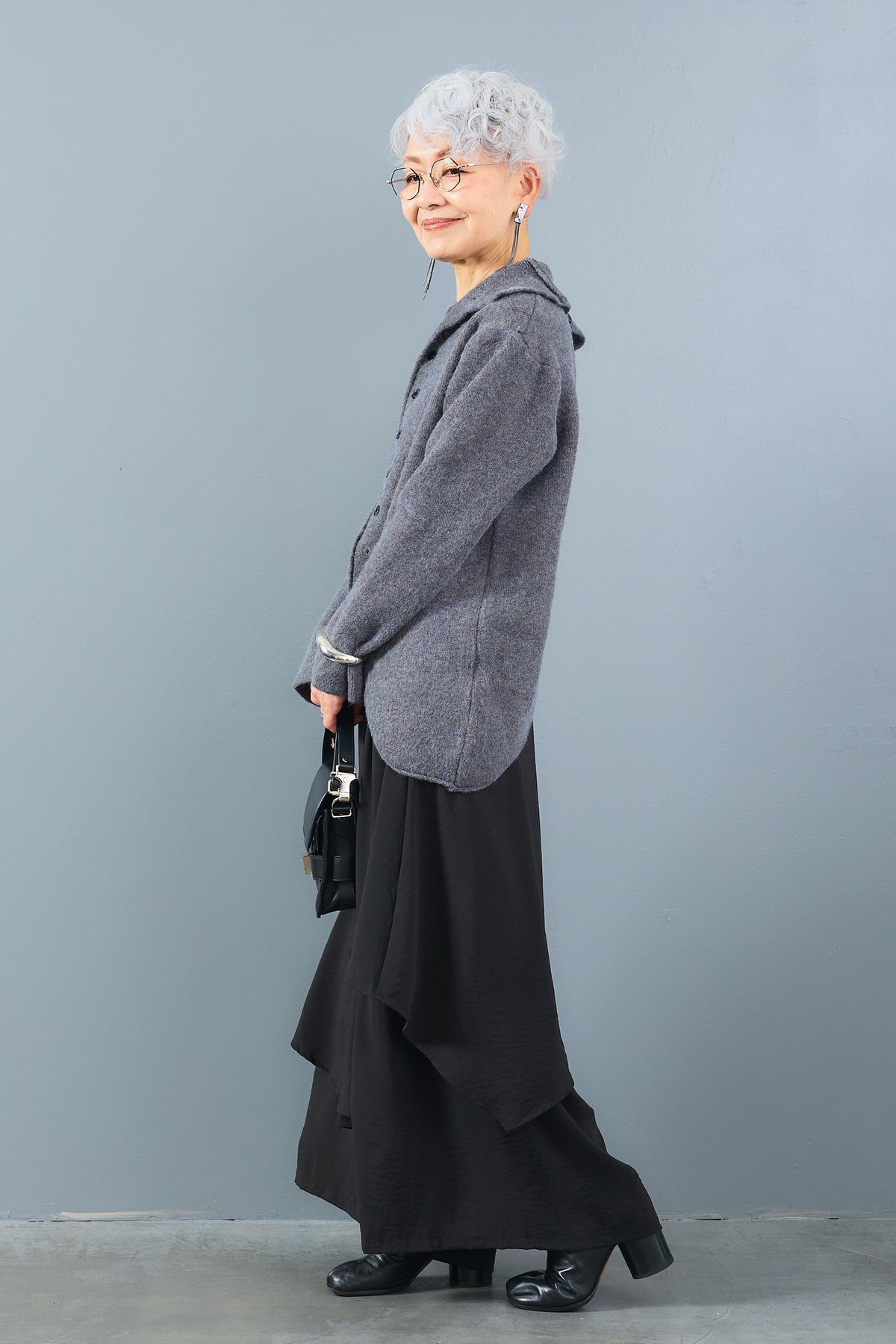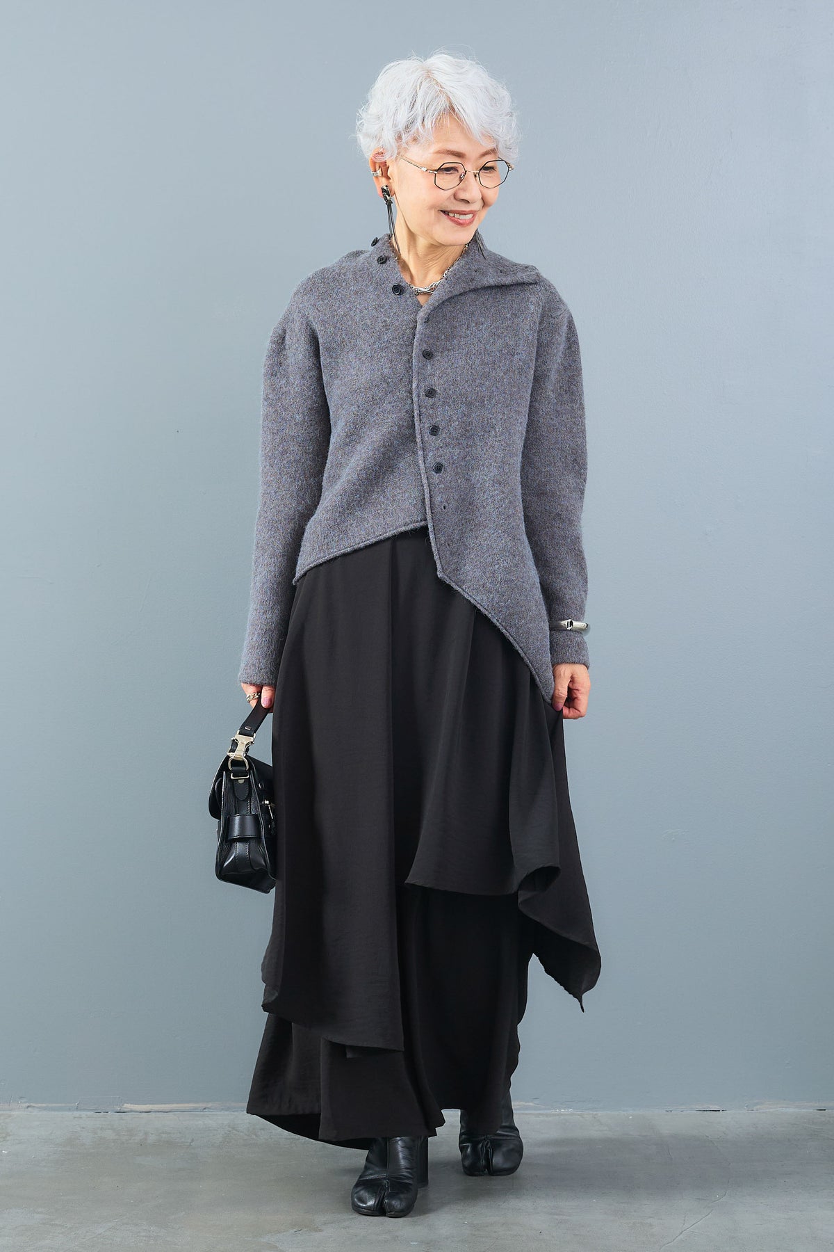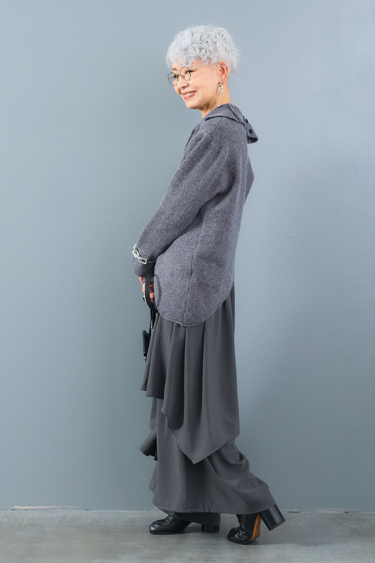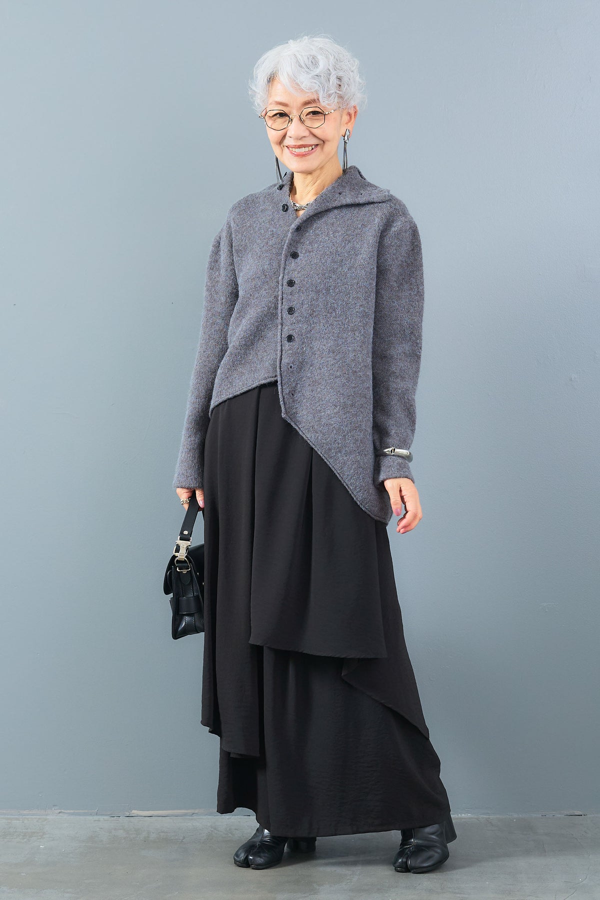 【SET】アシメハイネックボタンニット+アシメレイヤードワイドパンツ(2set)