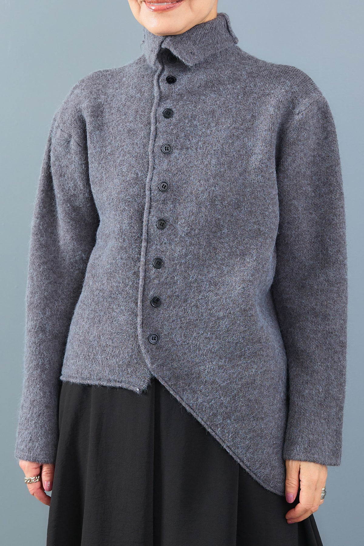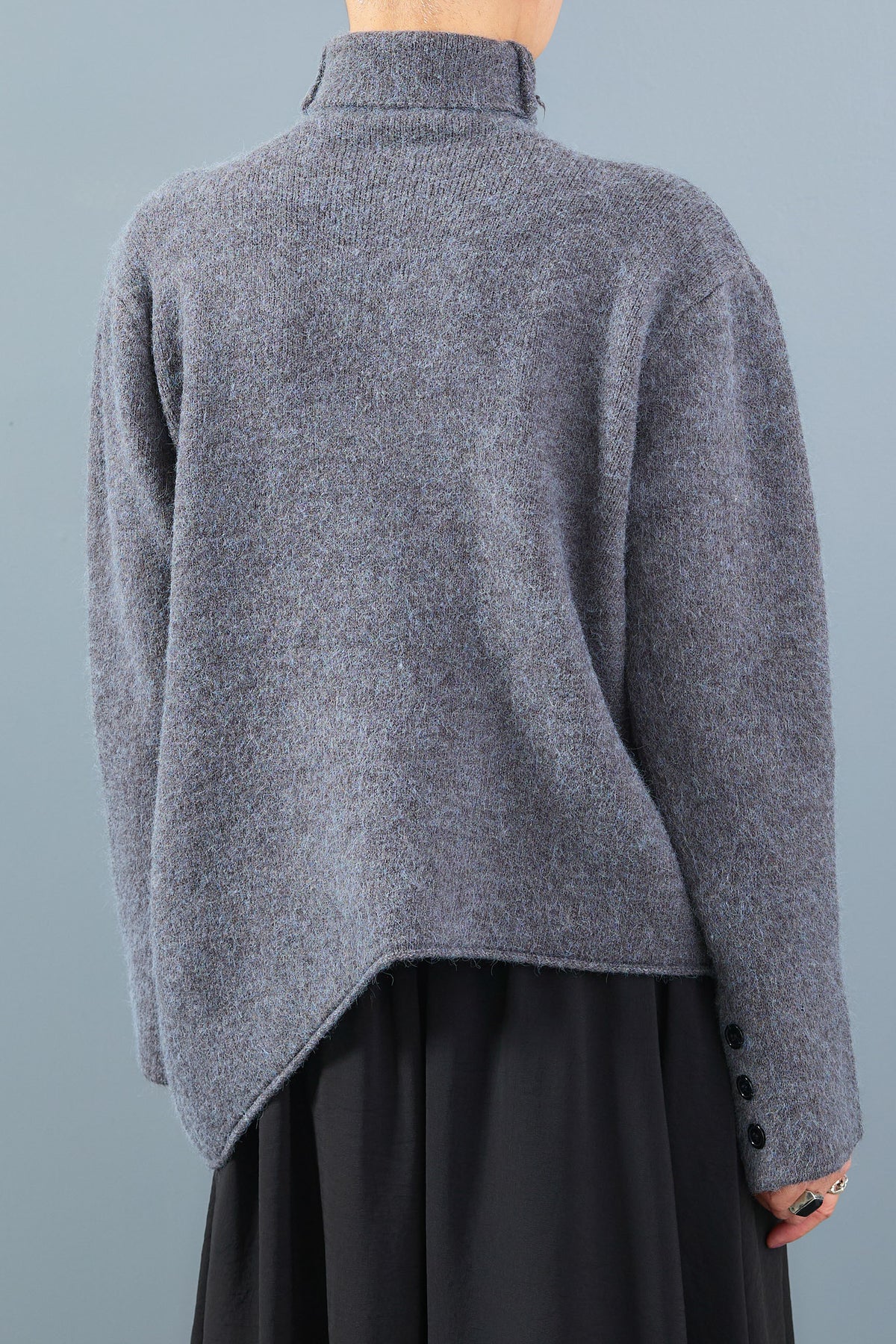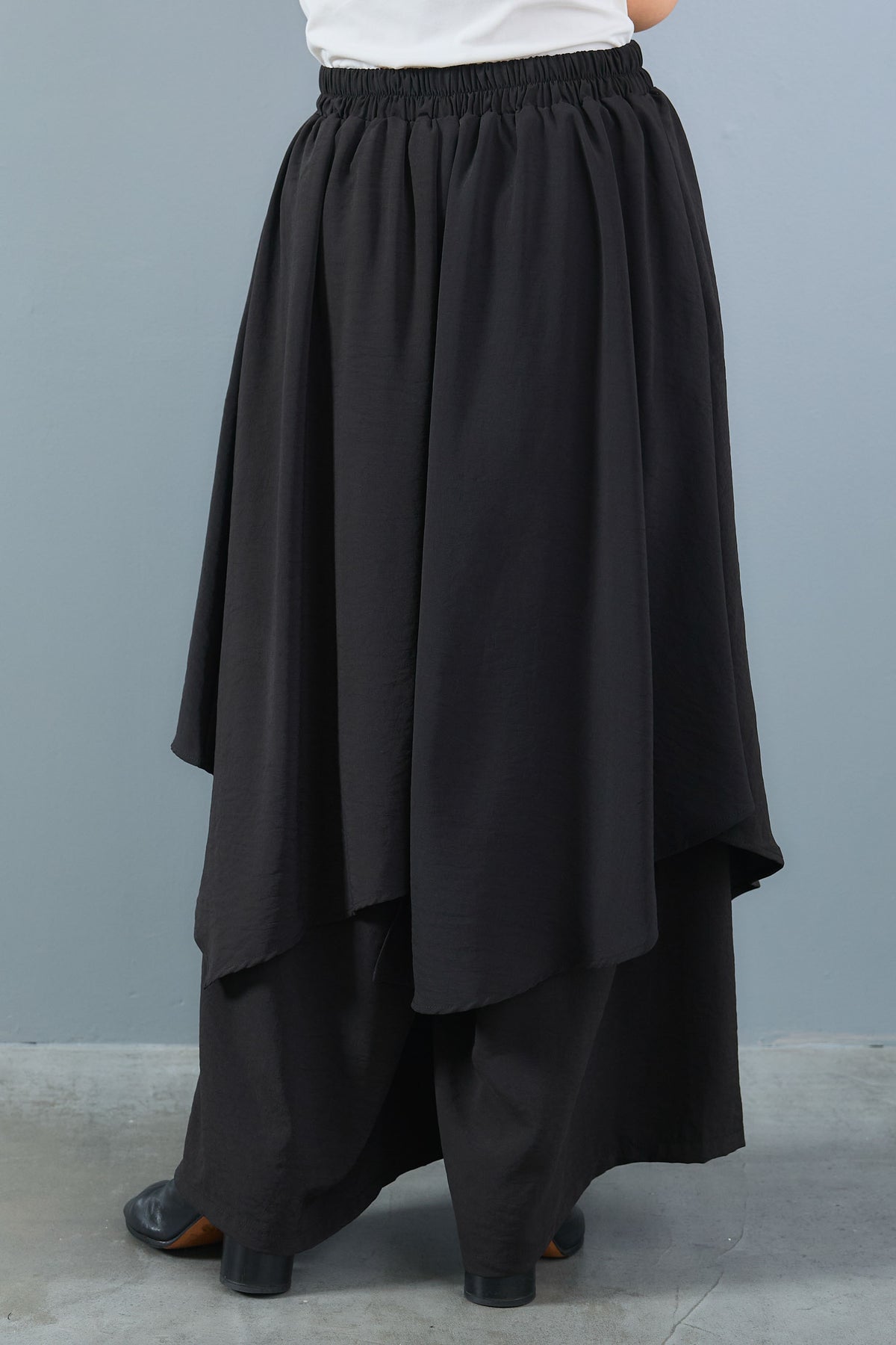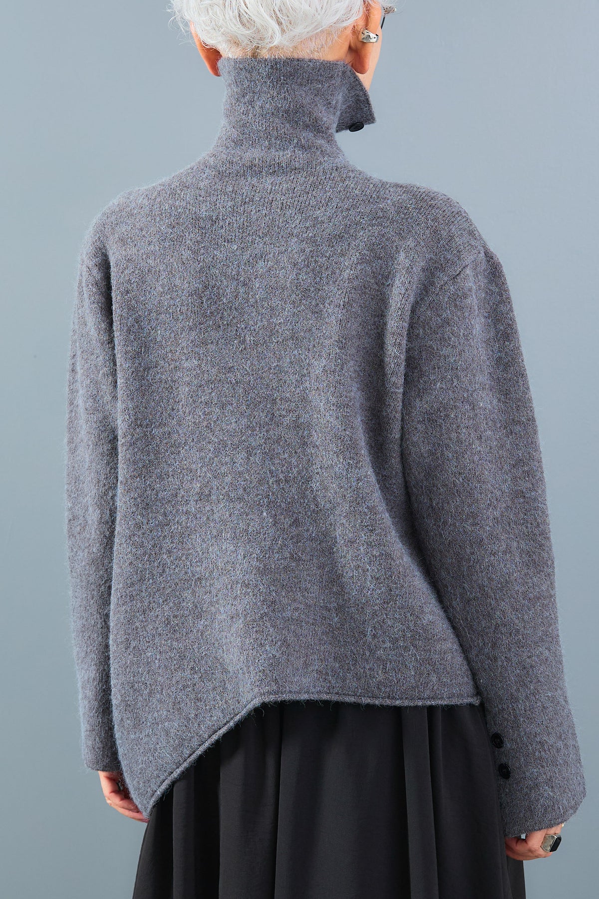 【SET】アシメハイネックボタンニット+アシメレイヤードワイドパンツ(2set)