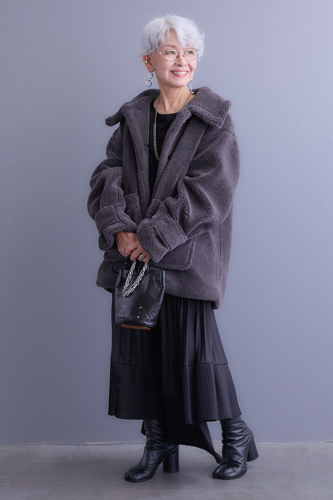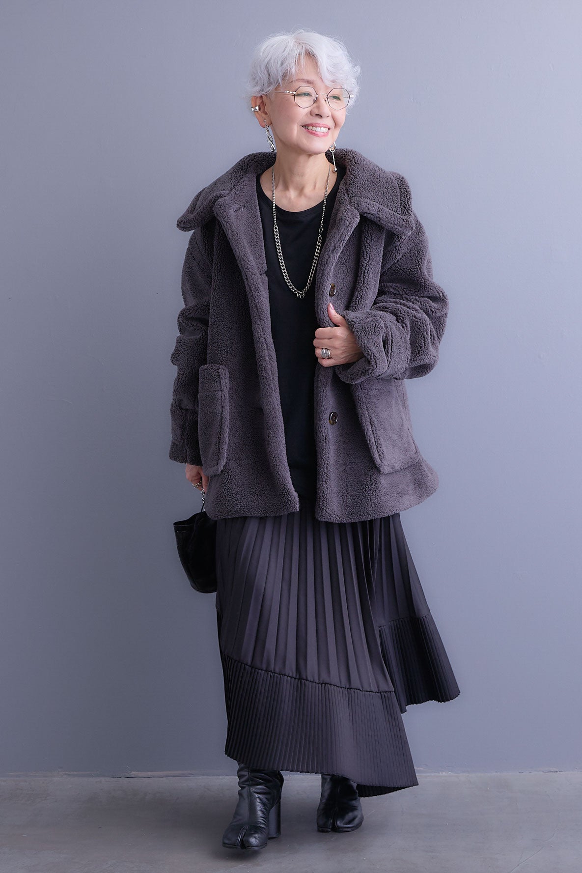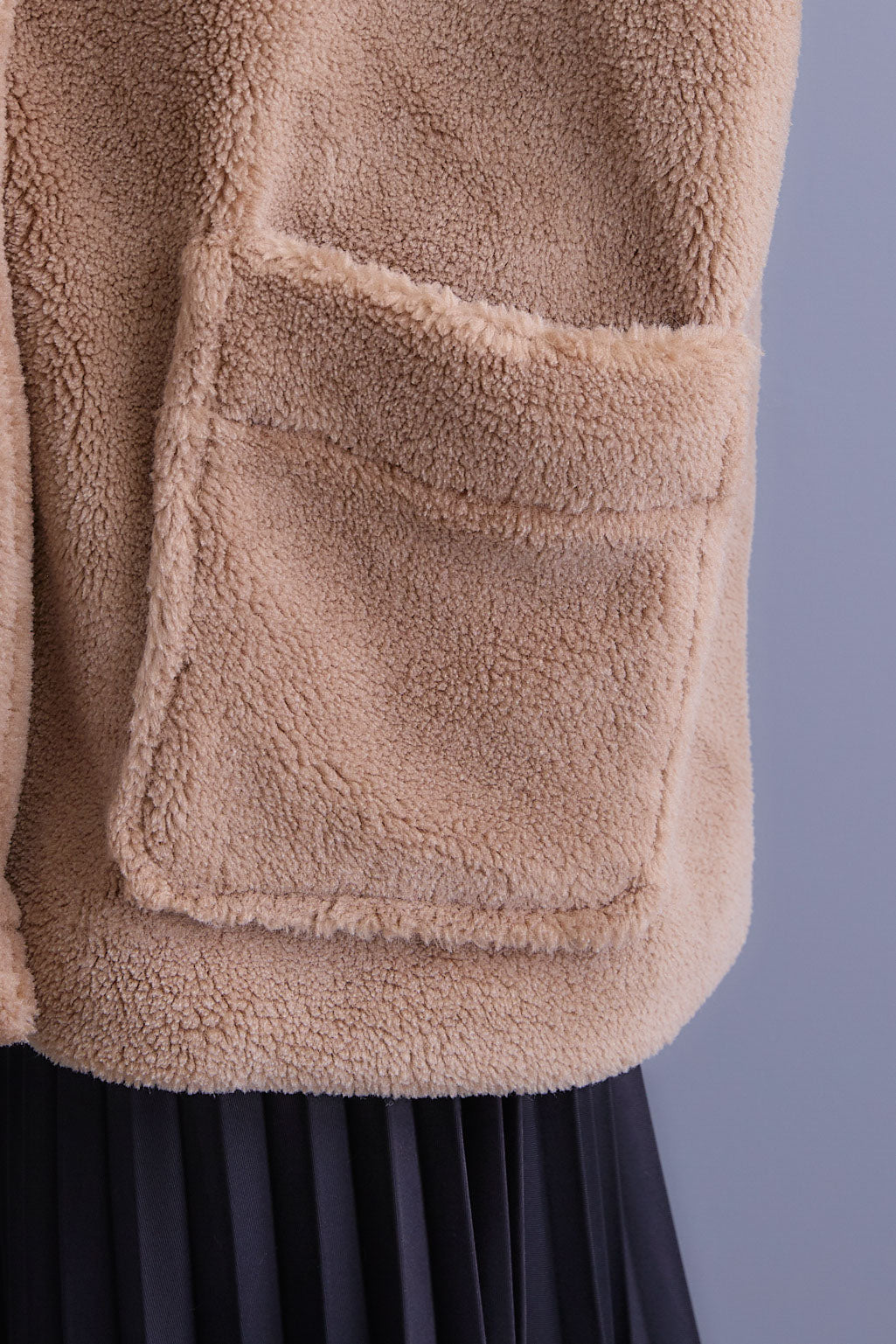 【SET】テディボアフラットカラーコート+アシンメトリープリーツスカート(2set)