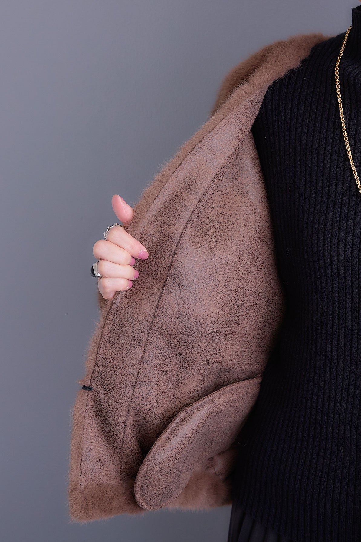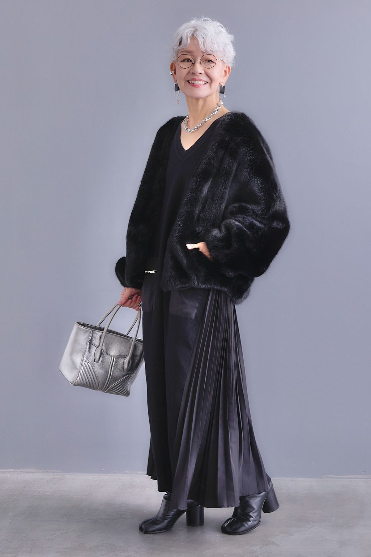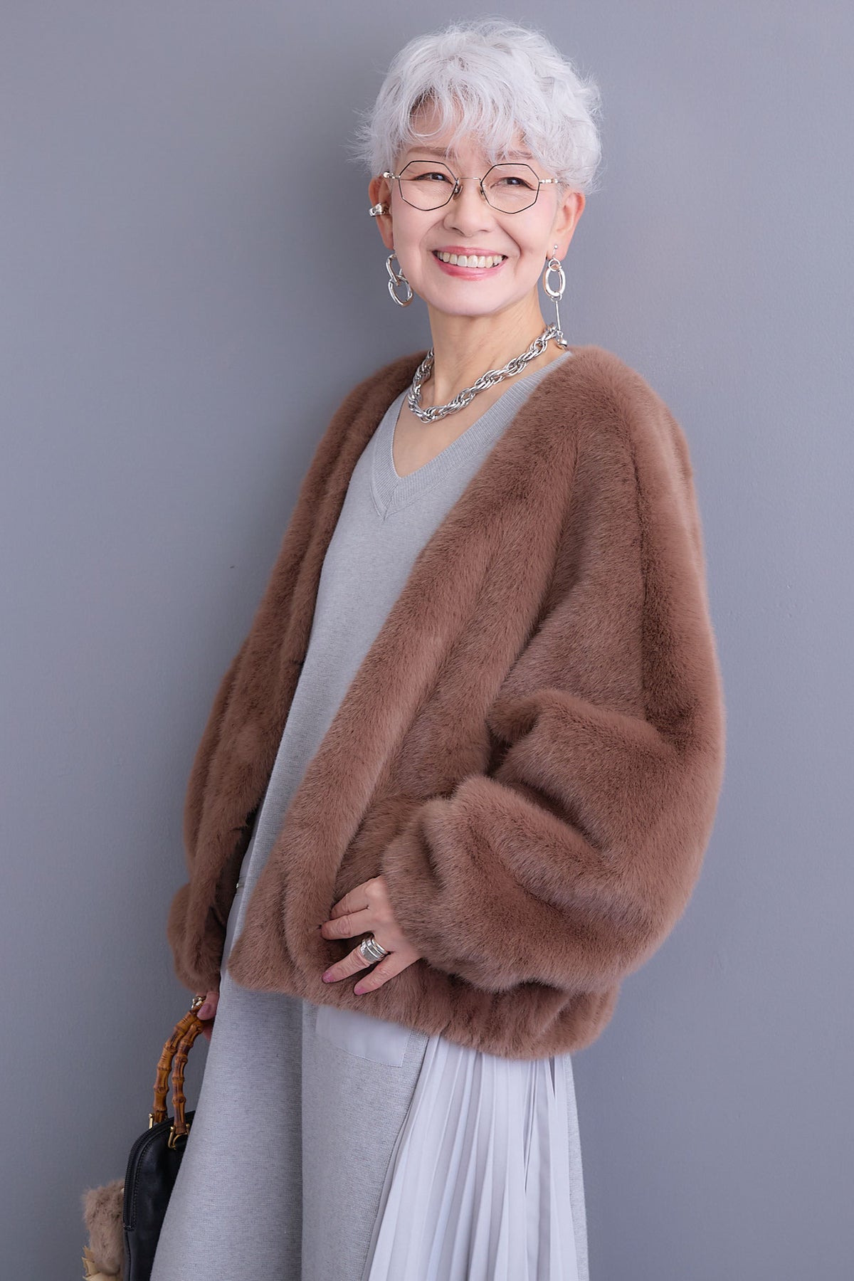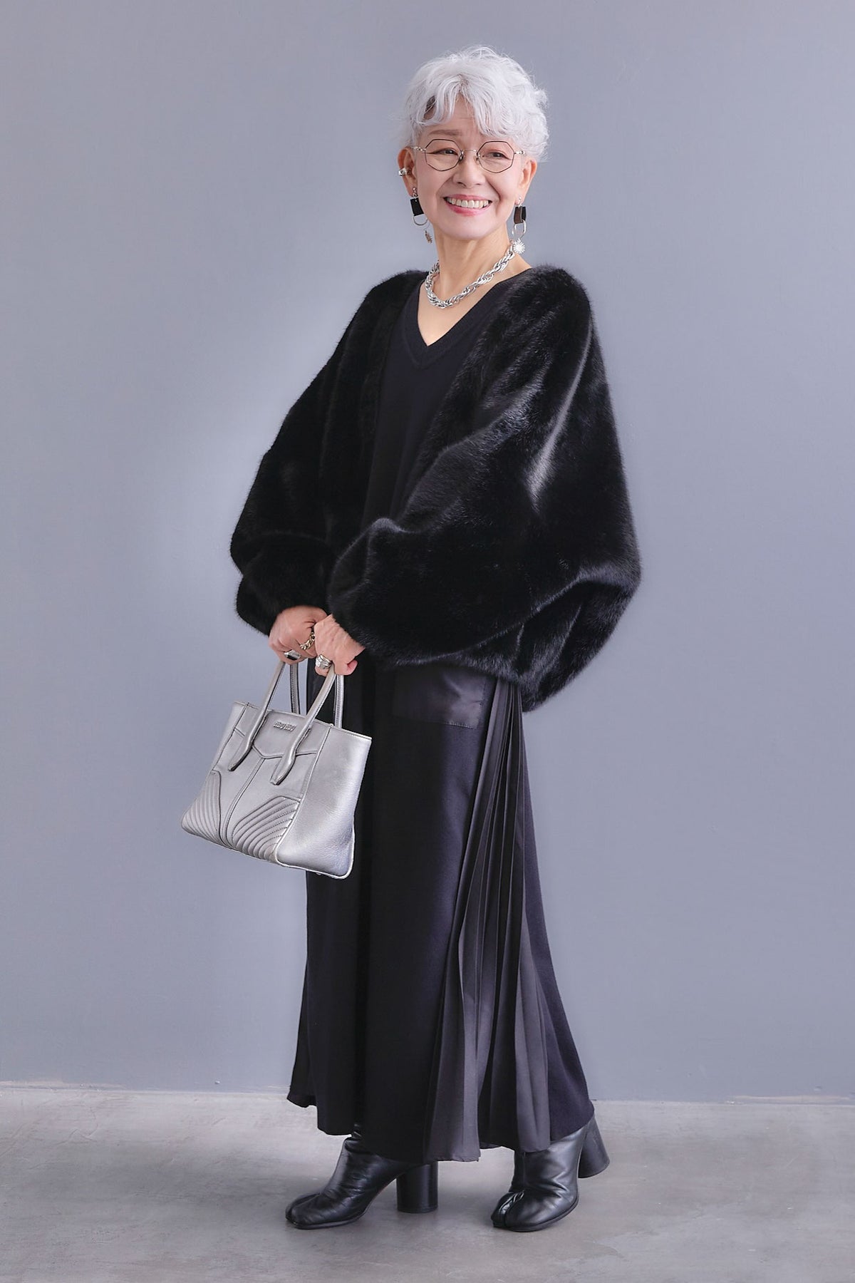 【SET】ZIPポケットサイドプリーツニットワンピース+ノーカラーラウンドシルエットファーコート(2set)