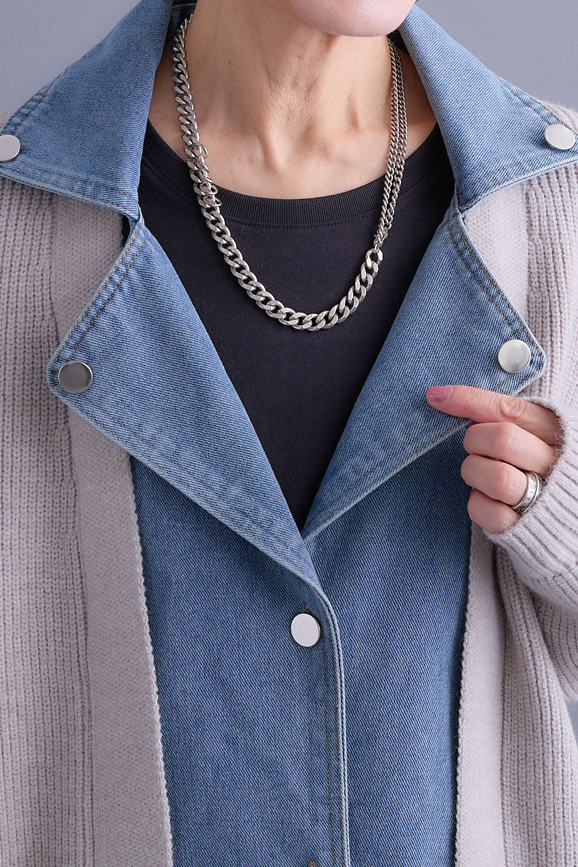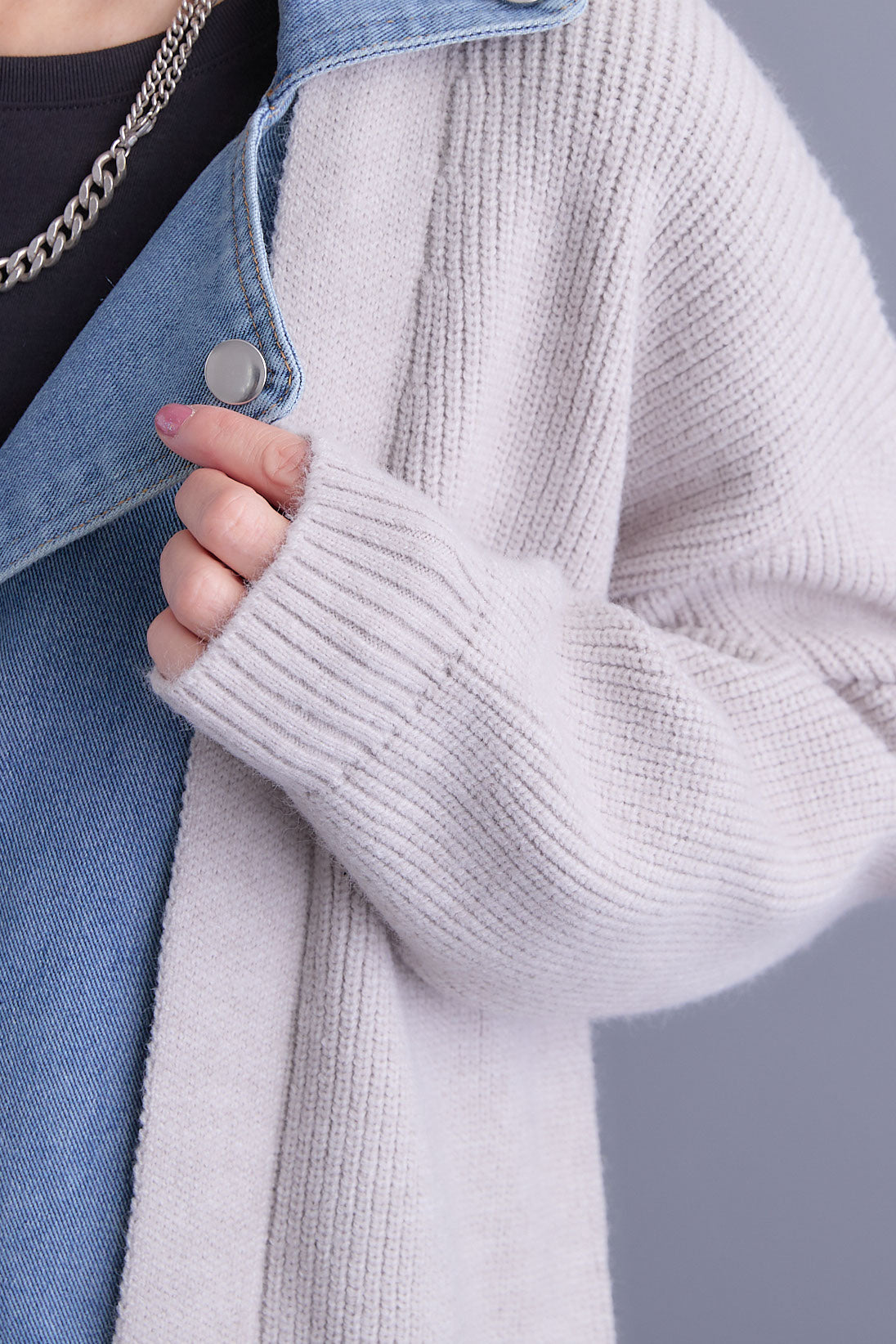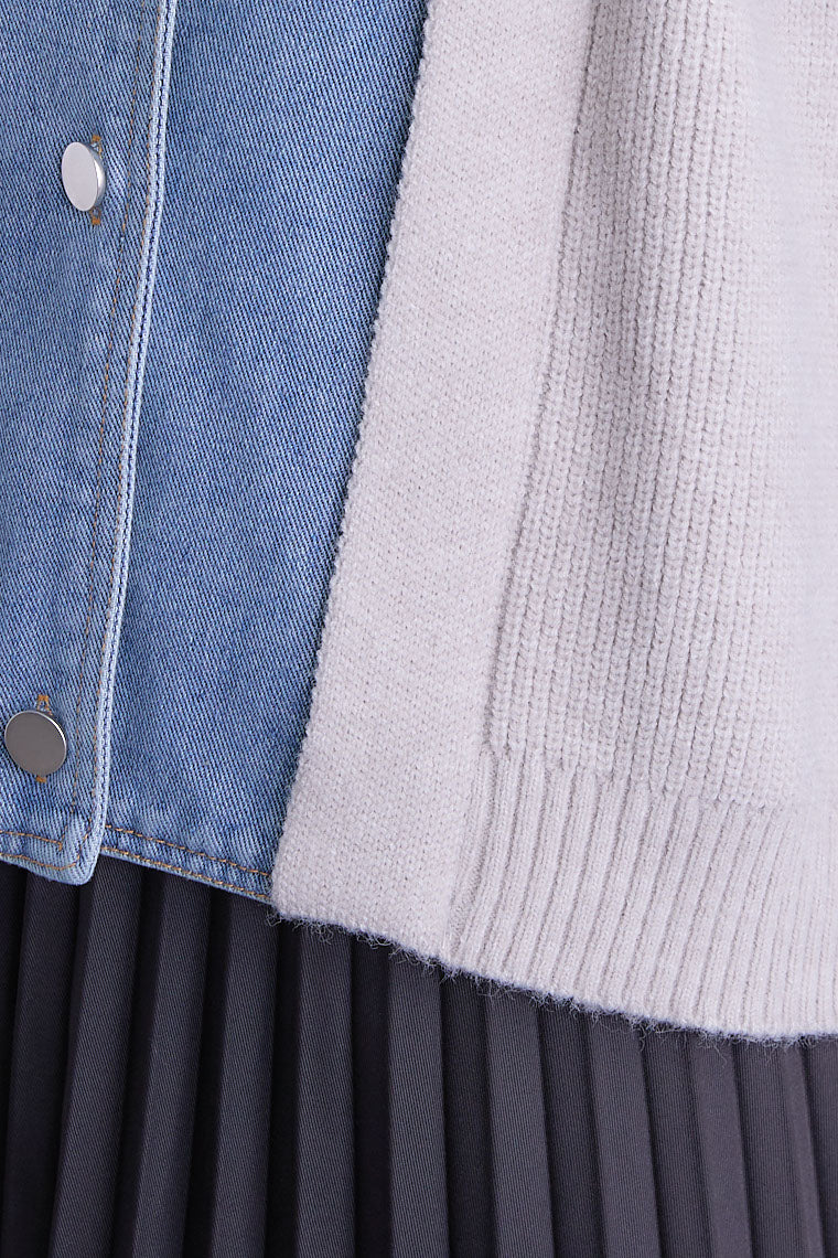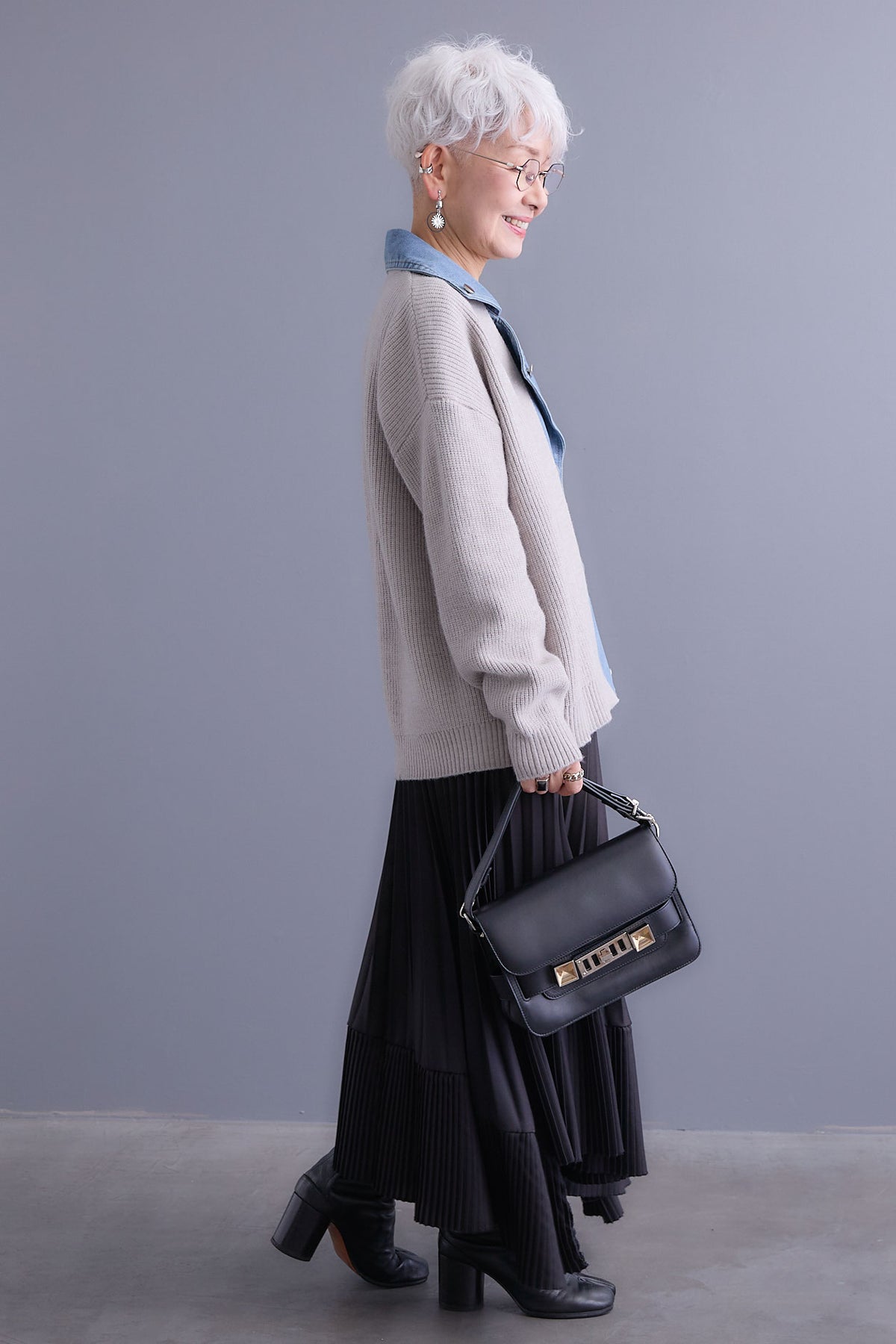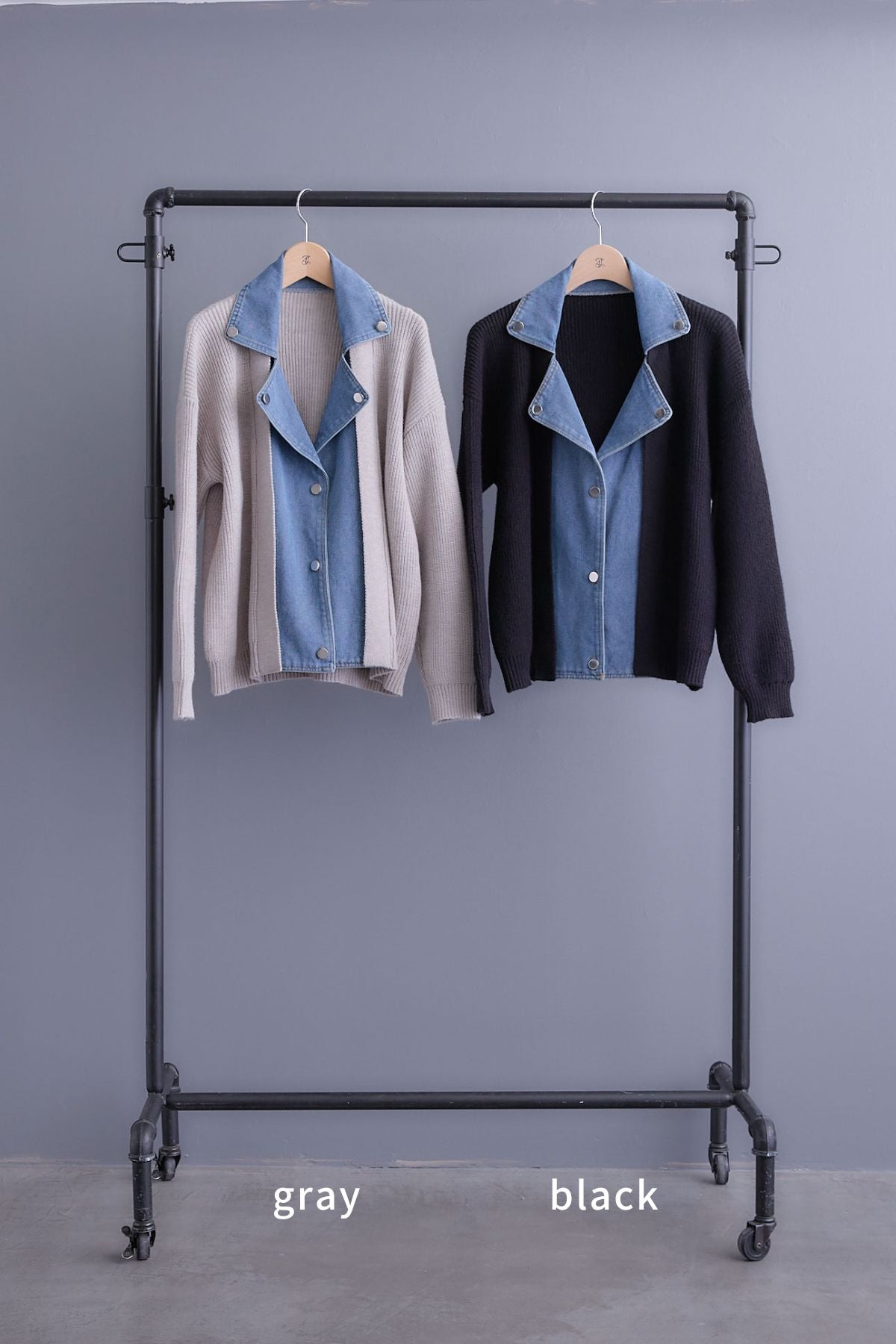 【SET】デニムライダースニットカーディガン+アシンメトリープリーツスカート(2set)