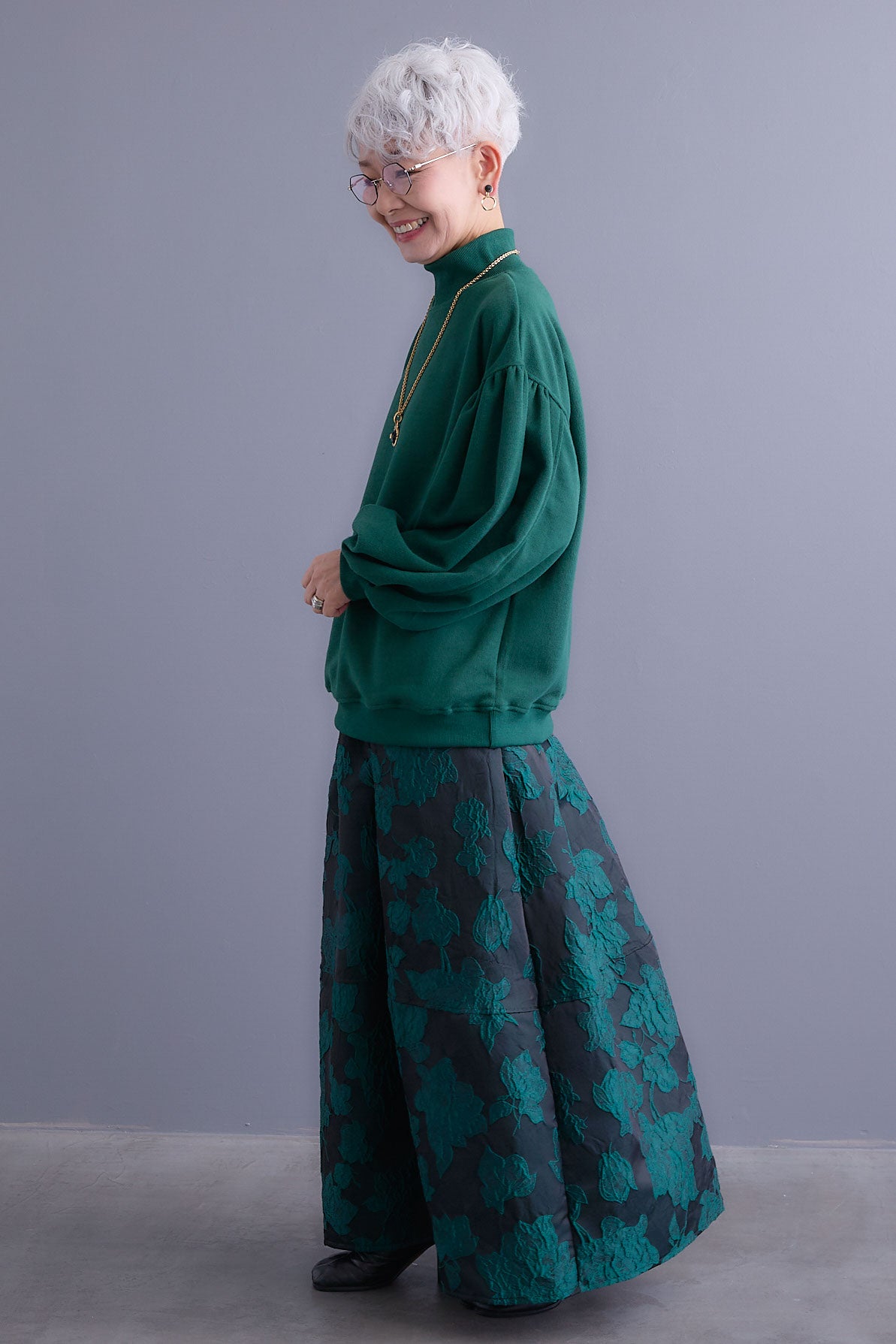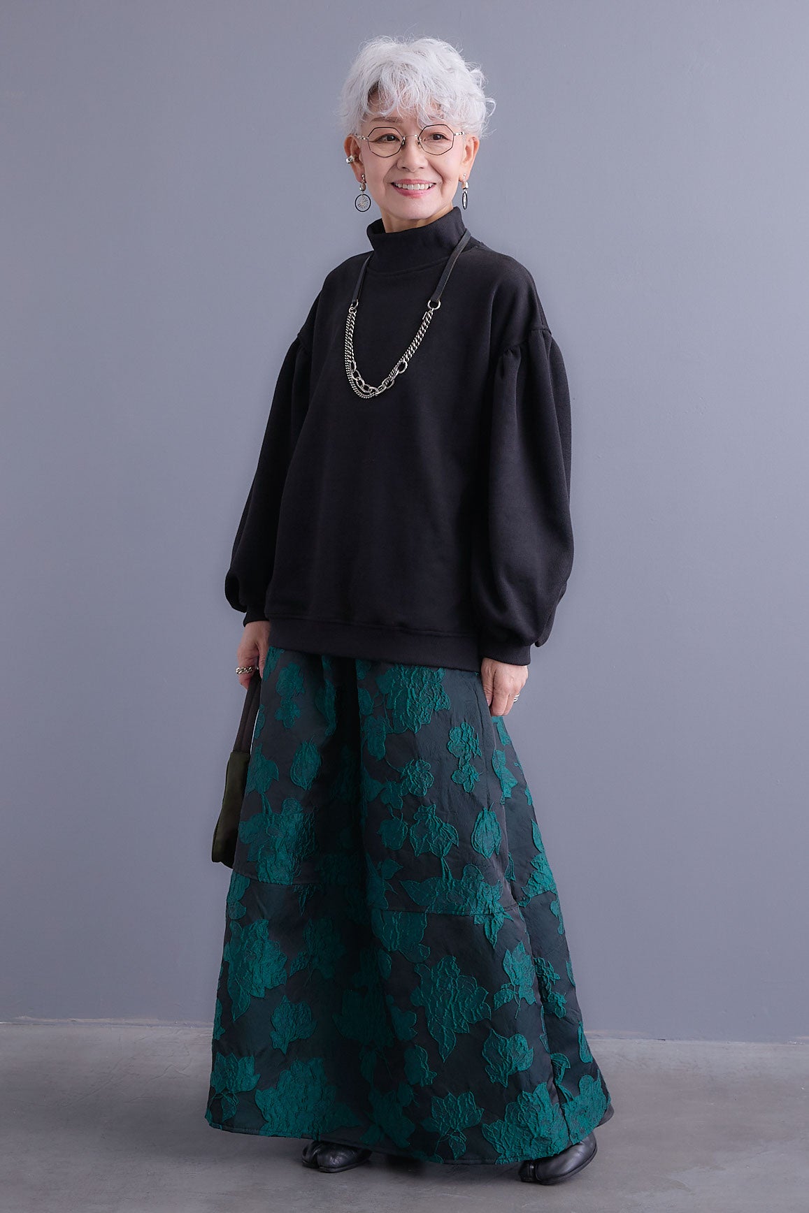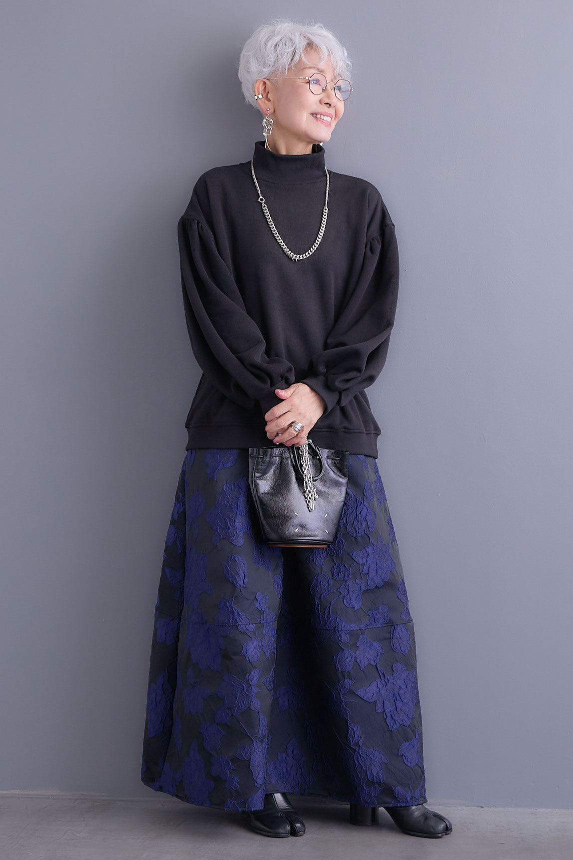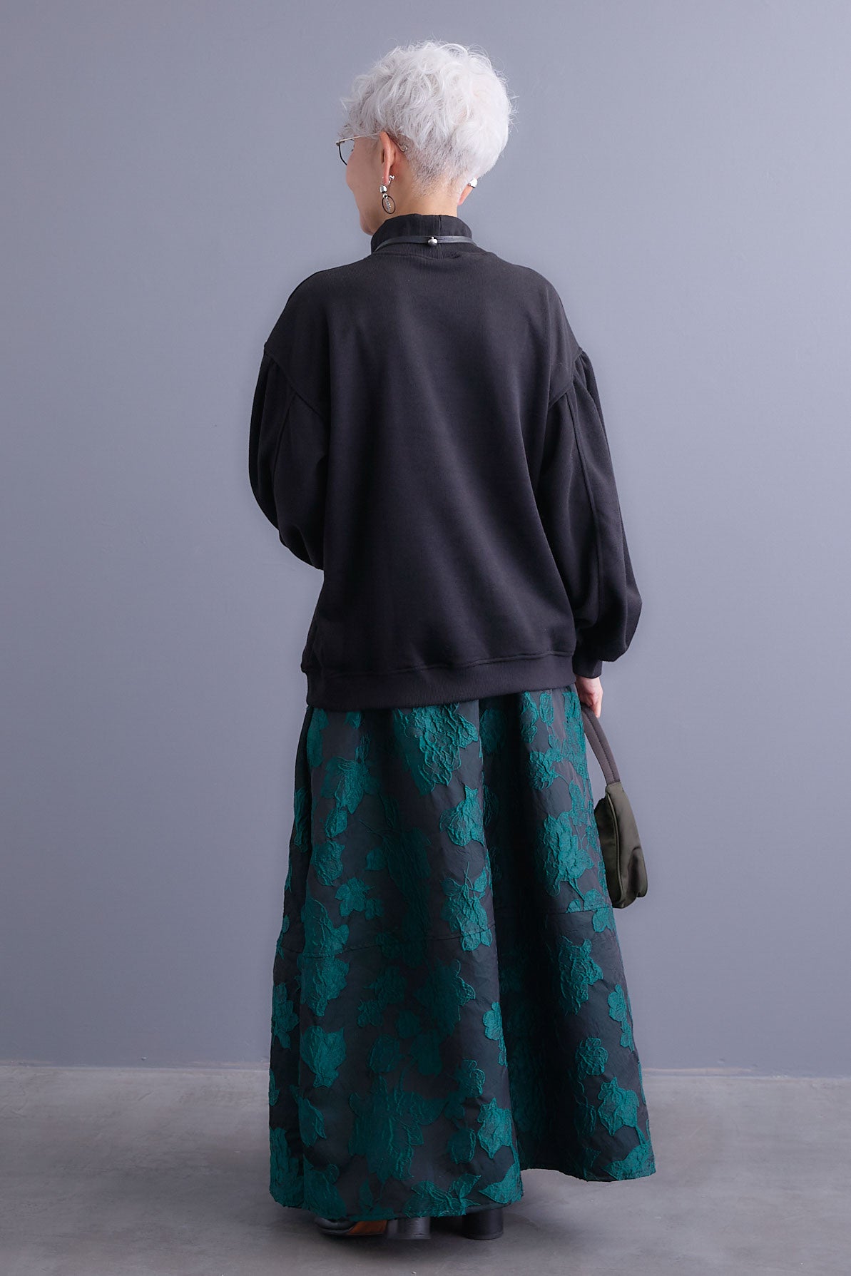【SET】ボリュームスリーブモックネックプルオーバー+ジャガードフラワースカート(2set)