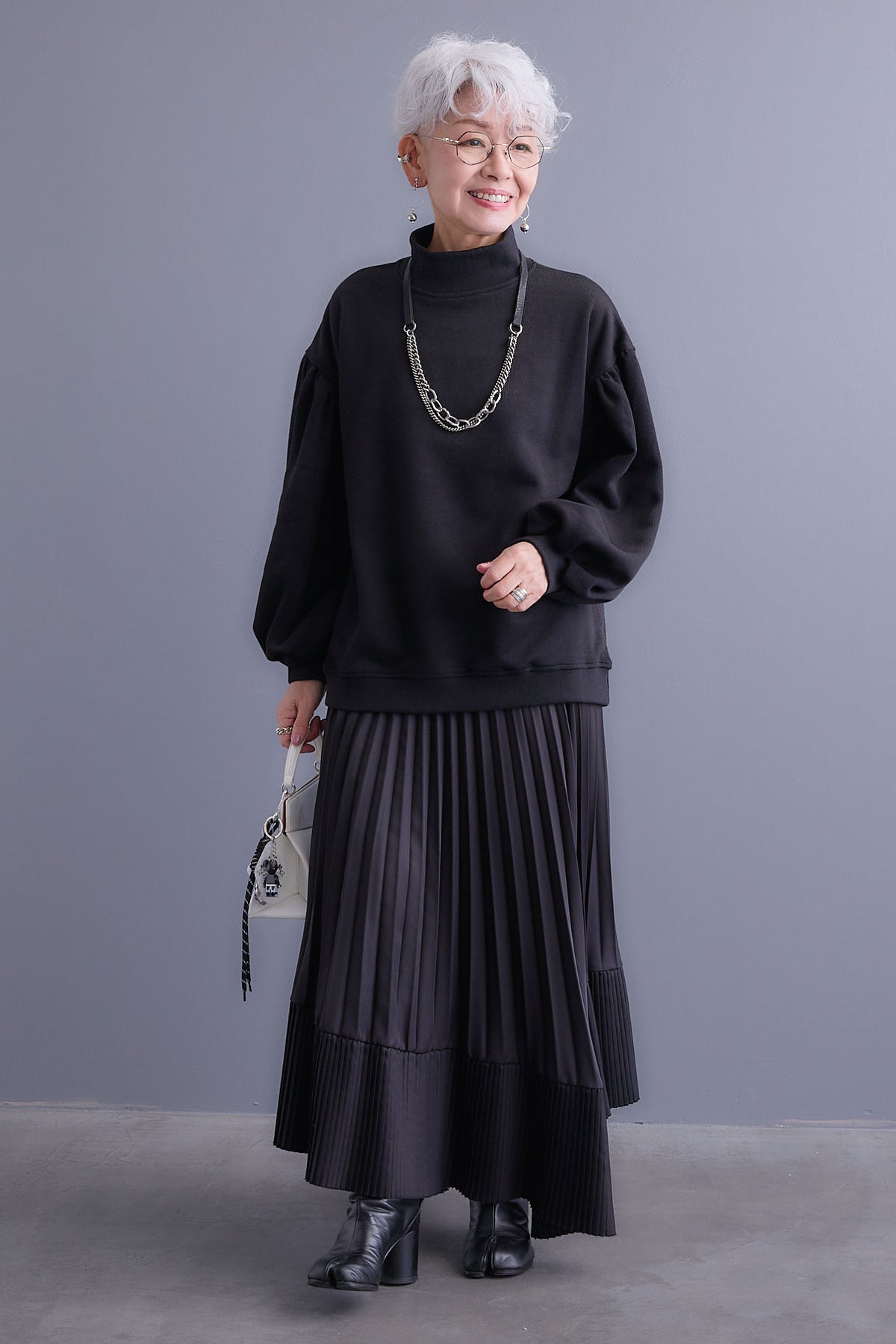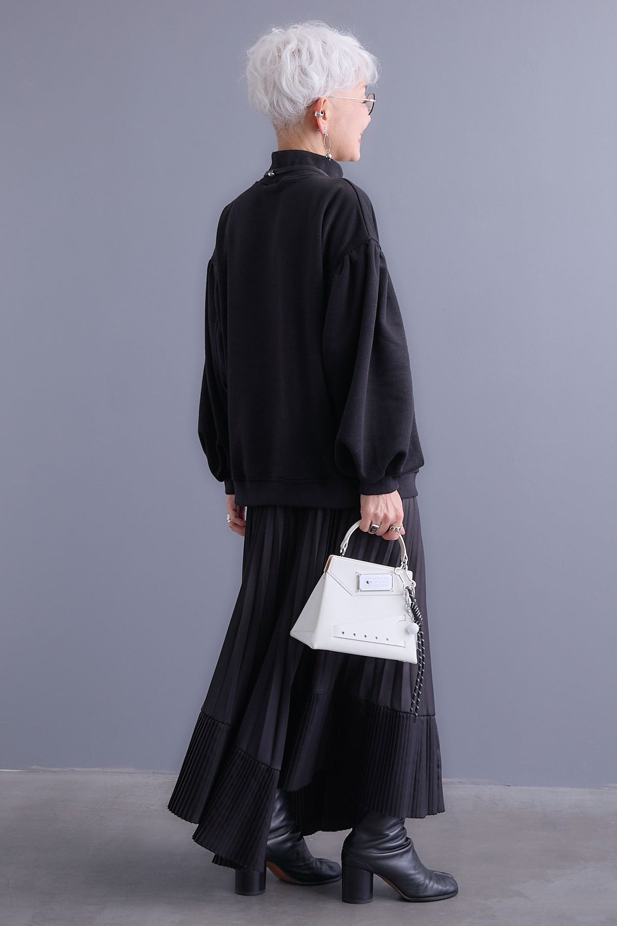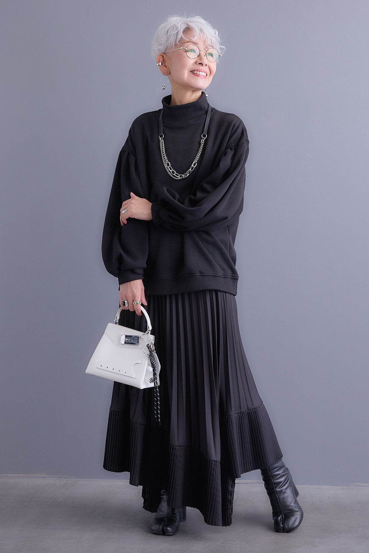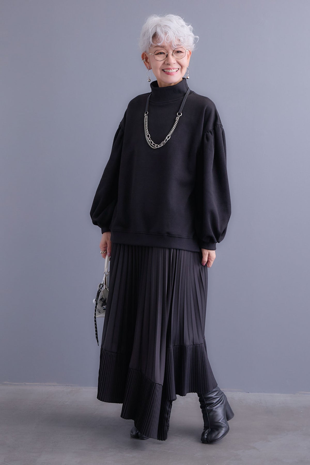 【SET】ボリュームスリーブモックネックプルオーバー+アシンメトリープリーツスカート(2set)