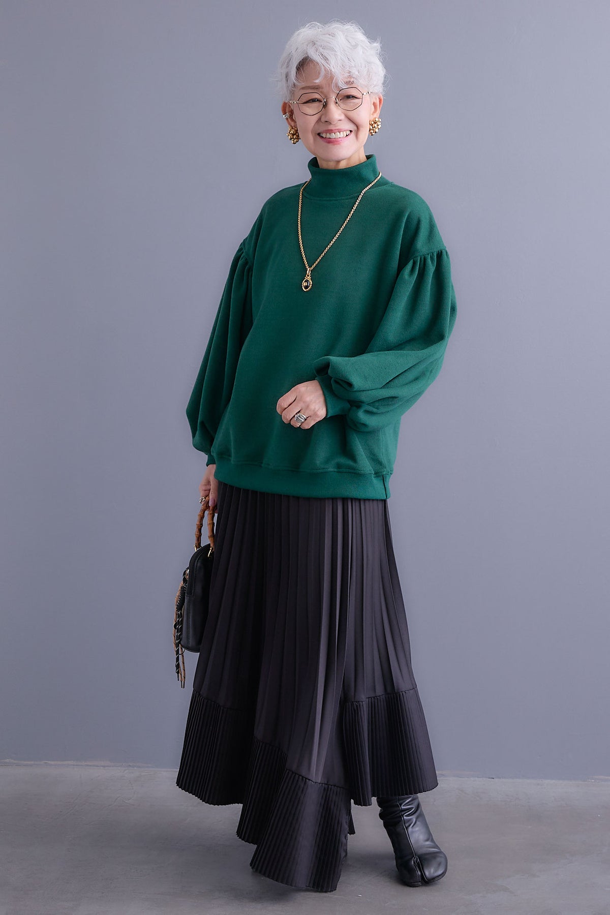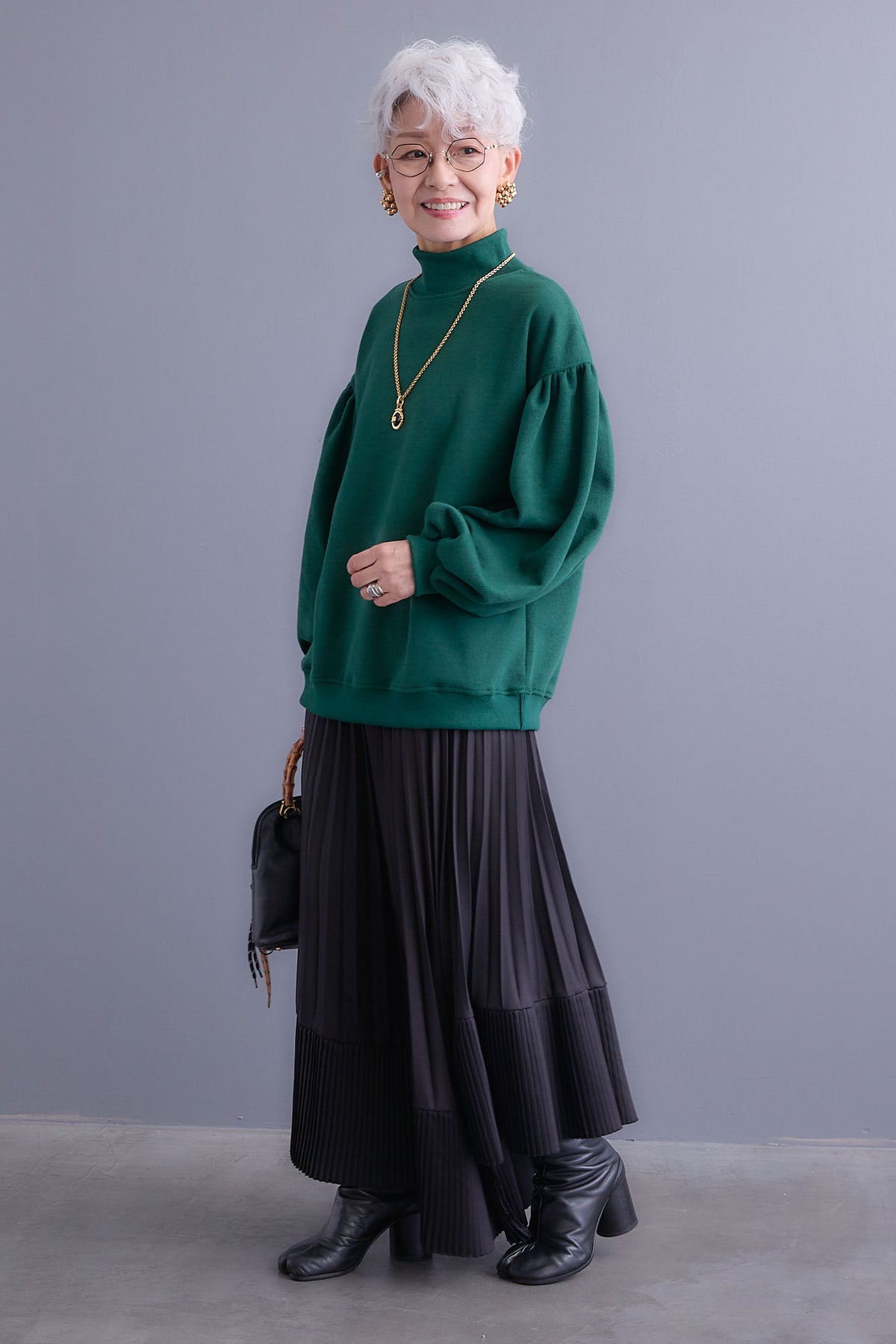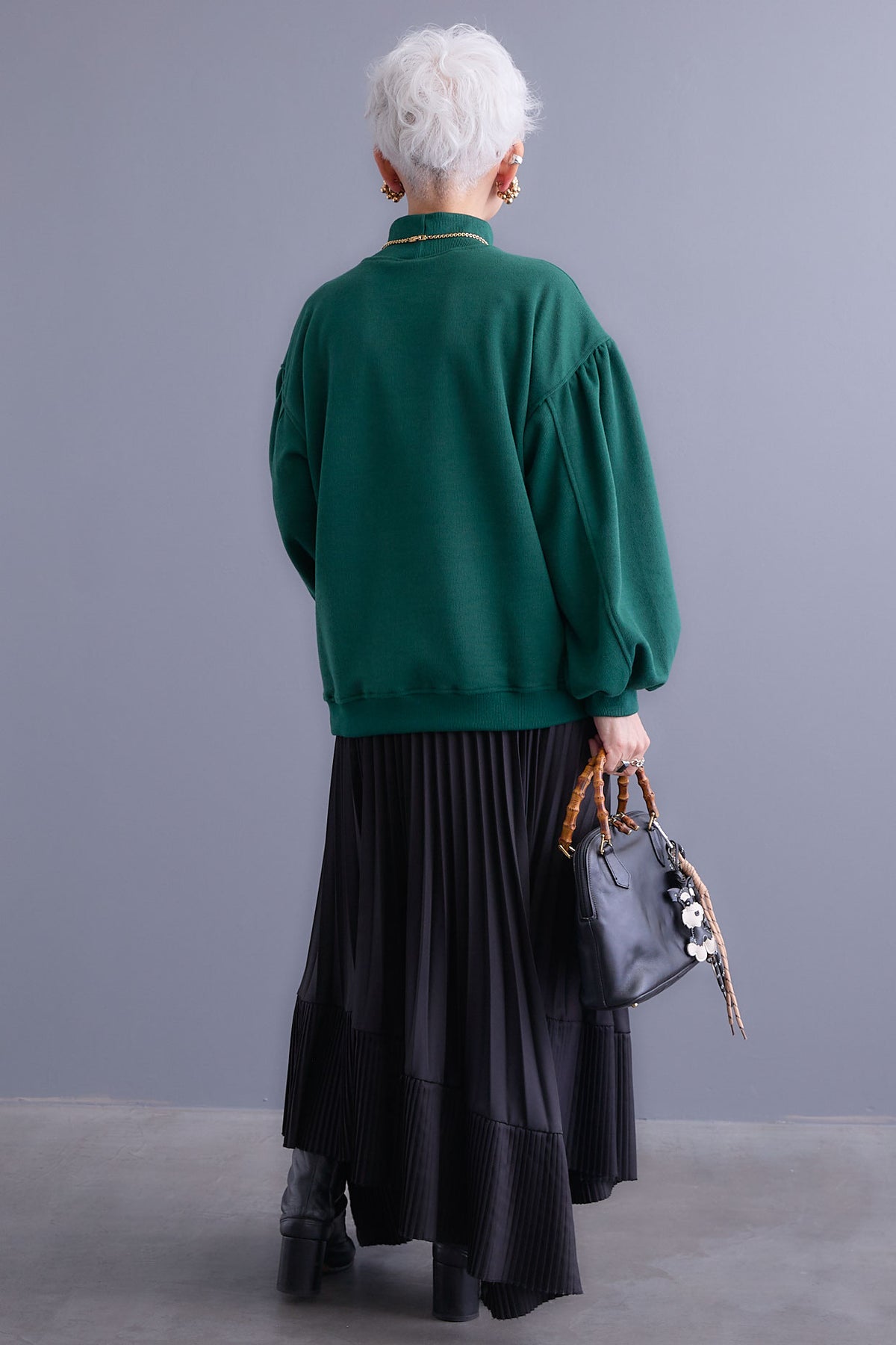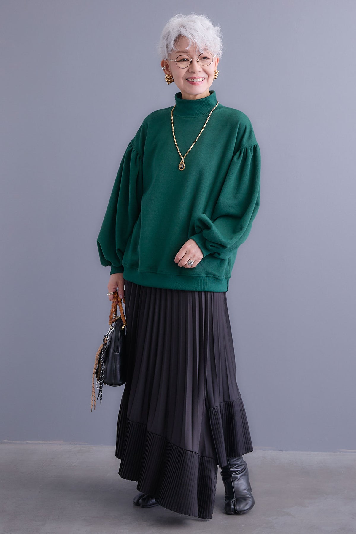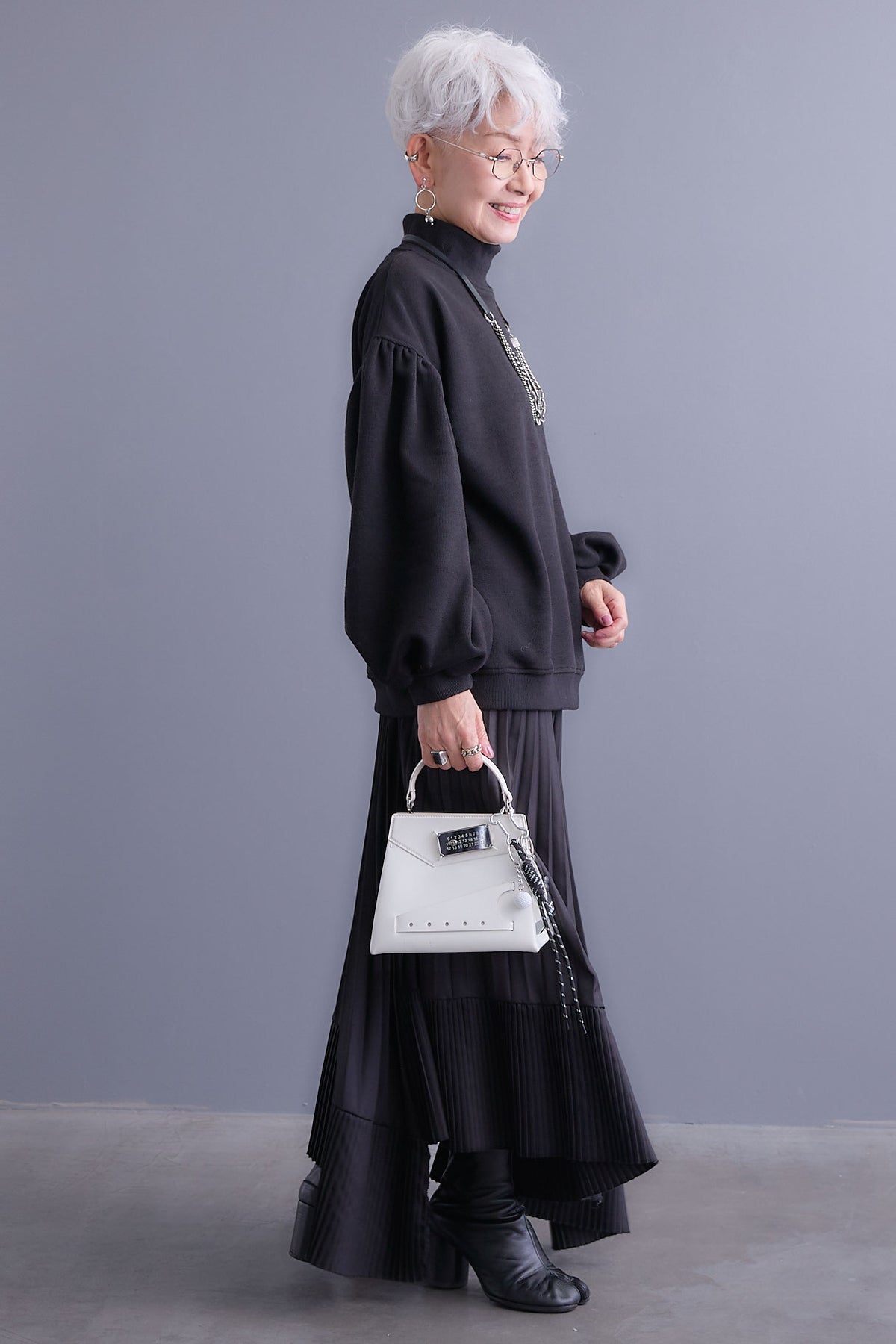 【SET】ボリュームスリーブモックネックプルオーバー+アシンメトリープリーツスカート(2set)